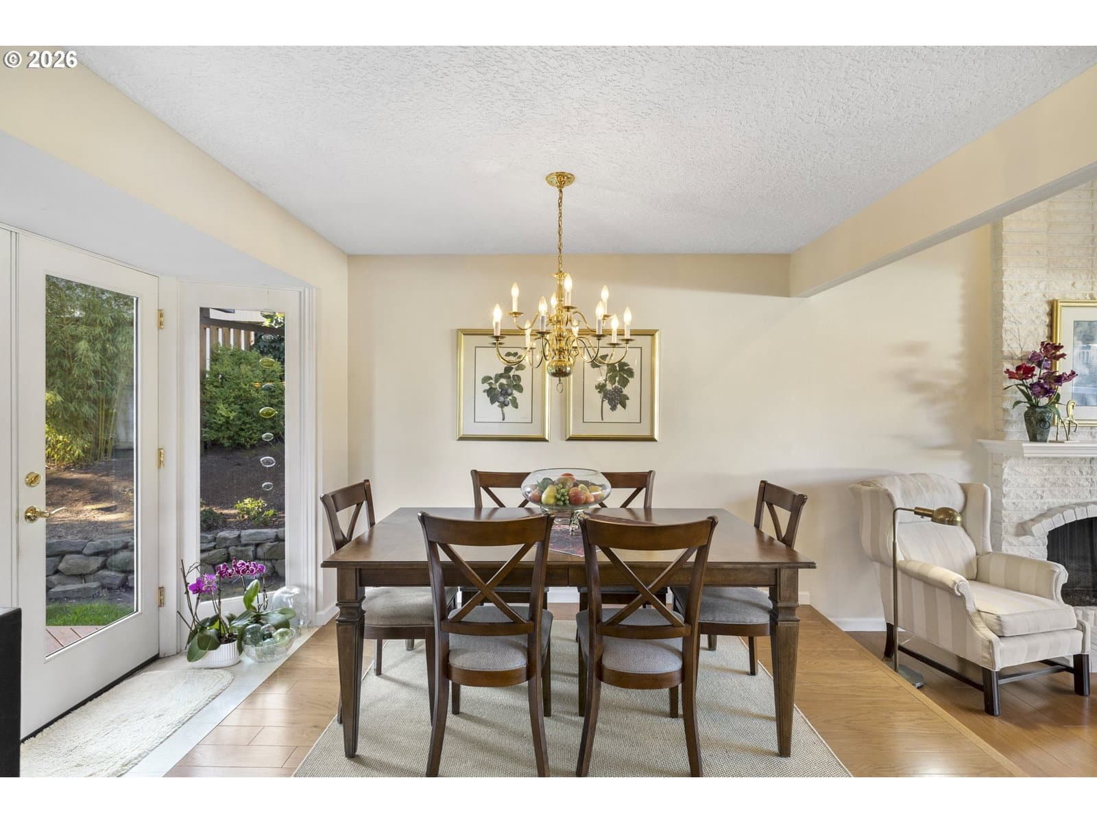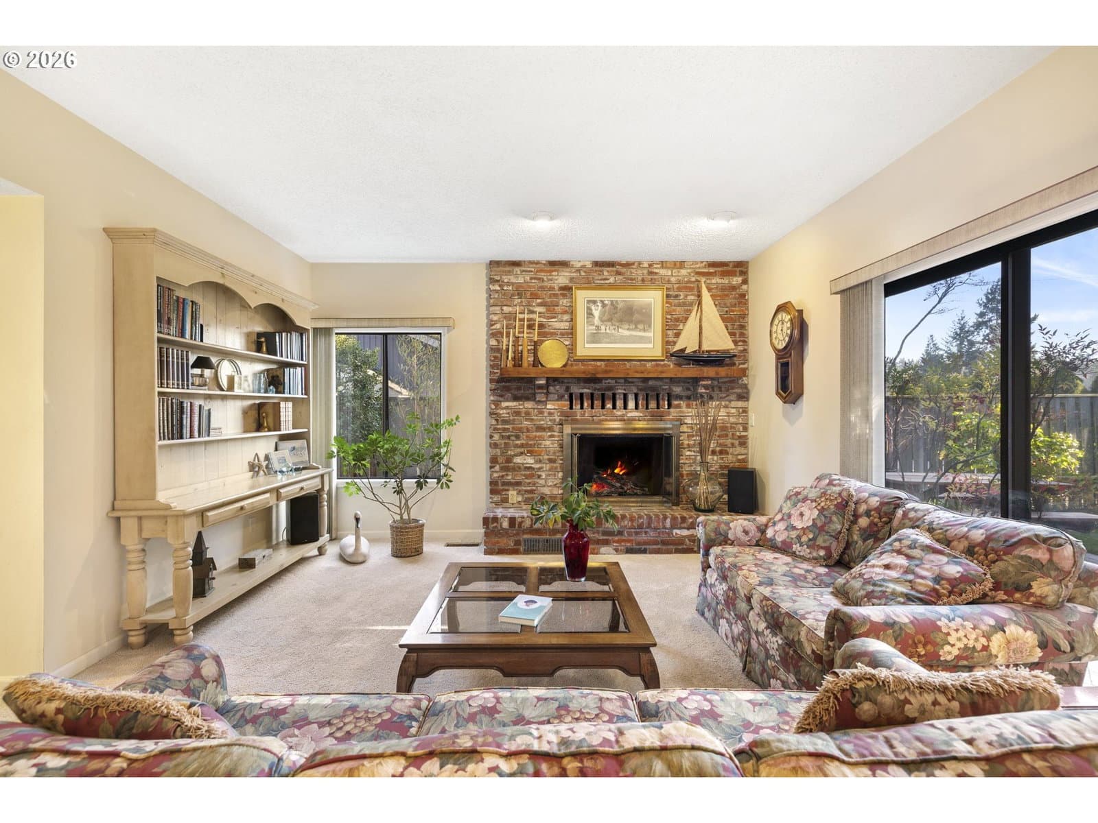 Located at the end of a cul-de-sac in a desirable Tigard, Oregon neighborhood, this home opens with a wide, vaulted entry that leads into a vaulted living room filled with natural light. Engineered hardwood floors carry through the main living areas and the two fireplaces create comfortable gathering spaces throughout the home. The kitchen features granite countertops, a built-in range, electric cooktop, and a window that looks out to the backyard creating an easy connection between indoor and outdoor living.The home offers 4 bedrooms and 3 full bathrooms, including a spacious primary suite with a walk-in closet and walk-in shower. An updated vinyl door provides easy access to the deck. Out back, a multi-level deck and patio are surrounded by mature landscaping, a decorative rock wall, and a water feature, making it a private and inviting setting. A 50-year roof adds lasting value. This is a well-cared-for home ready for its next chapter.