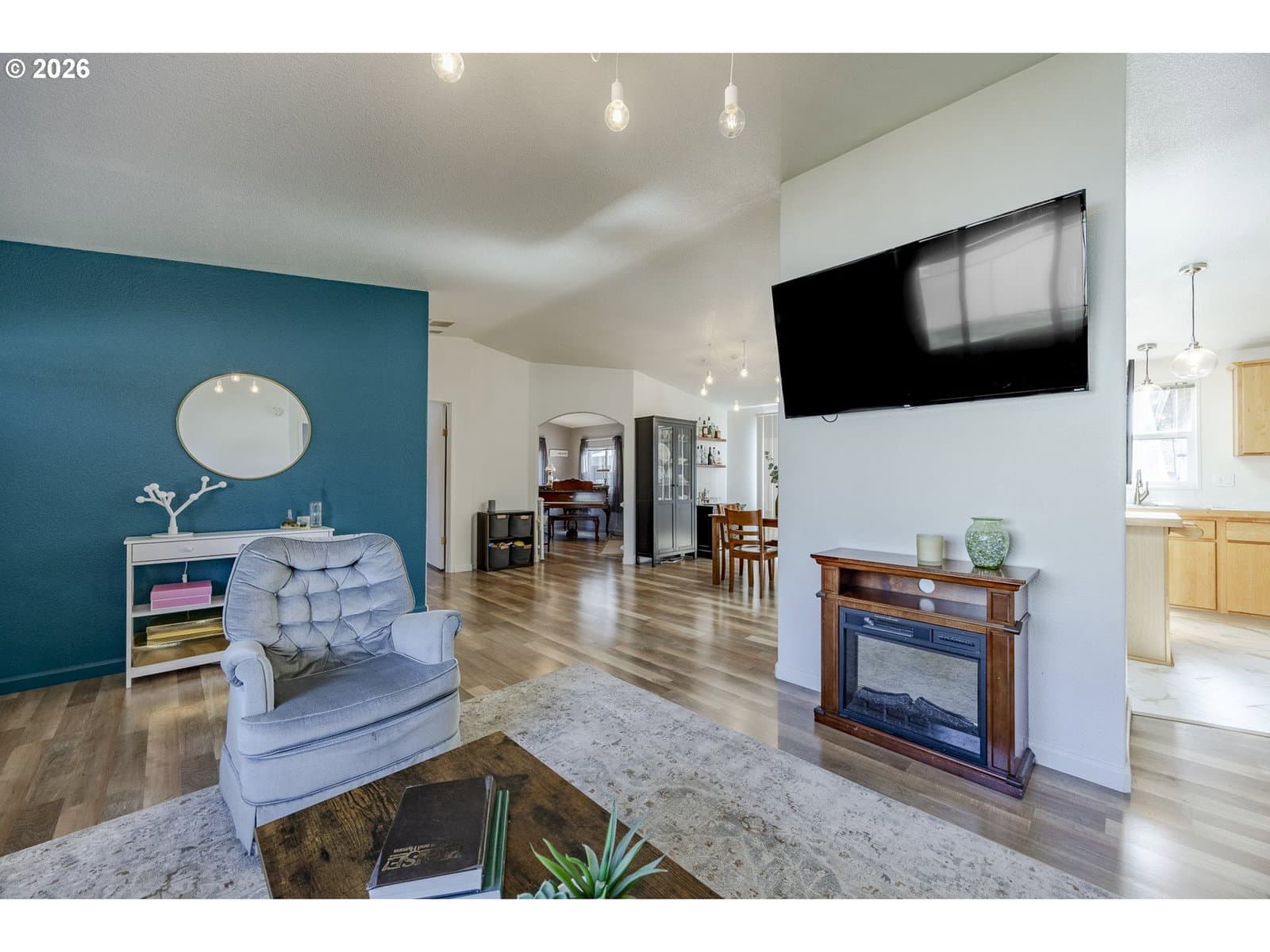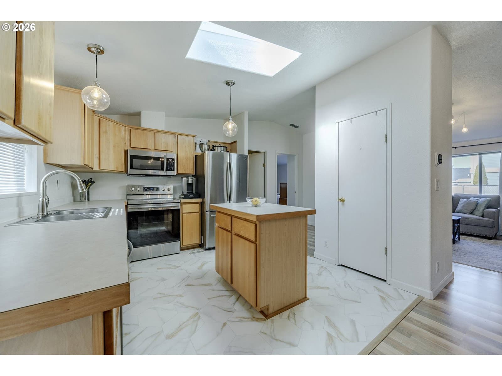 Tucked quietly off River Road, this light-filled 3-bedroom, 2-bath home offers a peaceful setting that truly feels like home. The open-concept layout is bright and airy, creating an inviting space for gatherings, movie nights, and everyday living. One bedroom features charming French doors—perfect for a playroom, home office, or cozy guest space. The true primary suite provides a relaxing retreat with its own ensuite bathroom and walk-in shower. Outside, enjoy a newly landscaped backyard with a large deck ideal for barbecues and outdoor play, fully fenced with new privacy fencing so everyone can relax and roam freely. Warm, comfortable, and move-in ready, this home is the perfect place to put down roots and make lasting memories.