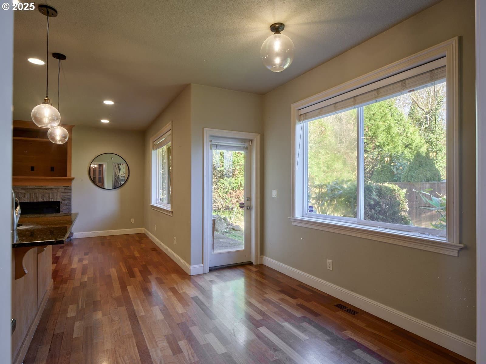 Beautifully designed home offering 4-bedrooms, 2.5-baths and 2,515 square feet of comfortable and flexible living space. Soaring high ceilings in the entry and living room make a striking first impression. The kitchen features granite countertops and a central island with eat-up bar. The beautiful cherry hardwood floors extend throughout the main living areas. Updates include newly installed HVAC system installed in January-2026. The gas fireplace highlights the family room. A main-level office is perfect for those with work-from-home needs or pursuits. Four bedrooms located on the upper level. The primary suite offers generous space, ceiling fan, walk-in closet, double sinks, soaking tub and shower. Outside, a flag lot provides privacy up and away from the main road. Enjoy the fenced backyard with covered patio and surrounding trees. 2-car attached garage. A wonderful blend of space, style, and functionality with a convenient location offering quick access to shopping, restaurants, airport, hospital and commuter routes. No HOA restrictions or fees to worry about. Included with the home are washer, dryer, refrigerator, and smart home features: front door lock, camera, garage door opener and Nest thermostat.