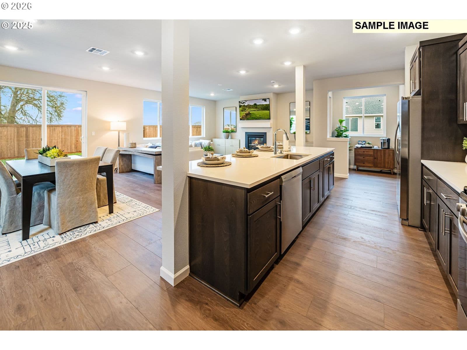 This new construction home is located in the highly anticipated Coburn Terrace community in SE Salem, just minutes from I-5, Costco, Trader Joe’s, shopping, dining, and downtown Salem. The Ashland plan features an inviting open-concept main floor where the modern kitchen, great room, and dining area flow seamlessly together, with access to a patio and a convenient tech nook. Upstairs are four bedrooms, including a spacious primary suite with a double vanity, separate tub and shower, and walk-in closet, while two bedrooms share a Jack-and-Jill bathroom. Interior highlights include quartz countertops, shaker-style cabinets, two-tone interior paint, a gas fireplace with floating mantle, LVP in the kitchen and entry, and LVT in the bathrooms. This home also includes central air conditioning, a refrigerator, washer and dryer, blinds, landscaping, and fencing—all at no extra cost! Homesite #5. Rendering is artist conception only. Photos are of a similar home, features and finishes will vary. Flex credit/closing cost incentive available when financing with preferred lender! Use towards rate buydown and closing costs.