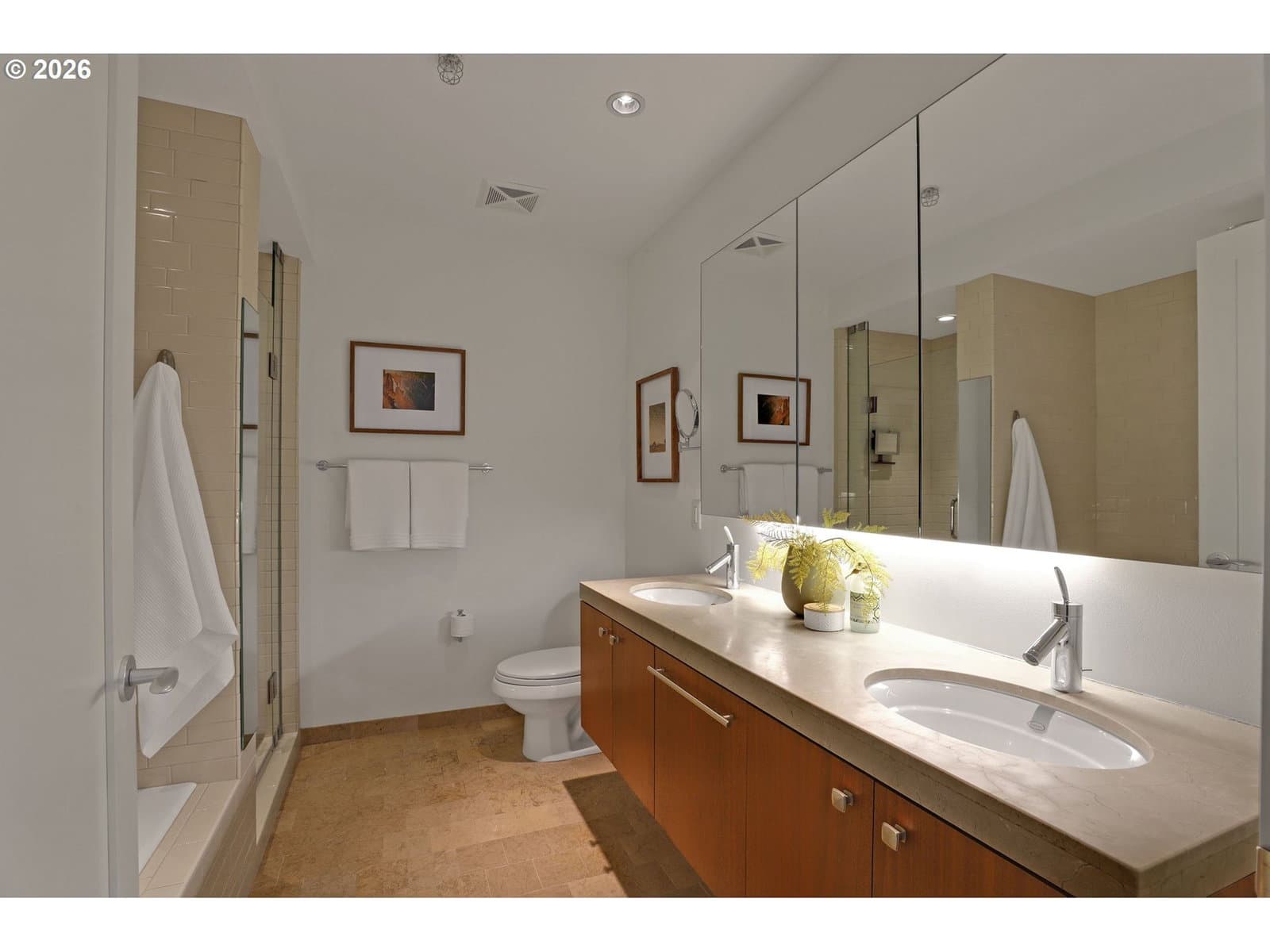 Sophisticated northwest corner residence in Atwater Place, offering light-filled interiors and sweeping views of the Willamette River, West Hills, city skyline, and iconic Tilikum Bridge through expansive floor-to-ceiling windows. The open, thoughtfully designed floor plan is both spacious and inviting, seamlessly connecting living, dining, and outdoor spaces with a covered balcony—perfect for year-round enjoyment. The generous primary suite offers a serene, private retreat with a walk-in closet, while the second bedroom is thoughtfully appointed with a built-in Murphy bed and office, providing flexible space for guests or work-from-home living. Enjoy the vibrant South Waterfront lifestyle, with immediate access to riverfront trails, parks, dining, OHSU, the Streetcar, and more. Effortless urban living at its finest.