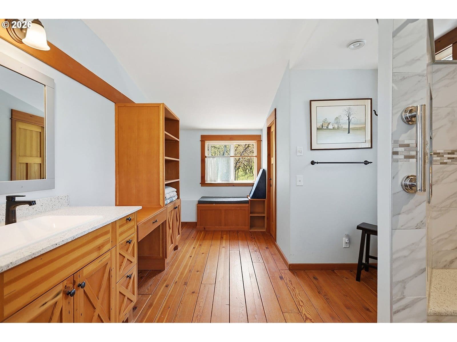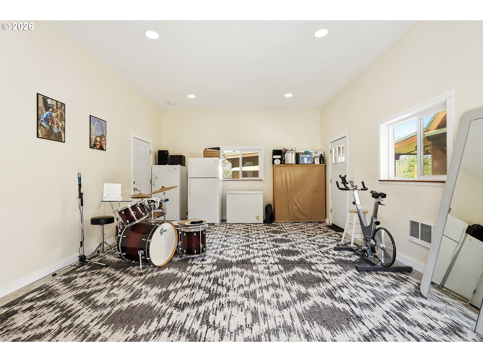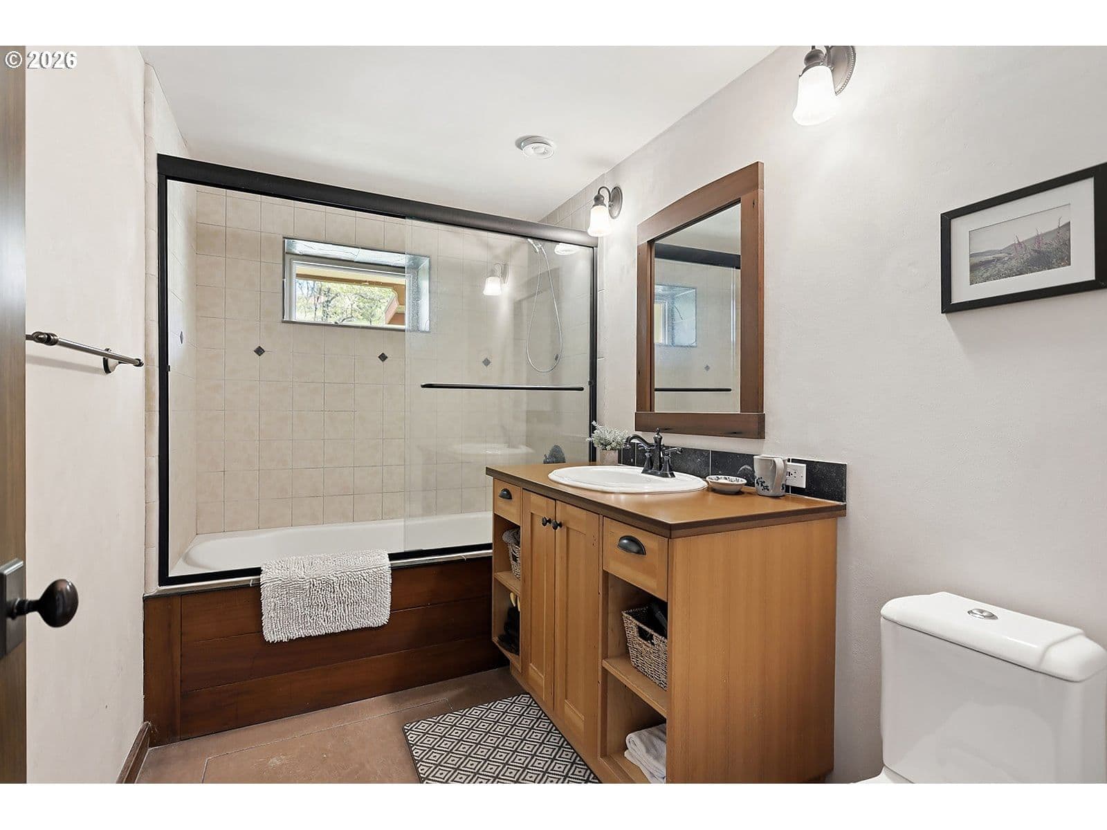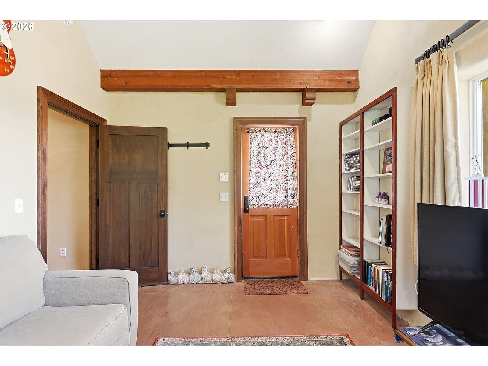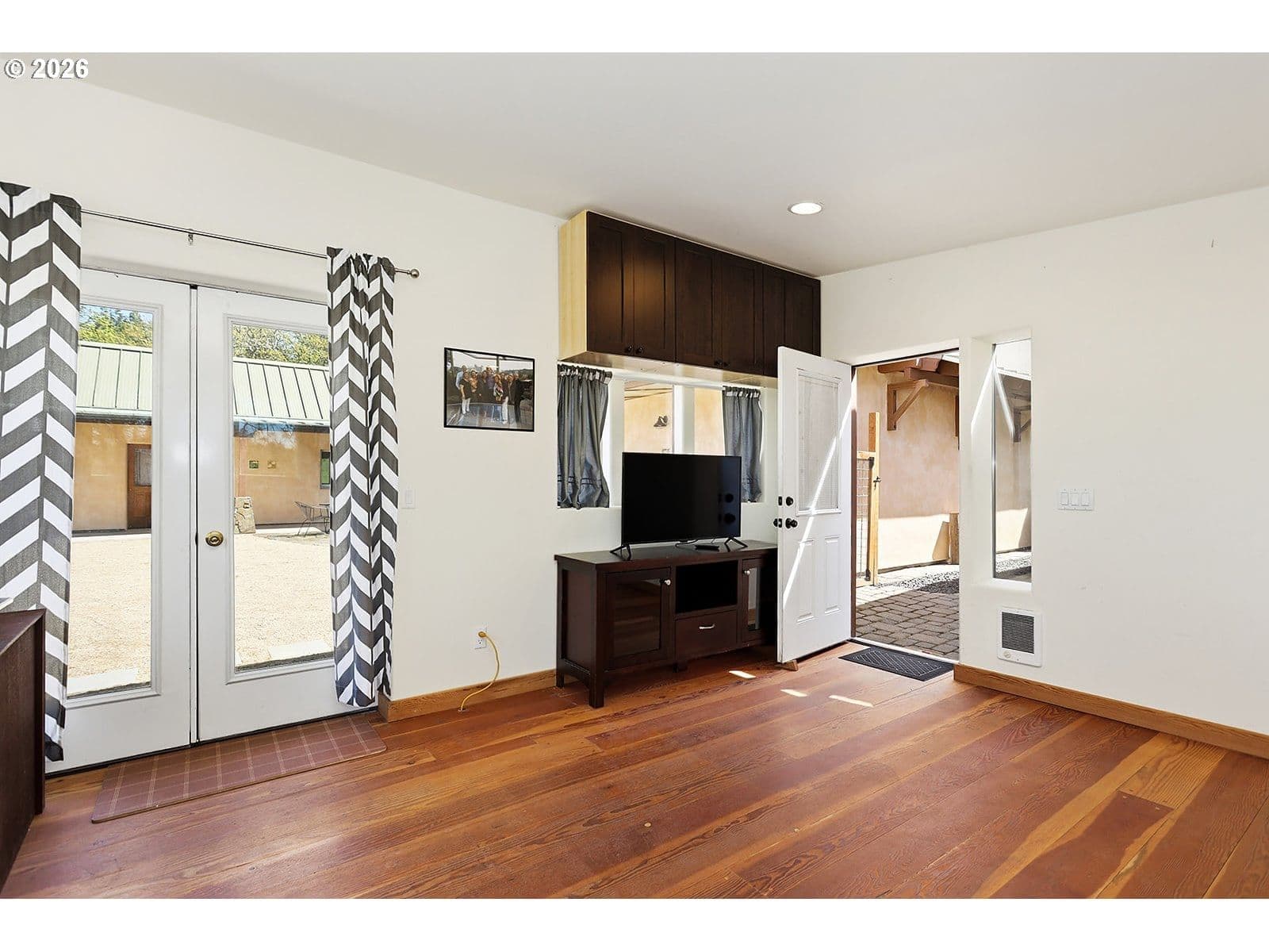 Custom Timber Frame, Green Home with unobstructed views of Mt. Adams located in Mosier, Oregon, on 6.37 acres. This 2,283 square foot residence features four bedrooms and three full bathrooms. The open floor plan offers a spacious great room with a vaulted ceiling and a floor-to-ceiling stone fireplace, as well as an open kitchen with paper stone countertops. Flooring is polished concrete and reclaimed wood, with radiant heating throughout. Twenty-nine solar panels provide most of the power for this fully electric home. Three bedrooms are situated on the main living floor, while the primary suite occupies the second floor. The house boasts custom wrought iron fixtures and schoolhouse lighting. Built in 2020, the 1,500 square foot garage has two car bays, a workshop and a recreation room. Adjacent to the home is a 250 square foot, sunny, detached heated studio with sink. Attached to the studio is a sauna and hot-water outdoor shower. The wrap-around covered porches offer outdoor entertainment opportunities. The grounds feature a fencedyard and irrigated gardens with raised beds, grapevines, berries, and fruit trees. Peaceful setting. The home has been featured multiple times on the Green & Solar Home Tour.