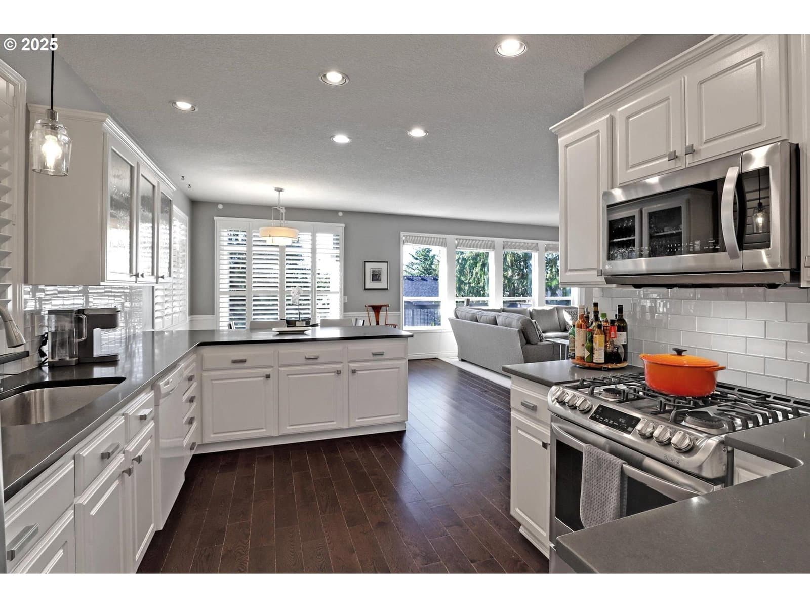 Beautifully updated and impeccably maintained, this spacious 4-bedroom home with a large bonus room (potential 5th bedroom) offers the perfect blend of charm and modern conveniences. The open-concept main level boasts gorgeous wood floors, a cozy gas fireplace, and custom built-ins, creating an inviting family space. The fully remodeled gourmet kitchen (2021) features stunning custom white cabinets, slab quartz countertops, and stainless steel appliances—designed for both cooking and entertaining. Step outside to enjoy the expansive deck (added in 2020), with open territorial views perfect for hosting or relaxing. The luxurious primary suite includes a spa-like en-suite bathroom with large tub and walk-in marble-tiled shower, offering a true retreat. Additional highlights include a new roof (2022), a new furnace and AC (2023), updated plumbing with PEX (2019), and an oversized 3-car garage with excellent storage. Nestled in a fantastic neighborhood with its own park, this home offers peace and convenience with Washington County taxes and extremely low HOA dues. Here's your opportunity to own a lovingly renovated home with all the extras! Don’t miss it!