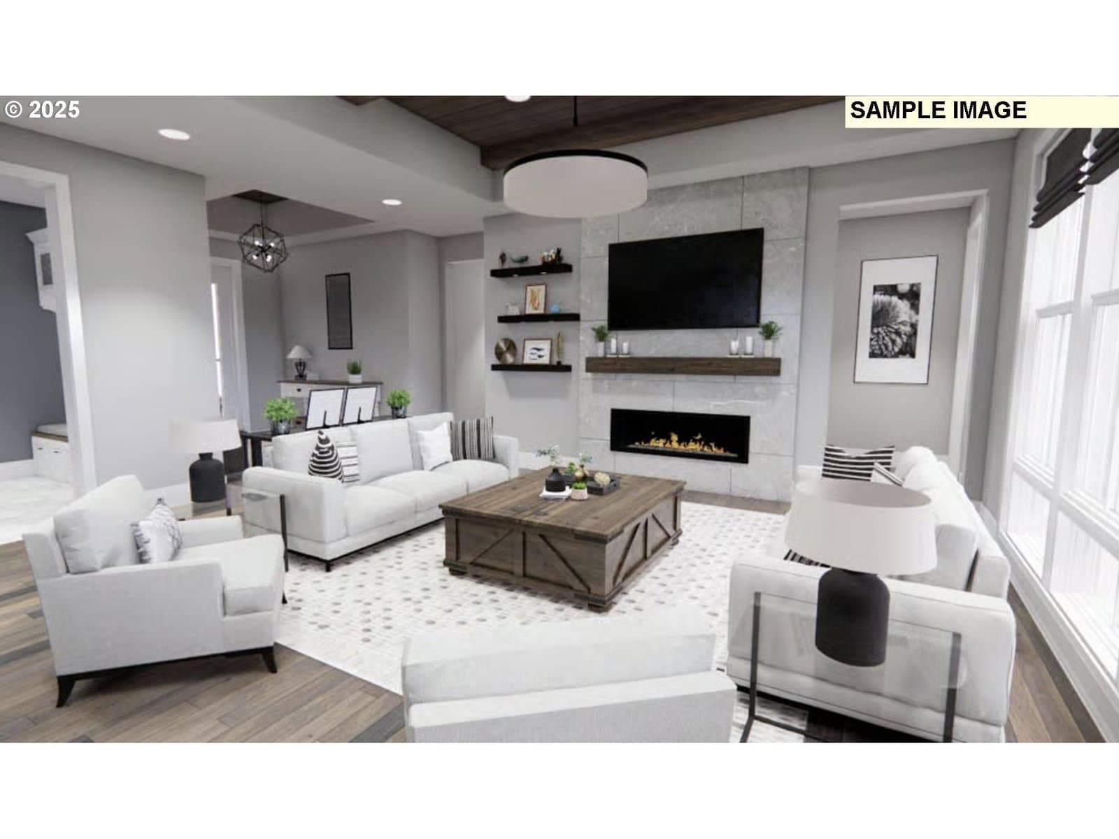 Modern Farmhouse Elegance with one-level Convenience Discover 1,952 square feet of thoughtfully designed heated living space in this New American farmhouse. A striking exterior blend of stone, timber, and steel sets a contemporary yet rustic tone before you even step inside.Open Concept Living: An elegant foyer leads immediately into an expansive great room, where a cozy fireplace serves as the warm focal point of the home.Chef’s Kitchen: Designed for function and flow, the kitchen features a 4-foot deep island with seating for four—ideal for prep work and conversation. A walk-in pantry and extensive cabinetry ensure ample storage.Private Retreats: The master suite is a true sanctuary, complete with a dedicated sitting area, private bath, and a generous walk-in closet. Two additional bedrooms feature linear closets and share a convenient hall bath.Outdoor Living: Extend your entertaining space outdoors on the 10-foot deep covered rear porch, perfect for relaxing in the fresh air.