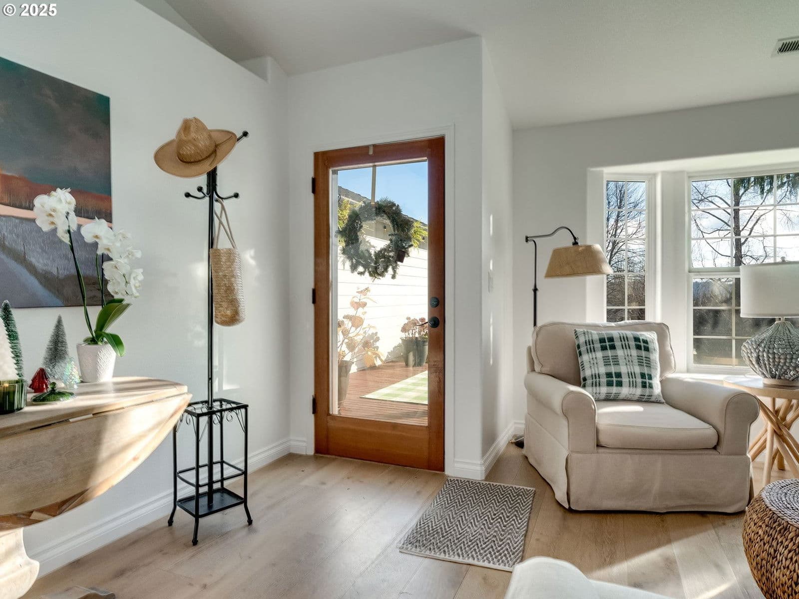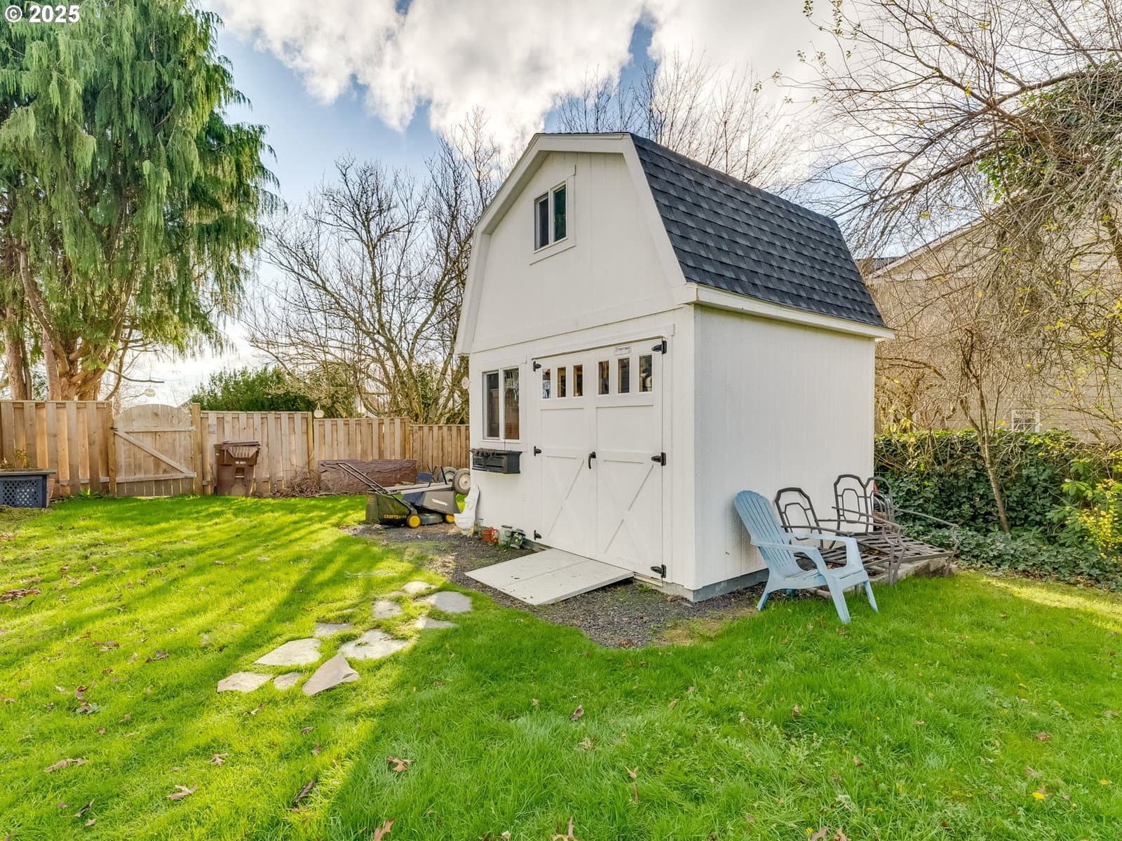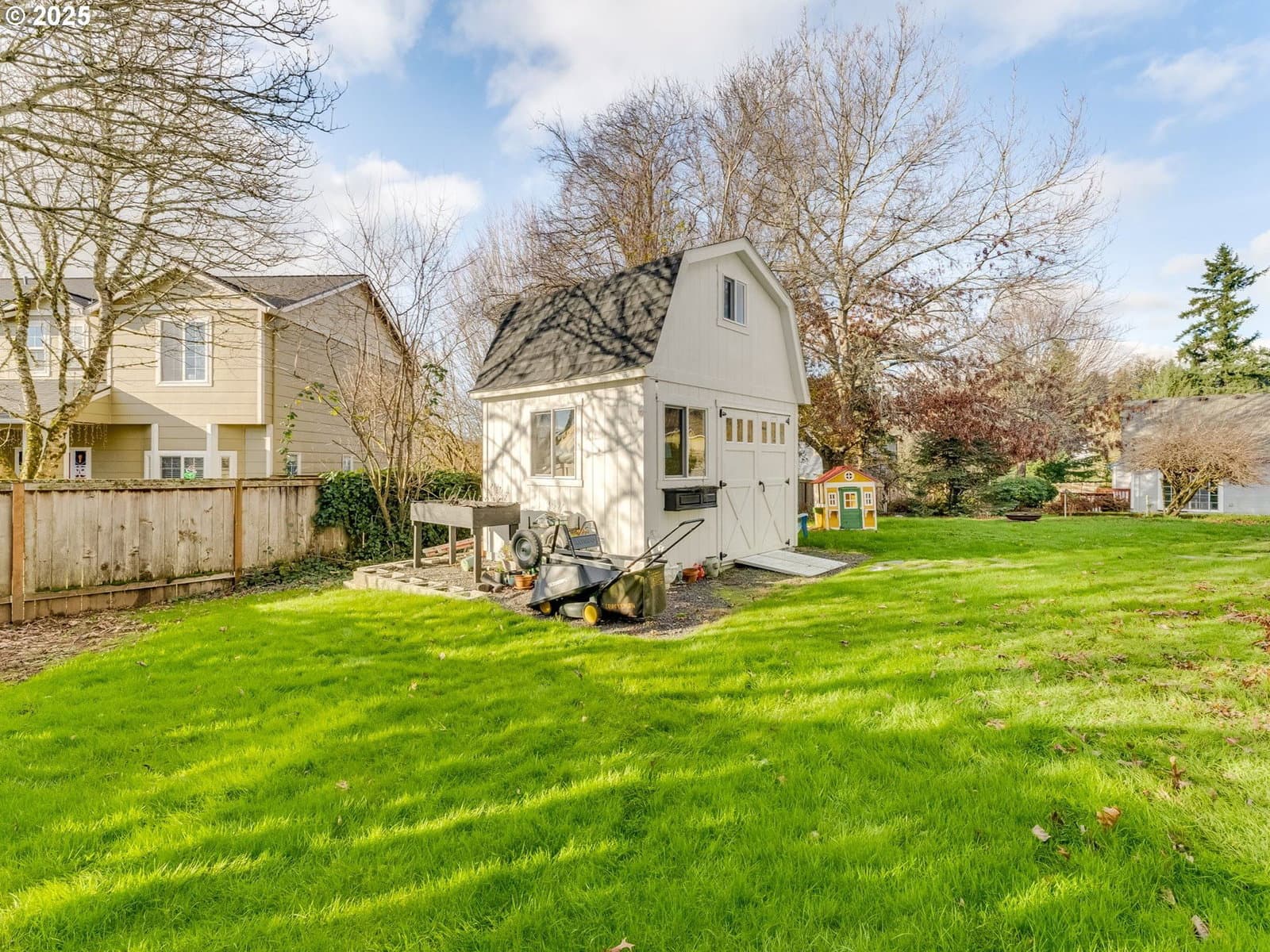 Bright and inviting vaulted living room features a charming bay window and a cozy fireplace—perfect for everyday living and entertaining. The family room opens seamlessly to a beautifully remodeled kitchen, highlighted by natural wood countertops, island, and a convenient double-drawer under counter refrigerator for added functionality. Newer engineered flooring throughout enhances durability while delivering a modern, cohesive look. The vaulted primary suite offers a walk-in closet and relaxing jetted tub. The recently remodeled guest bathroom offers new fixtures and a beautifully tiled shower. Enjoy a private backyard, ideal for outdoor living. New large shed for your tools and extra storage. All appliances included. Located in a wonderful neighborhood, just blocks from a golf, schools, and nearby hiking trails. Easy access to freeways, PDX, and downtown Portland.