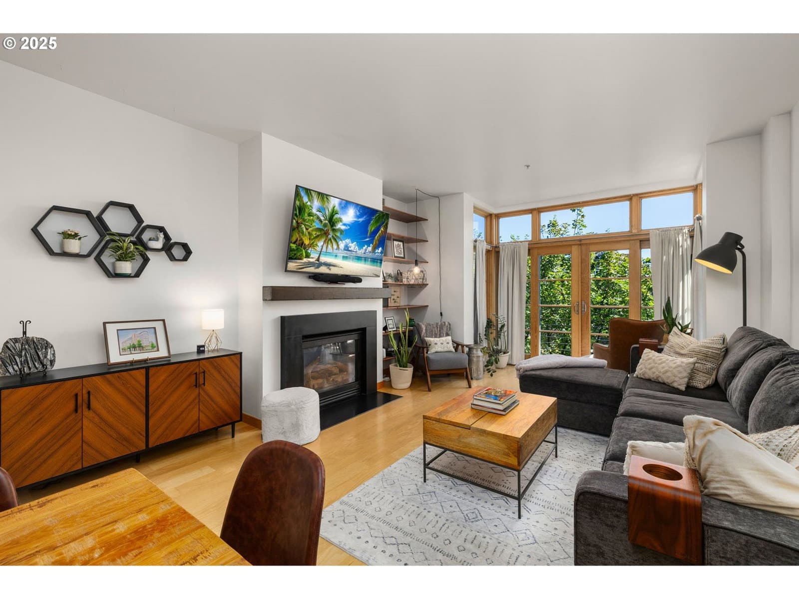 Offering a rare balance of city living and natural serenity, this inviting residence overlooks the tranquil beauty of Tanner Springs Park. The cozy living area features French doors, a gas fireplace, and picturesque park views—creating a warm and welcoming atmosphere.The updated kitchen is thoughtfully designed with modern appliances, a new dishwasher, a wine fridge, and a custom butcher block island, making it ideal for both entertaining and relaxed evenings at home. Both bedrooms include built-in closet organizers for maximum efficiency and storage, while the large primary suite offers a comfortable and cozy retreat.A new washer and dryer are conveniently located within the residence, adding everyday ease and functionality. A newly installed HVAC system—controlled easily via a phone app—ensures year-round comfort throughout the home.The well-maintained building features a serene garden walkway and enhanced security and safety upgrades. Additional amenities include parking space #35, storage unit #45, and EV charging.This home offers a harmonious blend of urban convenience and peaceful living. Please call with any questions or to schedule a private viewing—don’t miss this special opportunity.