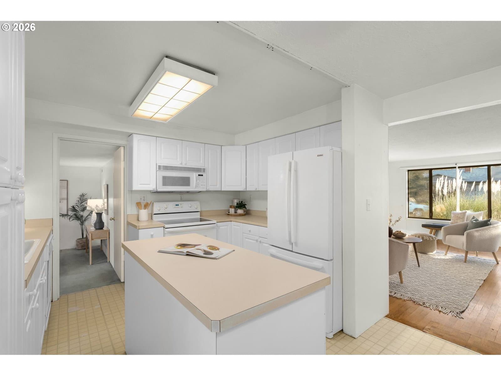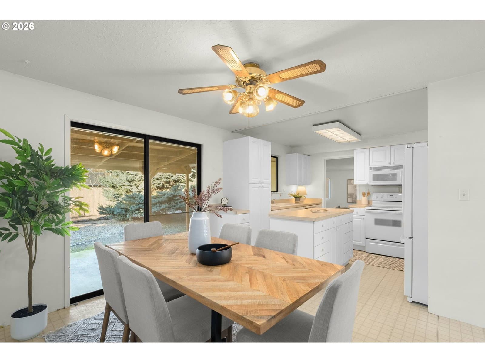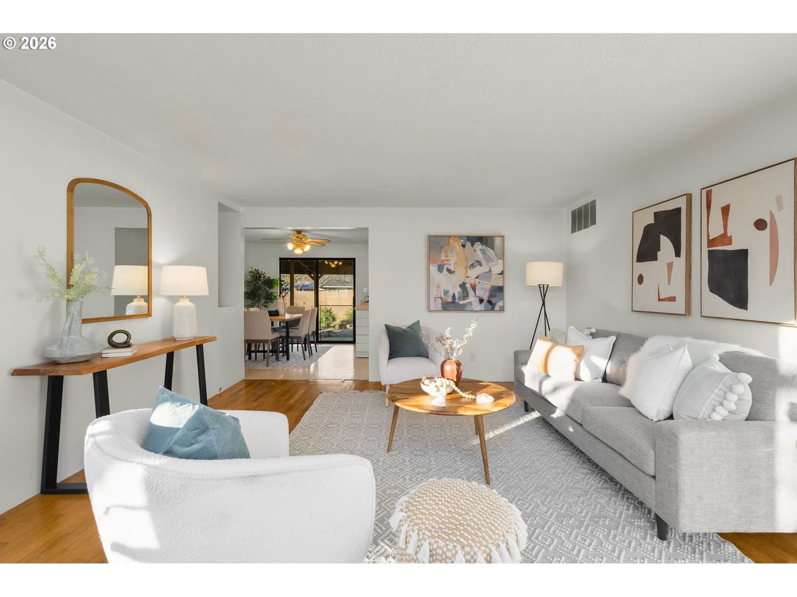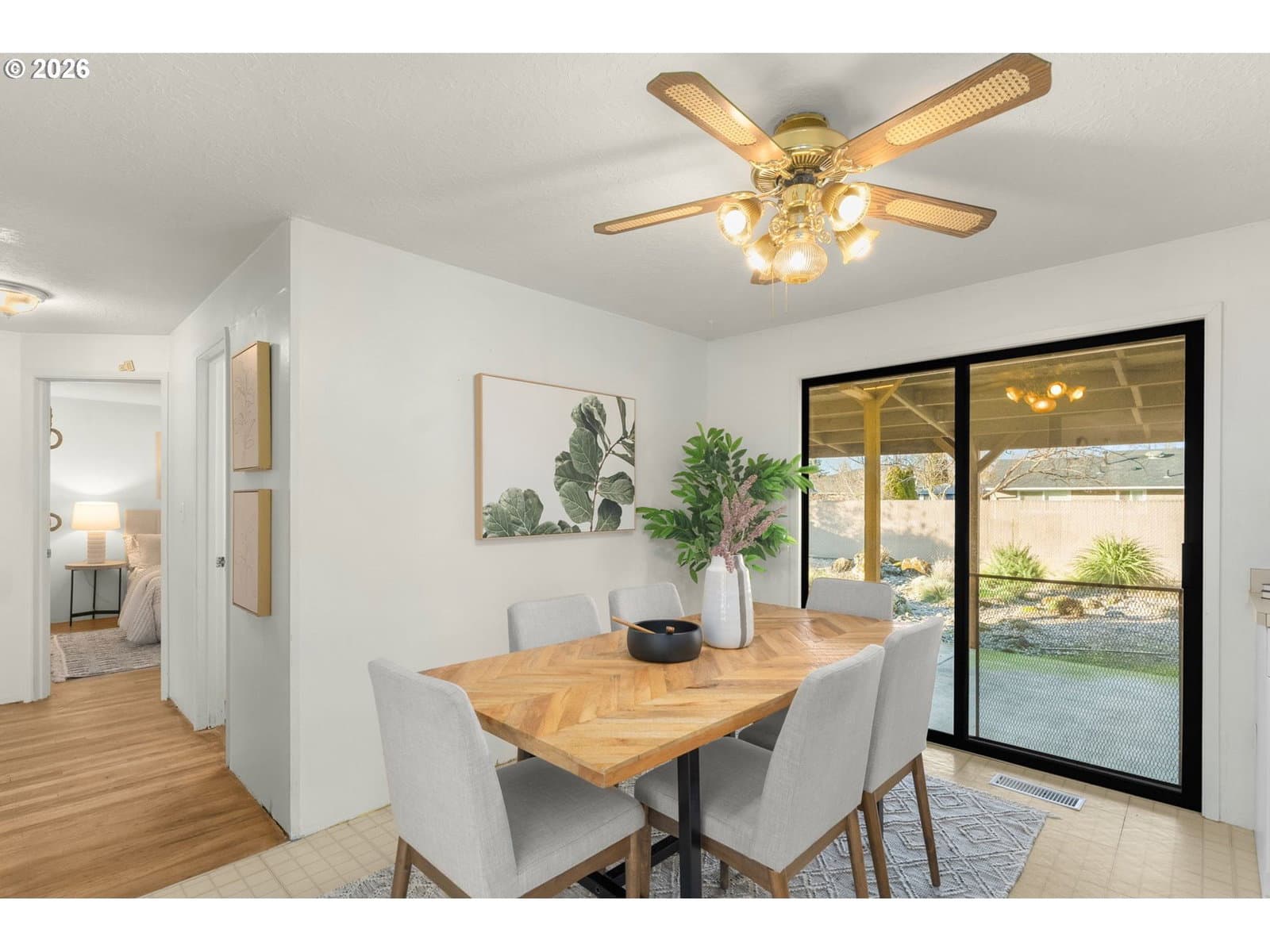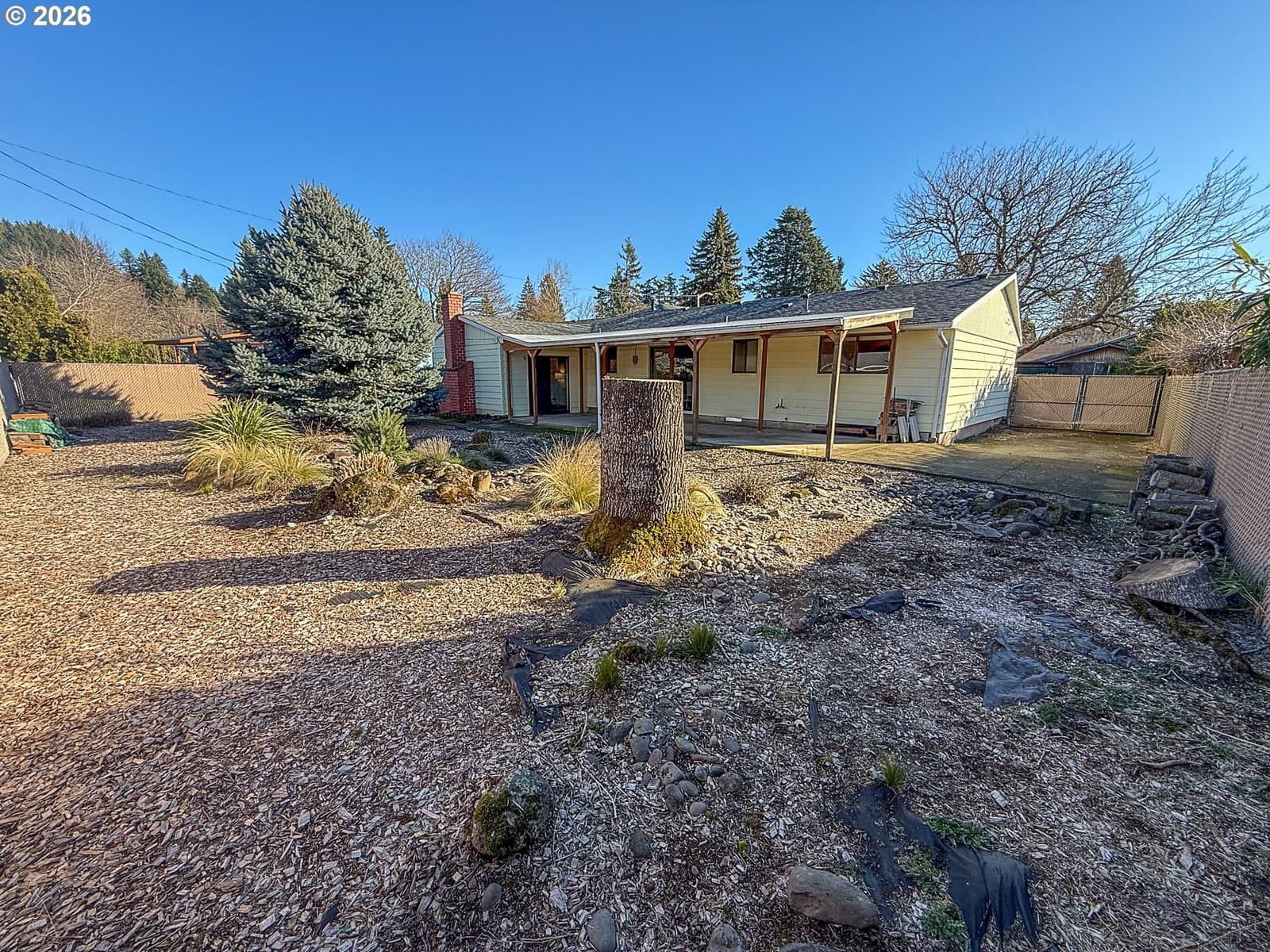 Well-maintained single-level home on a large, private lot in a quiet Gresham neighborhood. This 3-bedroom, 1-bath residence offers a versatile floor plan with a spacious bonus den—ideal for a second living area, home office, or media room. Abundant natural light, thoughtful storage throughout, and a comfortable layout make the home both functional and inviting.The remodeled kitchen features an island on wheels, generous cabinetry, and a pantry, while the updated bathroom includes excellent storage and a grab bar for added convenience. A hall pantry, decorative living room niche, and multiple storage areas enhance everyday livability. The home is equipped with both heating and air conditioning, and a newer roof was installed in 2021.Outside, enjoy a covered concrete patio and a low-maintenance yard with mature landscaping, including a striking Japanese laceleaf maple. Fresh bark chips and established plantings create a nearly maintenance-free outdoor space. The fully fenced yard offers privacy, and RV parking is available on the west side of the home.The oversized garage is well-suited for projects and storage, with ample space for two vehicles plus additional equipment or appliances. Laundry is located in the garage, with room to spare.Conveniently located near shopping, dining, schools, and everyday amenities, with easy access to outdoor recreation and mountain getaways. A solid, well-cared-for home offering comfort, flexibility, and long-term value.