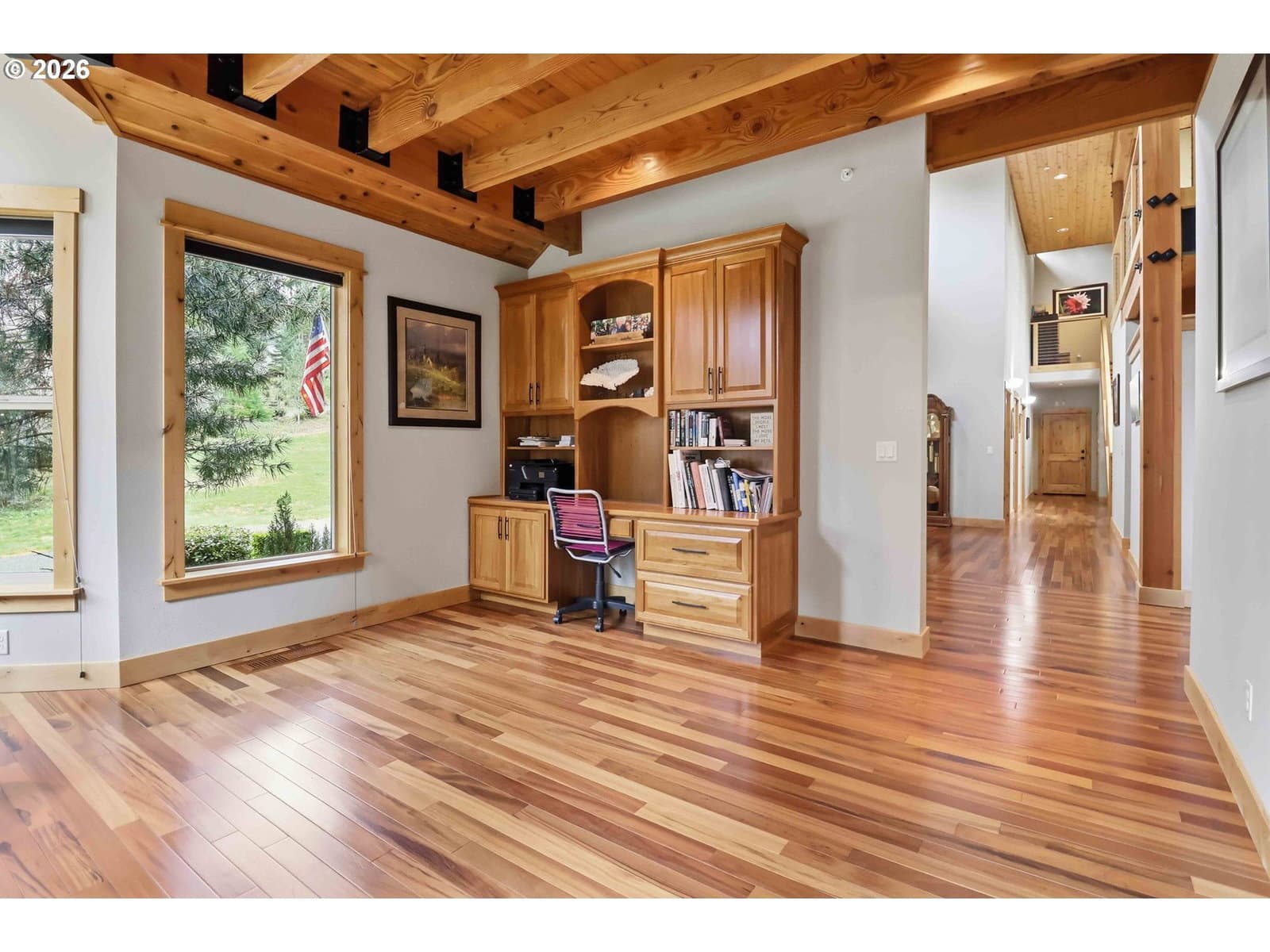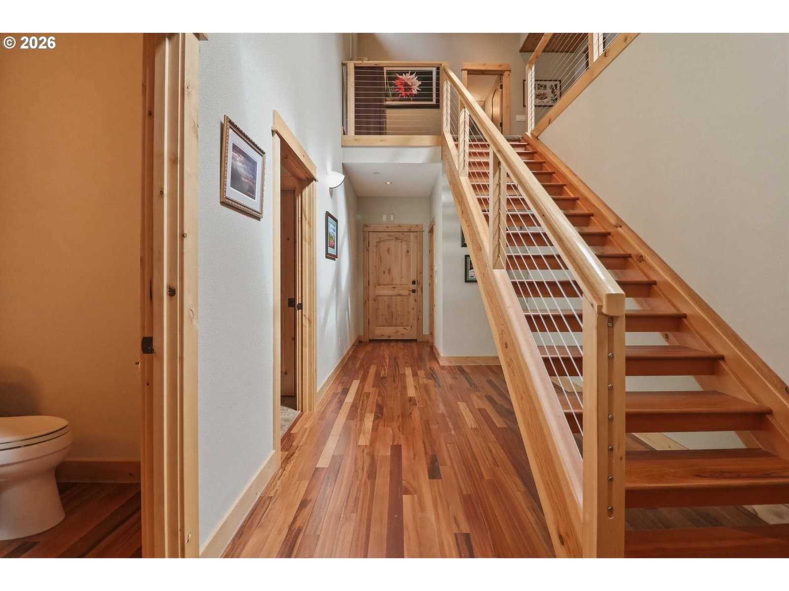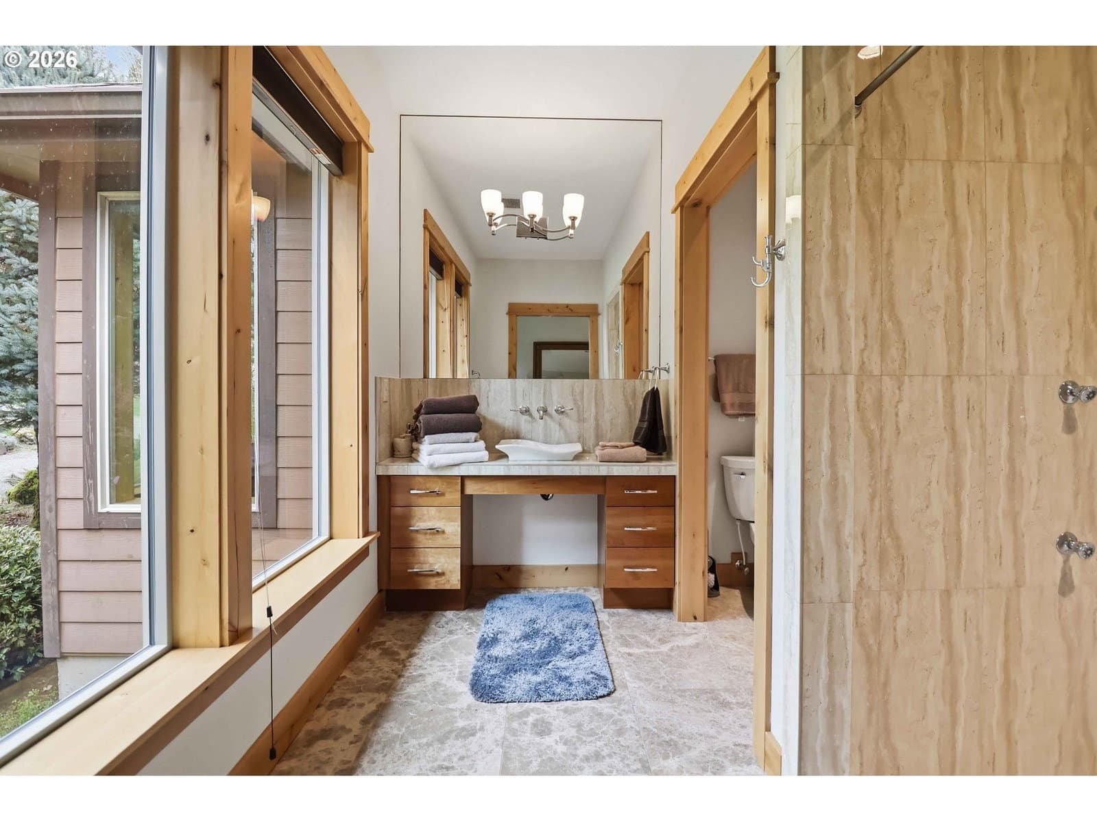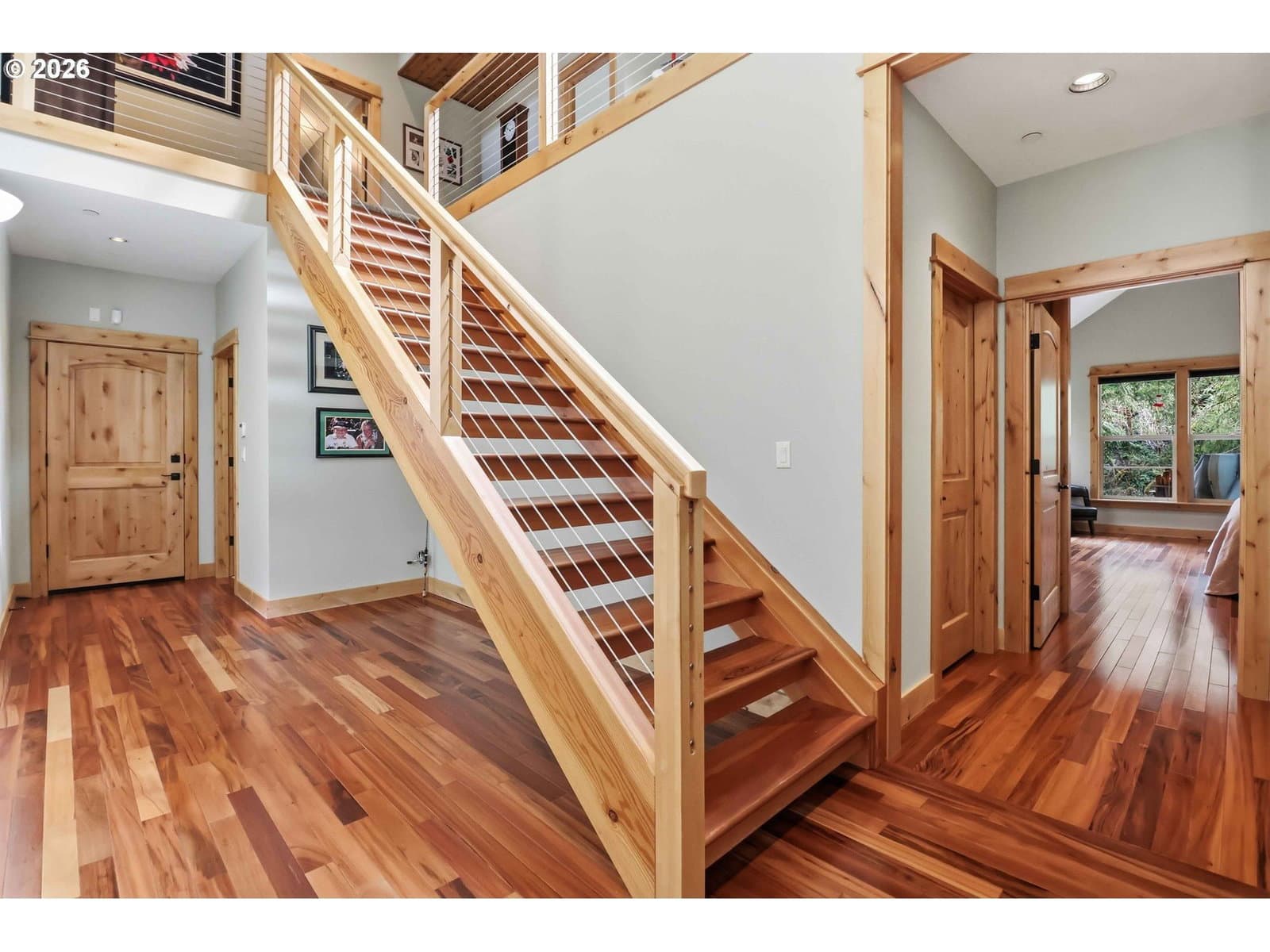 Experience exceptional riverfront living on the Kalama River. Situated on 2.76 private acres with approximately 620 feet of frontage, this 4,051 sq ft custom home offers 3 bedrooms and 4 bathrooms in a peaceful, natural setting just minutes from the well-known “Holy Waters” stretch. Inside, the home features Brazilian tigerwood floors, vaulted cedar-lined ceilings, exposed beams, and custom ironwork that bring out a strong Northwest feel with real craftsmanship throughout. Expansive windows take in river, territorial, and mountain views while bringing in natural light. The layout offers comfortable living spaces and multiple primary suites, making it easy to live in or host. Step outside to Trex decking overlooking the river and a natural waterfall, creating a private setting for relaxing or entertaining. The 1,502 sq ft detached pool house includes a heated indoor lap pool, 650-gallon jacuzzi, and 3/4 bath, set up for year-round use. Additional features include a 3-car garage, extra parking, RV space, high-speed fiber internet, and landscaped grounds with garden space and fruit trees. A unique opportunity to own a riverfront property with acreage and resort-style features in one of Southwest Washington’s most desirable areas.