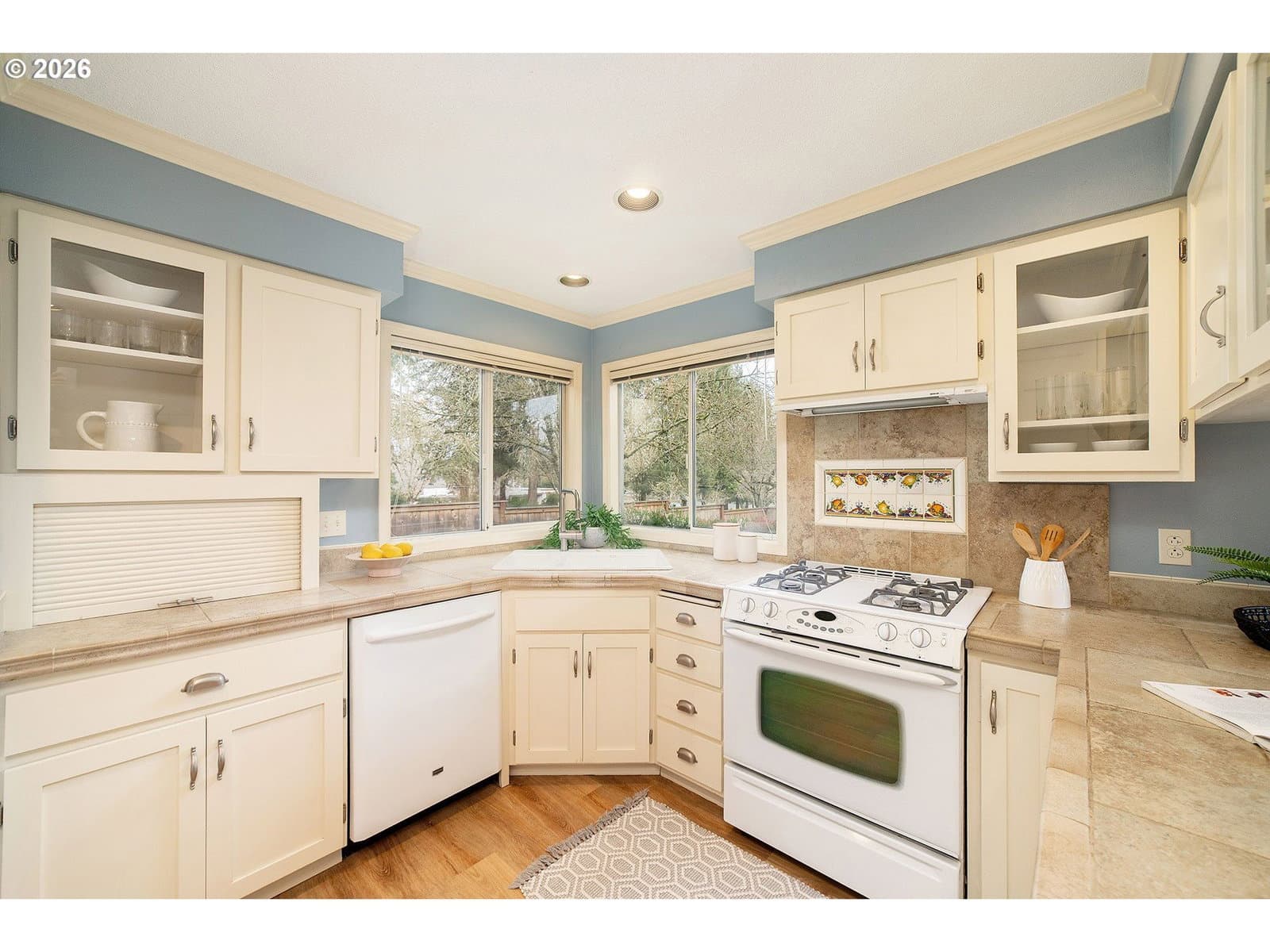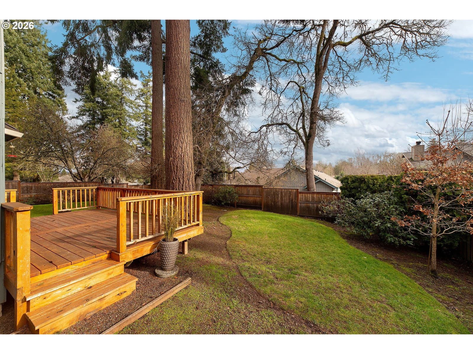 Meticulously maintained home on a picturesque corner lot in a desirable Beaverton neighborhood. The well-designed floor plan lives comfortably, with soaring vaulted ceilings that create an immediate sense of space and light upon entry. Lovingly owned for 30 years, this home clearly reflects pride of ownership throughout. Refinished hardwood floors welcome you at the front of the home, while the rest of the house has been thoughtfully updated with all new flooring. The seller invested in top-quality upgrades, including a beautifully crafted juniper wood deck, durable 50-year tile roof, highly efficient 97% furnace, new water heater, fresh interior paint, and front-and-rear landscape sprinklers. The remodeled primary suite is a true retreat, featuring a spa-like Pottery Barn–inspired bathroom with heated tile floors that blends modern comfort with timeless craftsmanship. Set on an oversized lot, the property offers generous outdoor space and a peaceful buffer from neighboring homes. Truly move-in ready and exceptionally cared for, this home delivers enduring quality, comfort, and style.