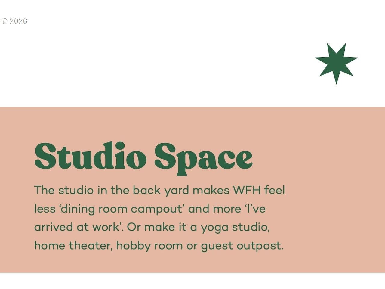 Tucked on a quiet Montavilla street just 0.4 miles from both Mt. Tabor and the restaurants, cafés and shops along Stark Street, The Montavilla Hideout pairs a light-filled home with a detached studio - creating a setup that lives bigger than its footprint. Inside, natural light pours through oversized windows, giving the living spaces an easy, open feel throughout the day. The layout is simple and functional, with three bedrooms on the main level and a flow that just works. Nothing forced, nothing wasted. But the real story starts when you step outside. The backyard is private, lush and surprisingly immersive, especially in the spring when everything comes to life. A covered patio creates outdoor living, while the firepit and mature landscaping make it a space you actually use, not just look at. At the back of the property, a detached studio changes the way the home lives. Bright, quiet and completely separate, it is ideal for working from home, creative projects, or simply having a space of your own. It even has its own deck. And then there is the flexibility. An unfinished basement offers room for storage, hobbies, workouts, ping pong games or future potential, while the detached garage adds even more options for workshop space or long-term expansion. Mt Tabor offers 176 acres of open space that feels more like a lifestyle than a park, from summer concerts and the iconic Soapbox Derby races to tennis courts, basketball, playgrounds and miles of trails. In the other direction, Stark Street delivers everyday favorites: morning coffee at Hungry Heart, dinner at The Observatory, the farmers market, and a mix of local shops, breweries and essentials that make the neighborhood easy to enjoy without getting in the car. It is a location that balances quiet residential living with real, walkable access to the things you actually use. The Montavilla Hideout - an easy, livable home in a neighborhood that continues to prove why it is one of Portland’s most enduring favorites.