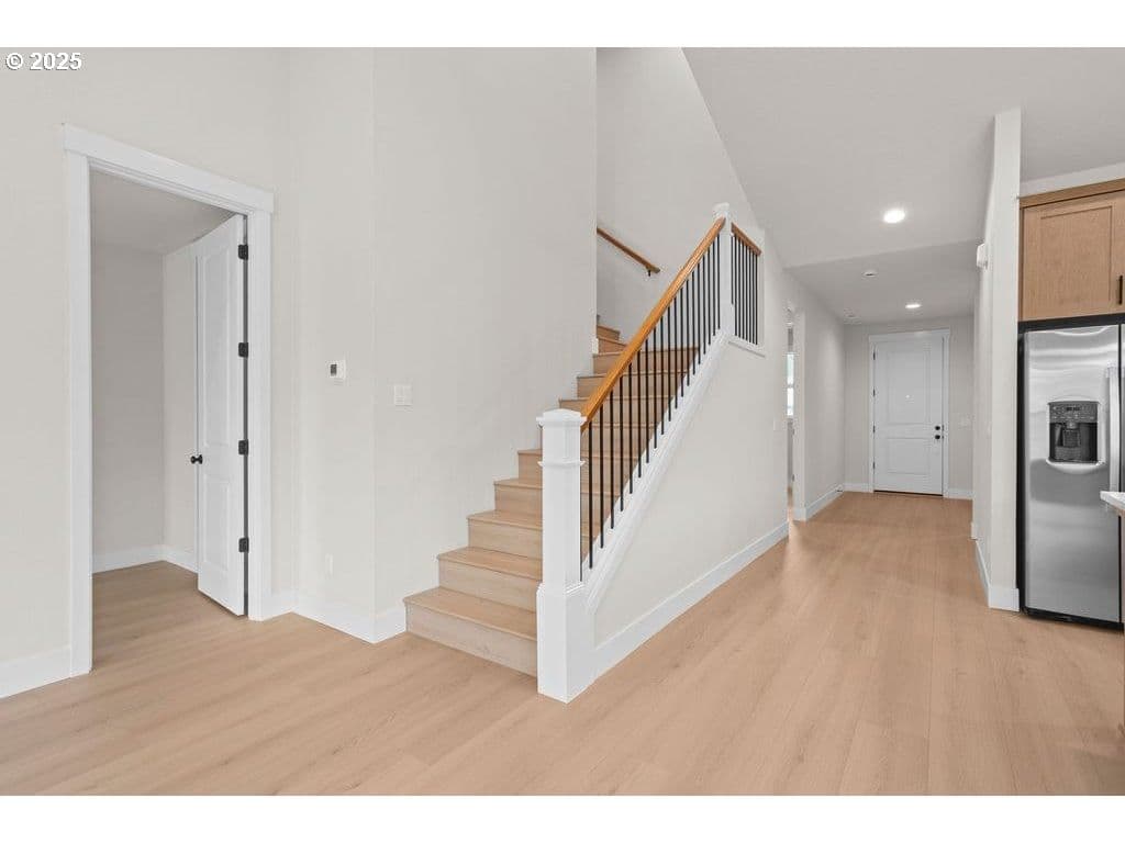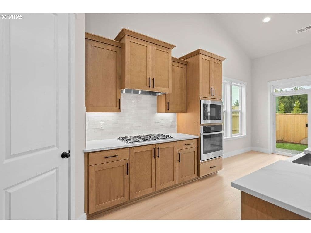 Move in ready, brilliantly crafted primary on main! Builder incentives available! The 2096 Plan features a large vaulted open main floor with two car garage plus shop. Laundry, office/guest bedroom with full bath and open great room, and a primary suite complete the main level. The second floor layout has two bedrooms and a full bathroom. Standard features include a large kitchen island, gas range cooking, A/C, forced air heating, beautiful trim work, soaking tub in primary bathroom, 9 ft ceilings on main floor with 8 ft doors, 8 foot ceilings upstairs, covered back patio, fully fenced yard. Upgrades included: laminate flooring throughout (NO carpet!), gourmet kitchen layout, tile shower, quartz counters in kitchen and bathrooms, full tile backsplash, a gas fireplace, plus landscaping and irrigation in both front and backyard. Welcome home to Ramble Creek, a brand-new community in a pristine wooded setting with walking trails, parks, a playground, creek and tall trees, all within easy access to I-5 and I-205. Photos are of the actual home. Please come by for a tour, open daily 10-5! Check in at the Model Home located at 4519 NE 183rd Street Vancouver, WA 98686