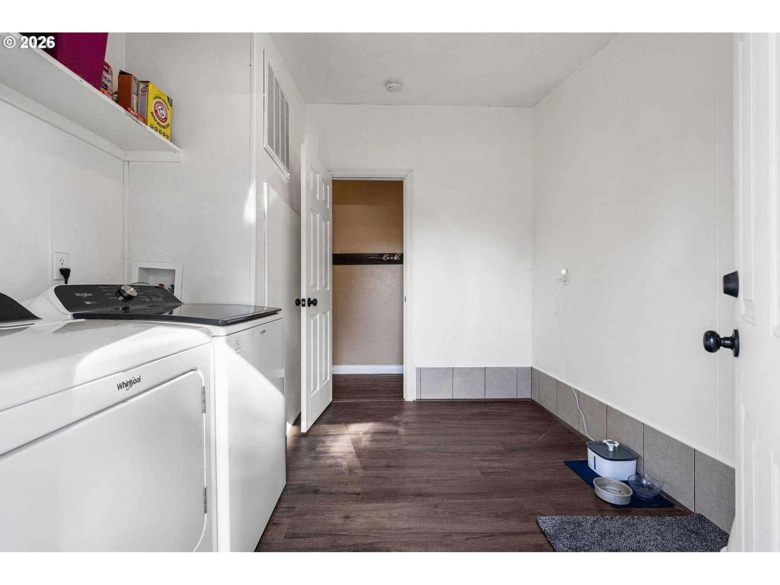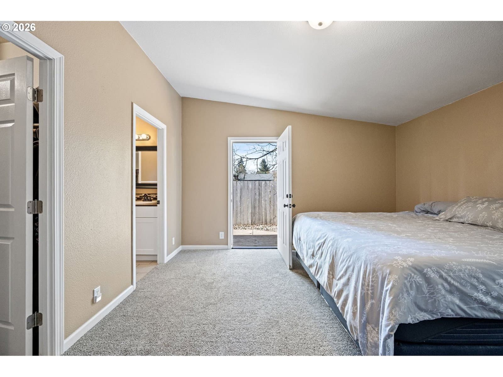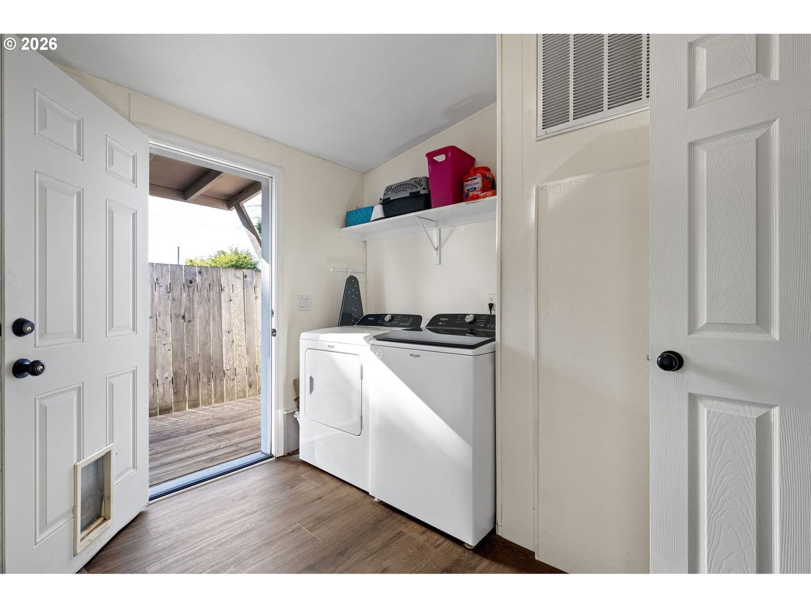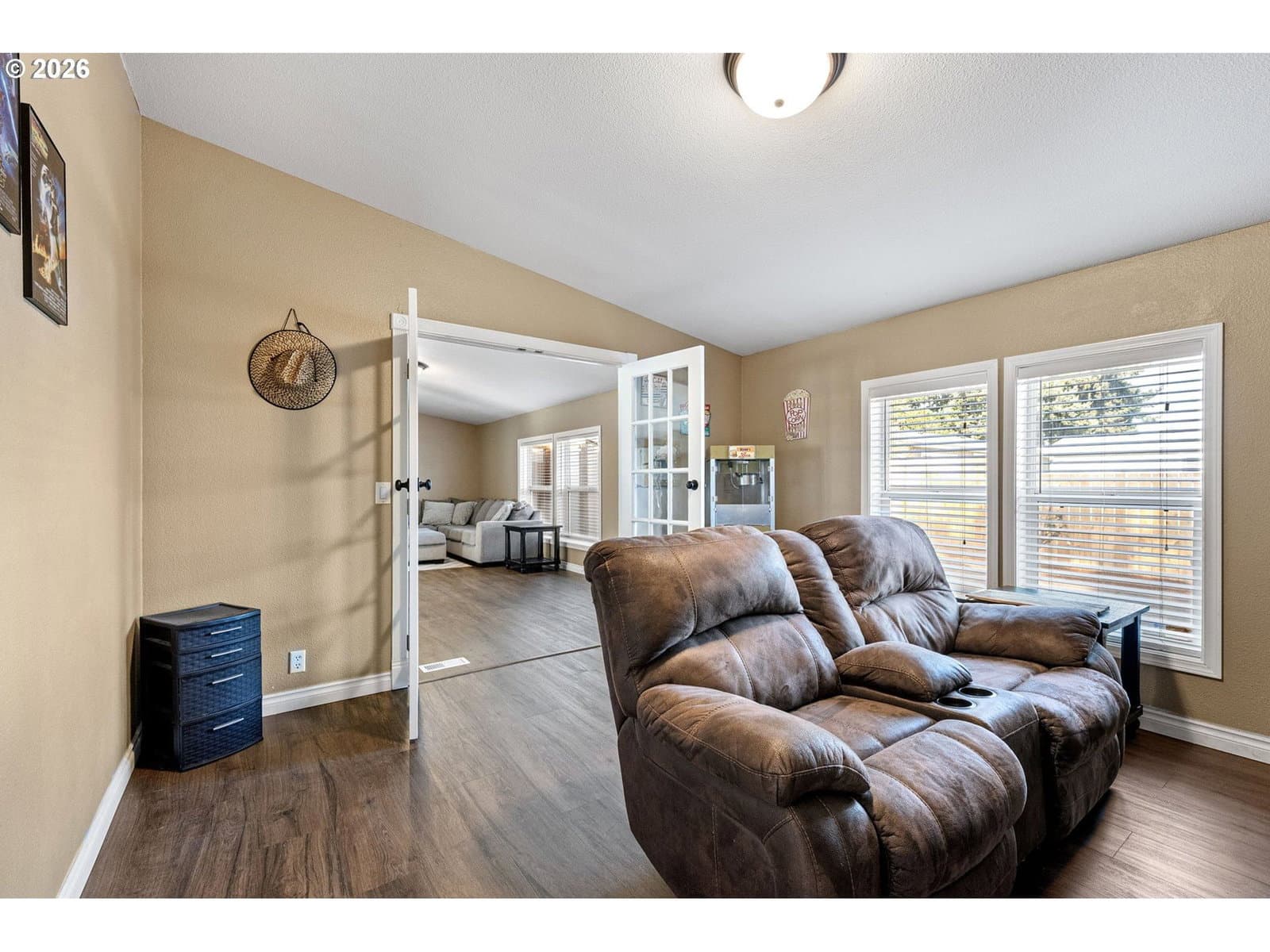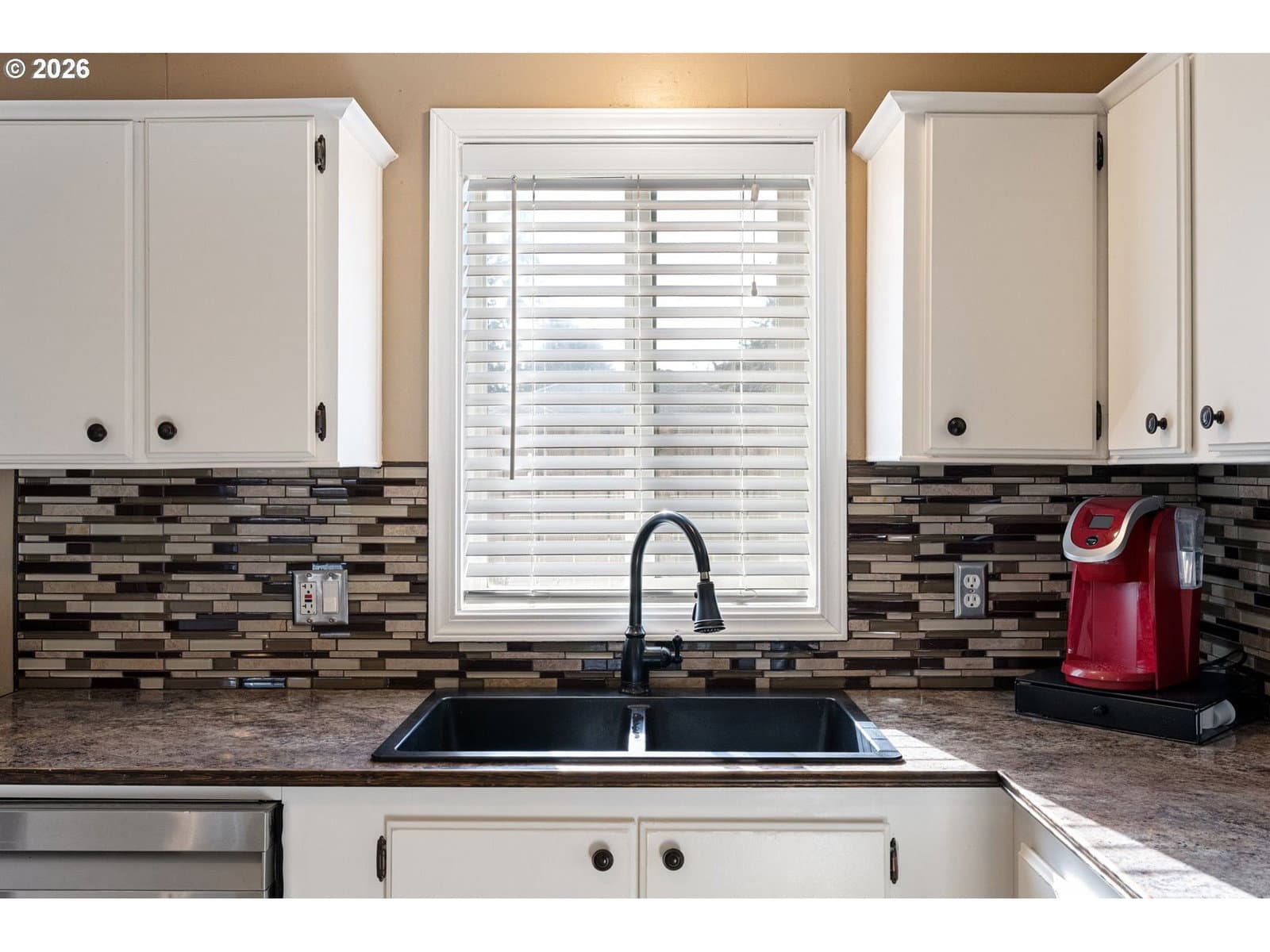 Welcome home to this comfortable, well-cared-for property tucked into a friendly neighborhood. The open floor plan and tall ceilings create a bright airy atmosphere throughout the home—perfect for both everyday living and entertaining. Just off the main living area is a flexible family room that works beautifully as a den, office, or extra hangout space. The kitchen flows into the living areas and features tons of counter space, a huge pantry, and all appliances included—perfect for everyday meals, homework time, or casual entertaining. The living room is cozy and inviting with an included TV stand and electric fireplace that adds both warmth and ambiance, while forced-air heating keeps the home comfortable year-round. Newer laminate flooring runs through the main living spaces, with nearly new carpet in the bedrooms. The spacious primary bedroom offers a large walk-in closet and direct access to the backyard patio—an easy way to step outside and unwind. Fresh paint throughout gives the home a clean, move-in-ready feel. The fully fenced backyard provides privacy and flexibility, with a low-maintenance yard, back deck and convenient garden bed just waiting for your veggie starts. FHA financing is welcome, and the home has been earthquake strapped—helping make the lending process smooth and stress-free. Tucked into a quiet cul-de-sac, the home enjoys minimal traffic and a strong sense of community. The driveway and side parking together can accommodate up to six vehicles—making it easy to host friends and family. With Madison Middle School, the newly opened Santa Clara Community Park, shopping, bus lines, grocery stores, and easy access to Junction City via River Road nearby, this location is ideal for convenient everyday living.