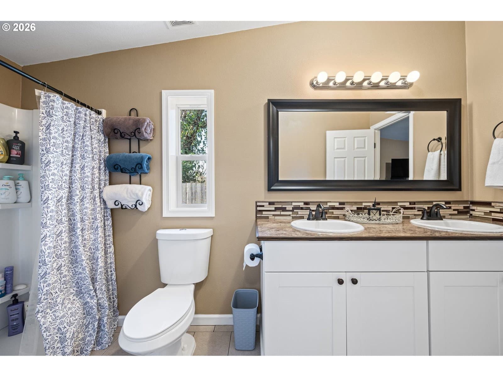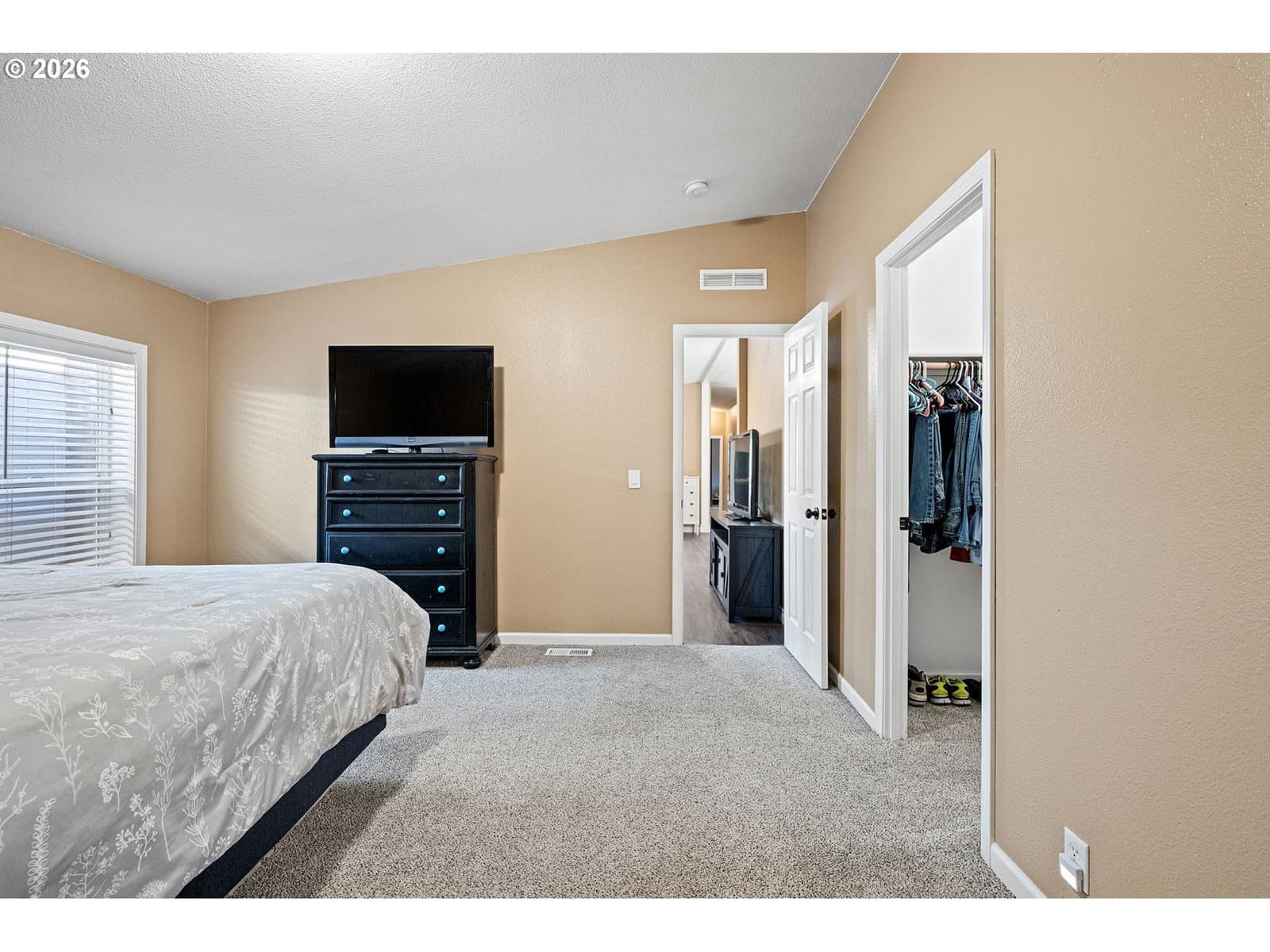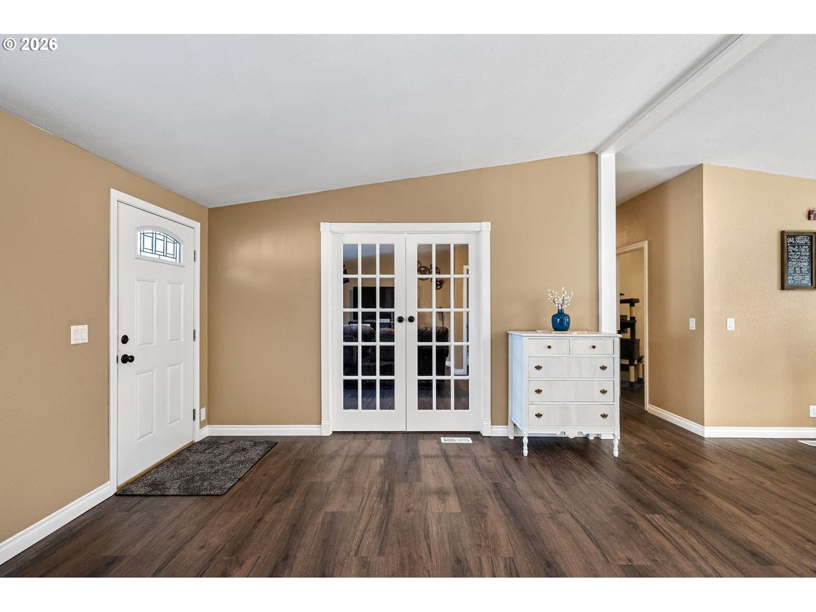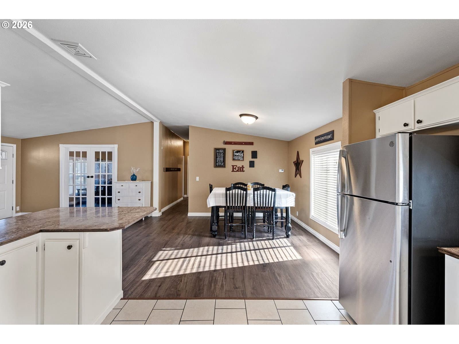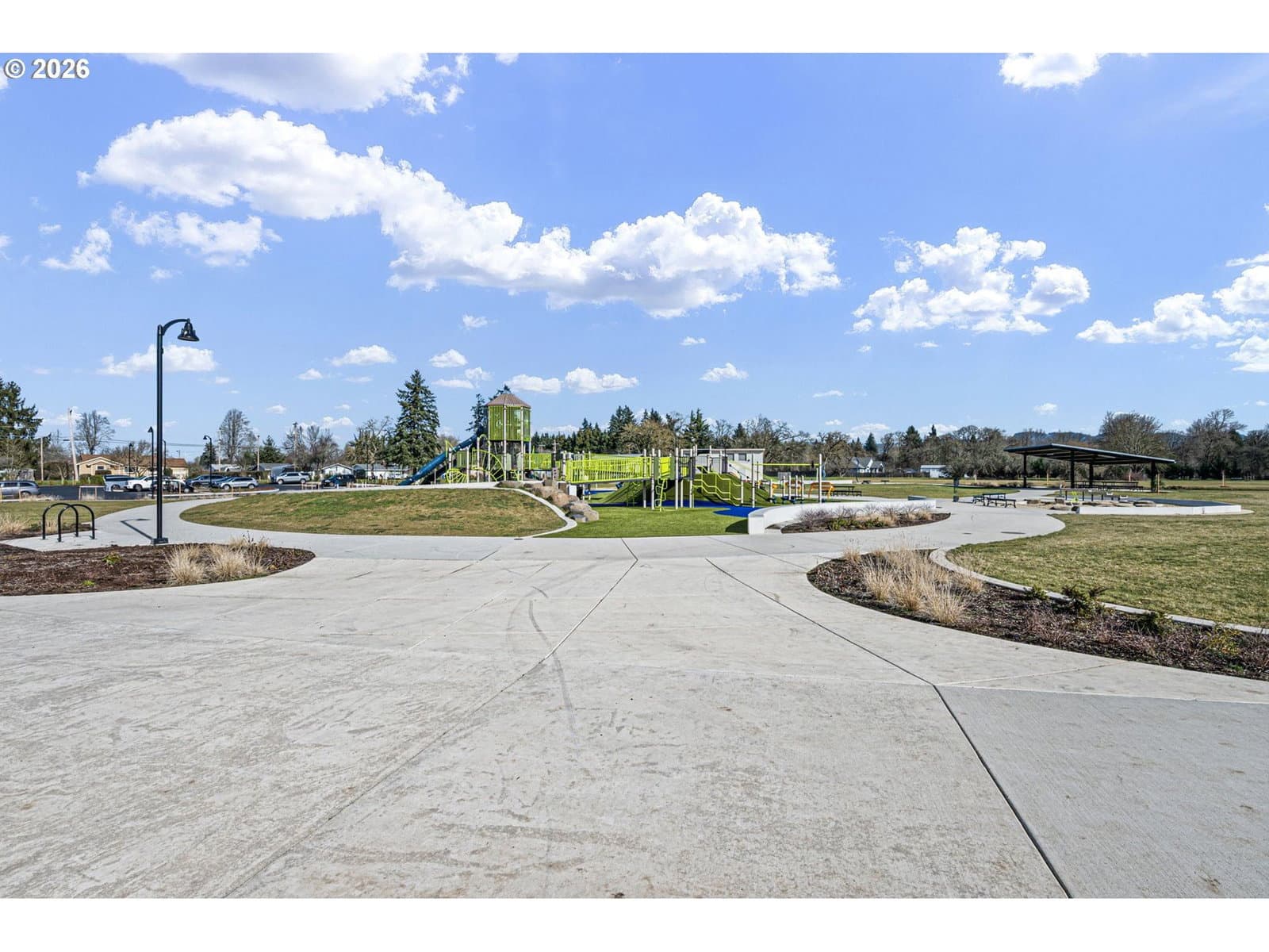 Welcome home to this comfortable, well-cared-for property tucked into a friendly neighborhood. The open floor plan and tall ceilings create a bright airy atmosphere throughout the home—perfect for both everyday living and entertaining. Just off the main living area is a flexible family room that works beautifully as a den, office, or extra hangout space. The kitchen flows into the living areas and features tons of counter space, a huge pantry, and all appliances included—perfect for everyday meals, homework time, or casual entertaining. The living room is cozy and inviting with an included TV stand and electric fireplace that adds both warmth and ambiance, while forced-air heating keeps the home comfortable year-round. Newer laminate flooring runs through the main living spaces, with nearly new carpet in the bedrooms. The spacious primary bedroom offers a large walk-in closet and direct access to the backyard patio—an easy way to step outside and unwind. Fresh paint throughout gives the home a clean, move-in-ready feel. The fully fenced backyard provides privacy and flexibility, with a low-maintenance yard, back deck and convenient garden bed just waiting for your veggie starts. FHA financing is welcome, and the home has been earthquake strapped—helping make the lending process smooth and stress-free. Tucked into a quiet cul-de-sac, the home enjoys minimal traffic and a strong sense of community. The driveway and side parking together can accommodate up to six vehicles—making it easy to host friends and family. With Madison Middle School, the newly opened Santa Clara Community Park, shopping, bus lines, grocery stores, and easy access to Junction City via River Road nearby, this location is ideal for convenient everyday living.