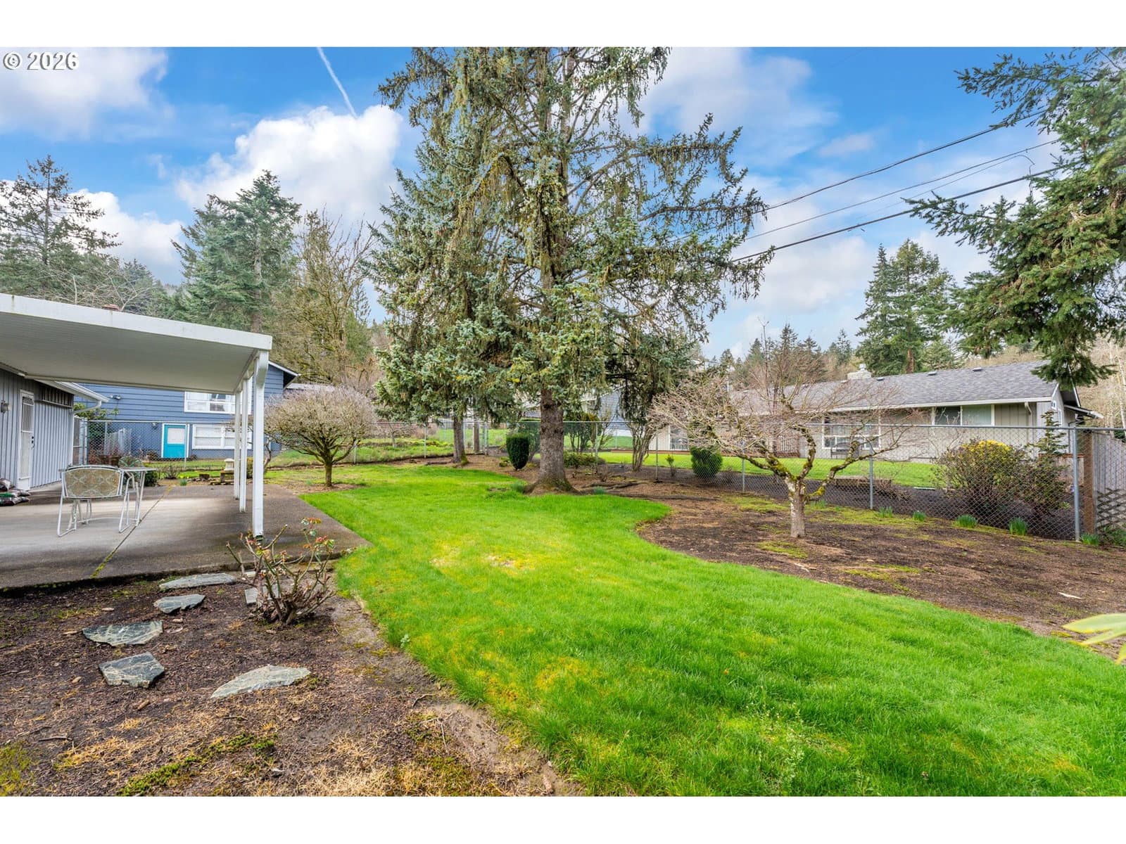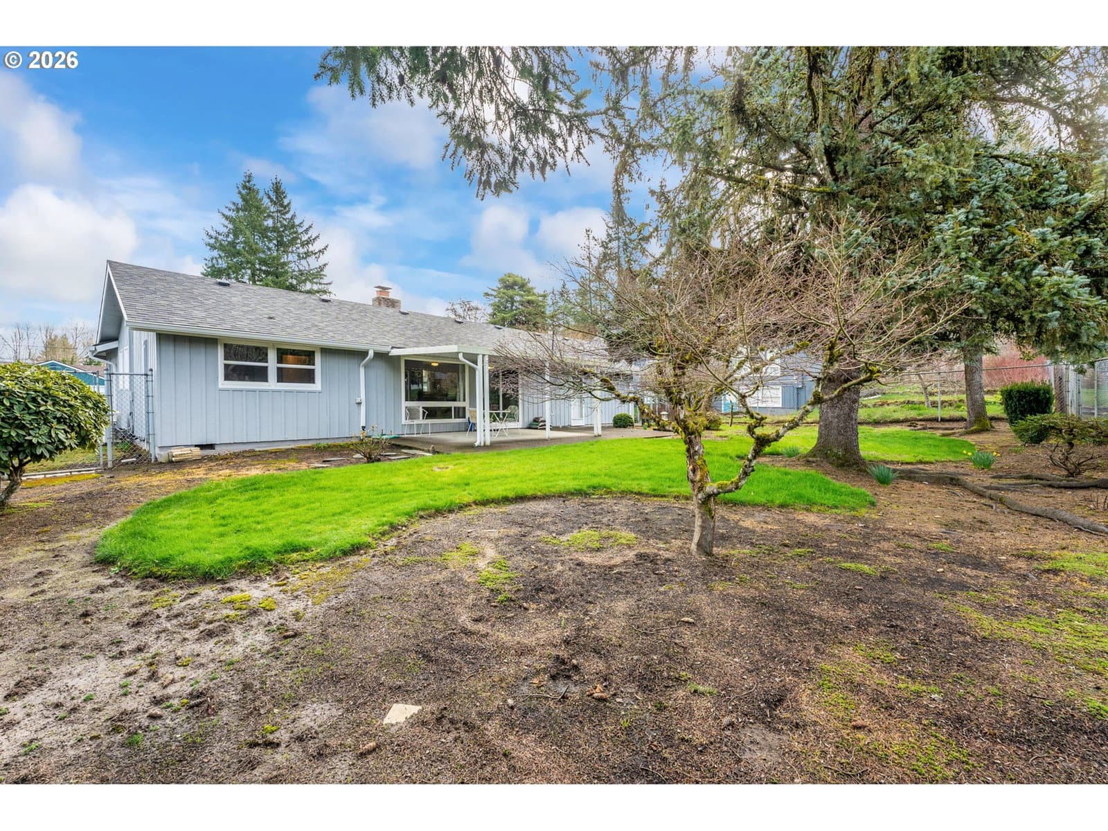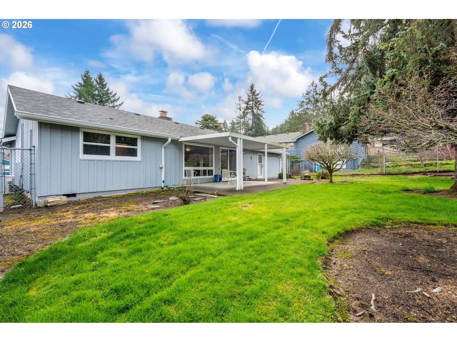 Lovingly maintained by the same owner for the past 60 years, this charming 3-bedroom, 1.5-bath home offers comfort, character, and incredible potential. With 1,196 square feet of living space, the home features a welcoming living room with a cozy wood-burning fireplace. Large dining room with a sliding glass door opens to a generous 15’ x 30’ covered patio, creating an ideal space for outdoor entertaining and year-round enjoyment. Hardwood floors greet you at the entry and continue throughout all three bedrooms. Roomy kitchen is ready for your personal updates and design ideas. The primary bedroom includes an adjoining half bath for added convenience. This home has seen several important updates including repiping with PEX in 2018, a new roof, gutters, and downspouts in Fall 2022, and fresh exterior paint in Summer 2022. Double-pane vinyl windows throughout help improve energy efficiency, while the mini-split HVAC system provides modern heating and cooling. Additional features include an attached two-car garage with direct access to the fully fenced backyard—perfect for gardening, pets, or outdoor gatherings. This well-cared-for home offers a wonderful opportunity to add your personal touches. Prime location in the desirable Hallinan neighborhood with easy access to downtown Lake Oswego and local amenities. Convenient to nearby Hallinan Woods, parks, trails, and top-rated schools. No HOA!