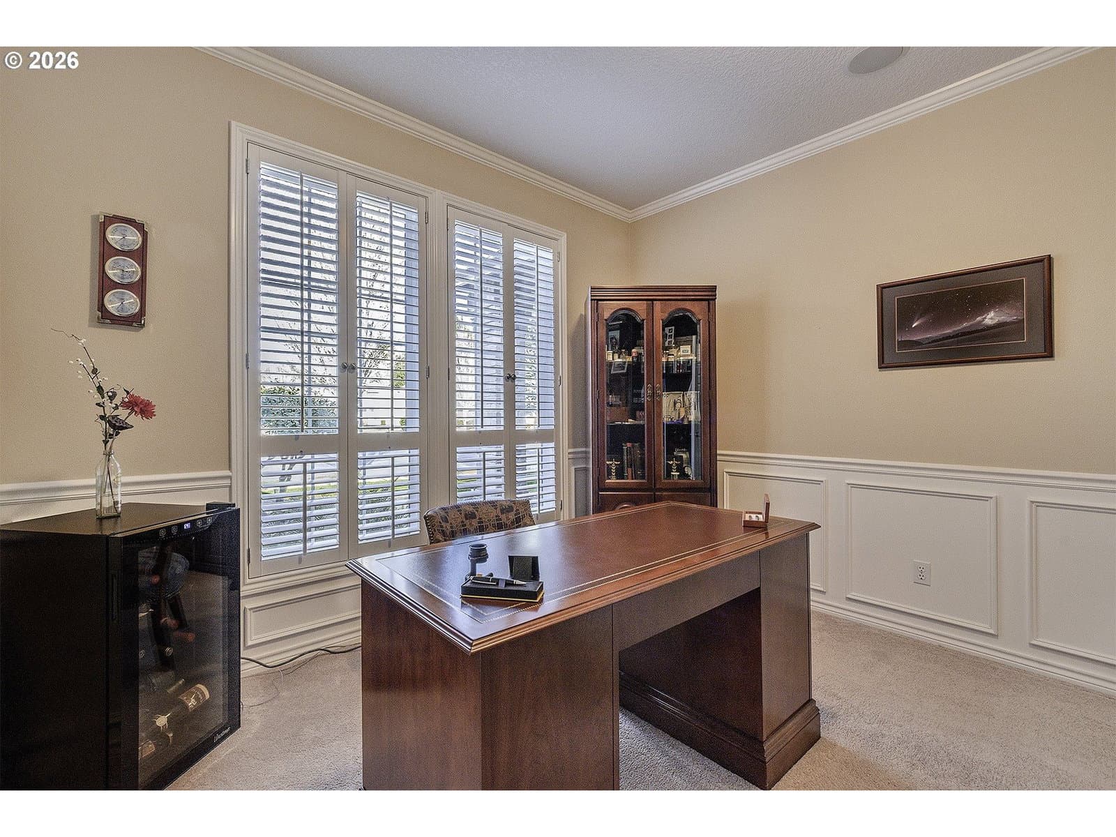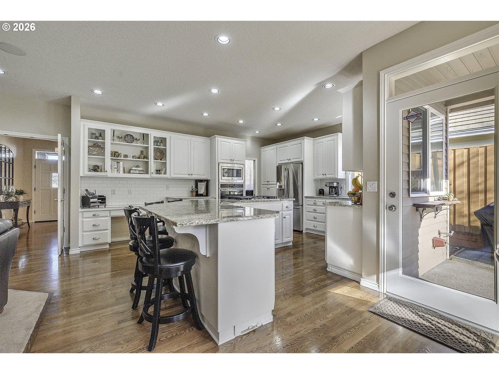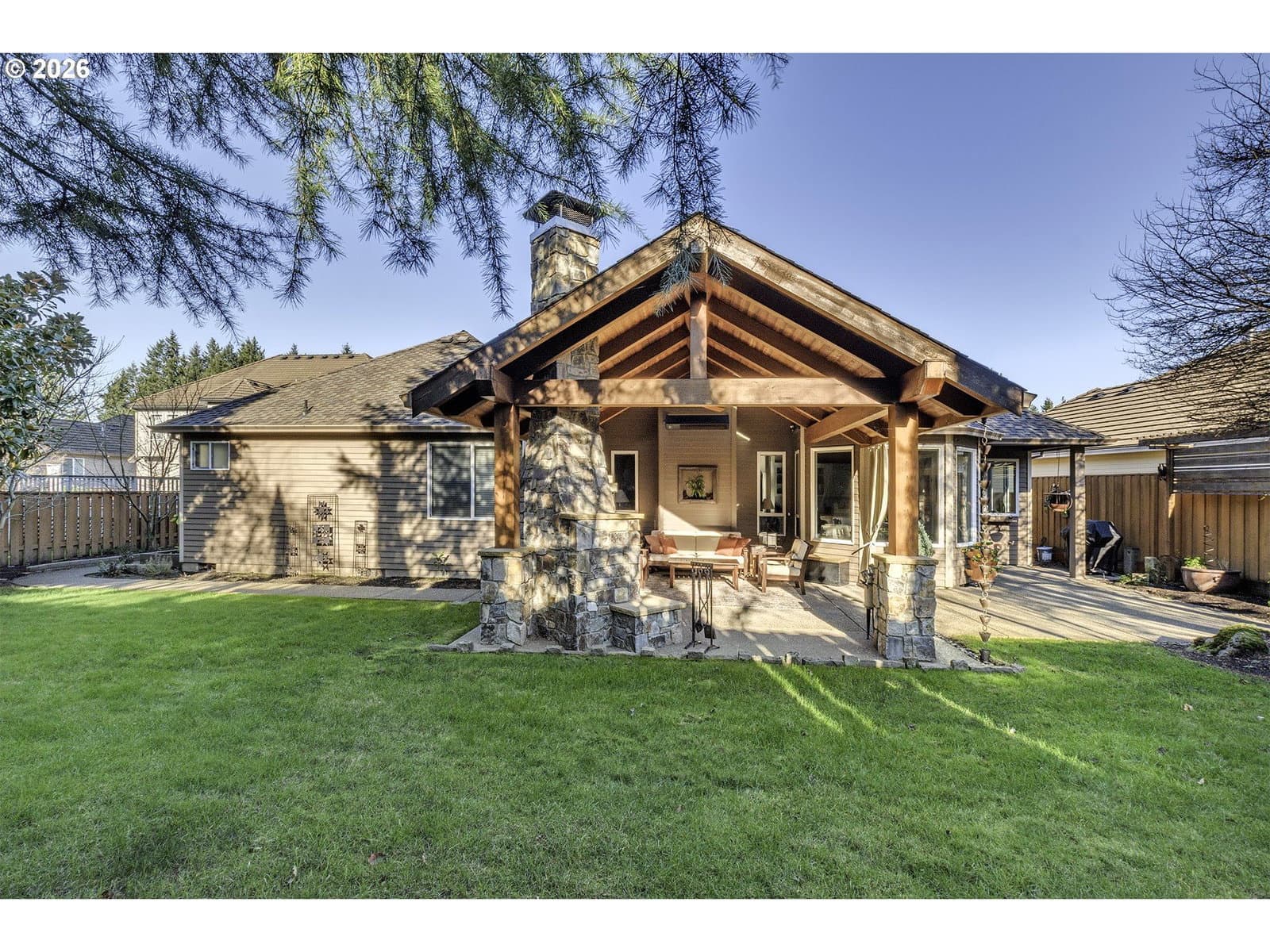 This beautiful, quality-built single-level home in the highly desirable Hedges Park is the perfect blend of elegance, comfort, and effortless indoor-outdoor living. 3bdrm + den. The open floor plan has formal living and dining spaces, designed for both everyday living and special gatherings w/high ceilings, wall of windows and opens to the dining room w/triple tray ceiling. Great room features spacious family room with/gas fireplace, huge entertaining island w/slab granite countertops & dining w/charming bay window. Primary suite has walk-in closet and a beautifully updated bathroom w/tiled walk-in shower, large vanity w/dual sinks & heated tiled floor. Manicured, fenced backyard ideal for year-round outdoor living. The vaulted covered patio features skylights and a ceiling fan & plumbed for a gas BBQ. Stunning real-rock, gas-start wood-burning fireplace creates a warm & inviting space for entertaining in every season. 3-car garage w/built-in storage cabinets & workbench. Central vacuum system. Ring doorbell. Auto-sprinkler system. Presidential comp roof (2016). Gas furnace & gas water heater. A/C.