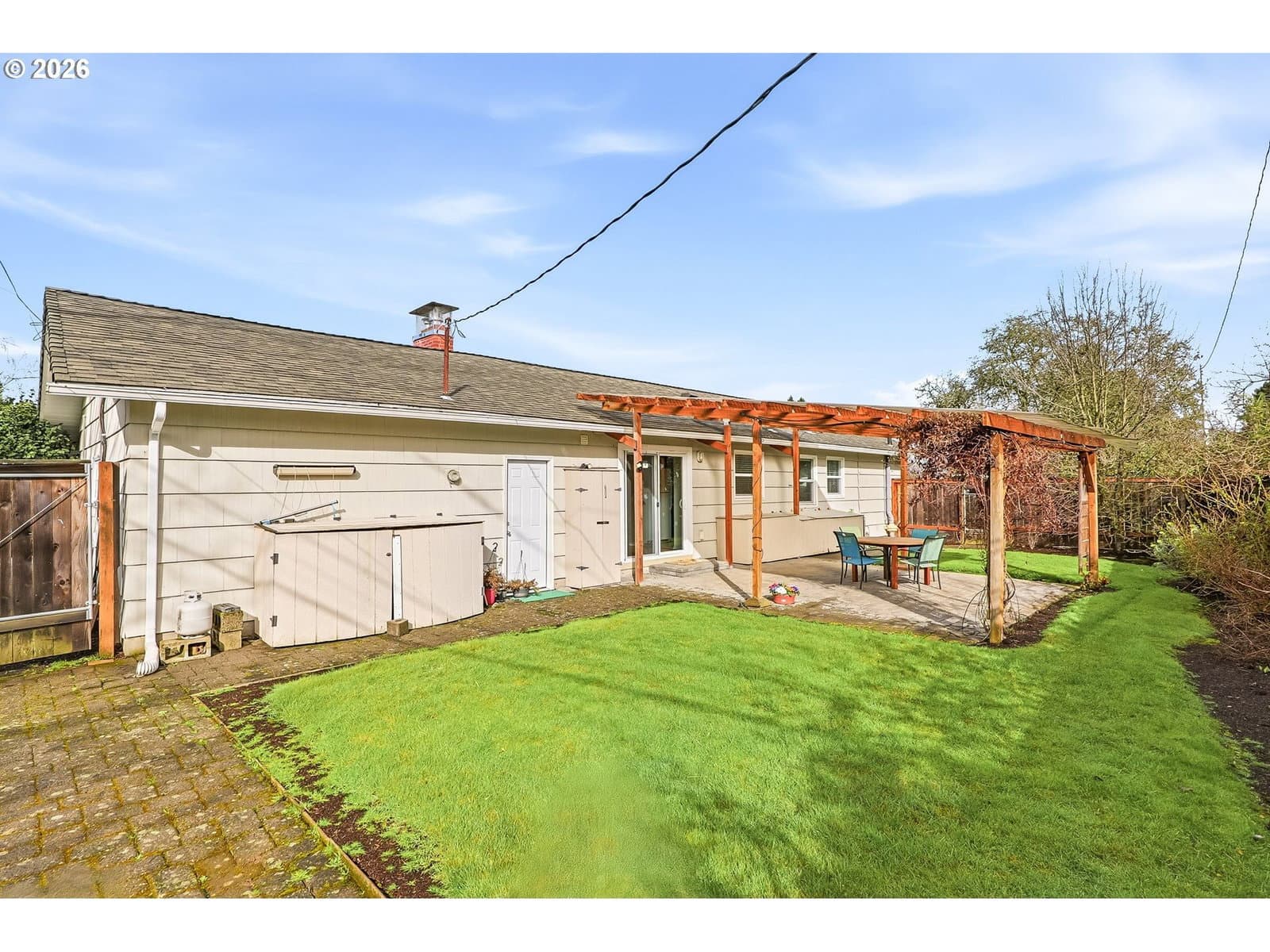 Open Sunday 2/15-1PM-3PM Well-maintained one-level ranch on a desirable corner lot featuring hardwood floors throughout and a living room fireplace with gas insert. Updated kitchen offers quartz countertops, stainless steel range, roll-out cabinetry, and a coffee bar. Dining room slider opens to a fully fenced, gardener’s backyard with covered patio, lawn area, flagstone patio, and storage bins. Home includes three bedrooms, one bath, new vinyl windows, and a two-car garage. RV Parking Convenient location with easy one-level living—don’t miss this opportunity. [Home Energy Score = 4. HES Report at https://rpt.greenbuildingregistry.com/hes/OR10239011]