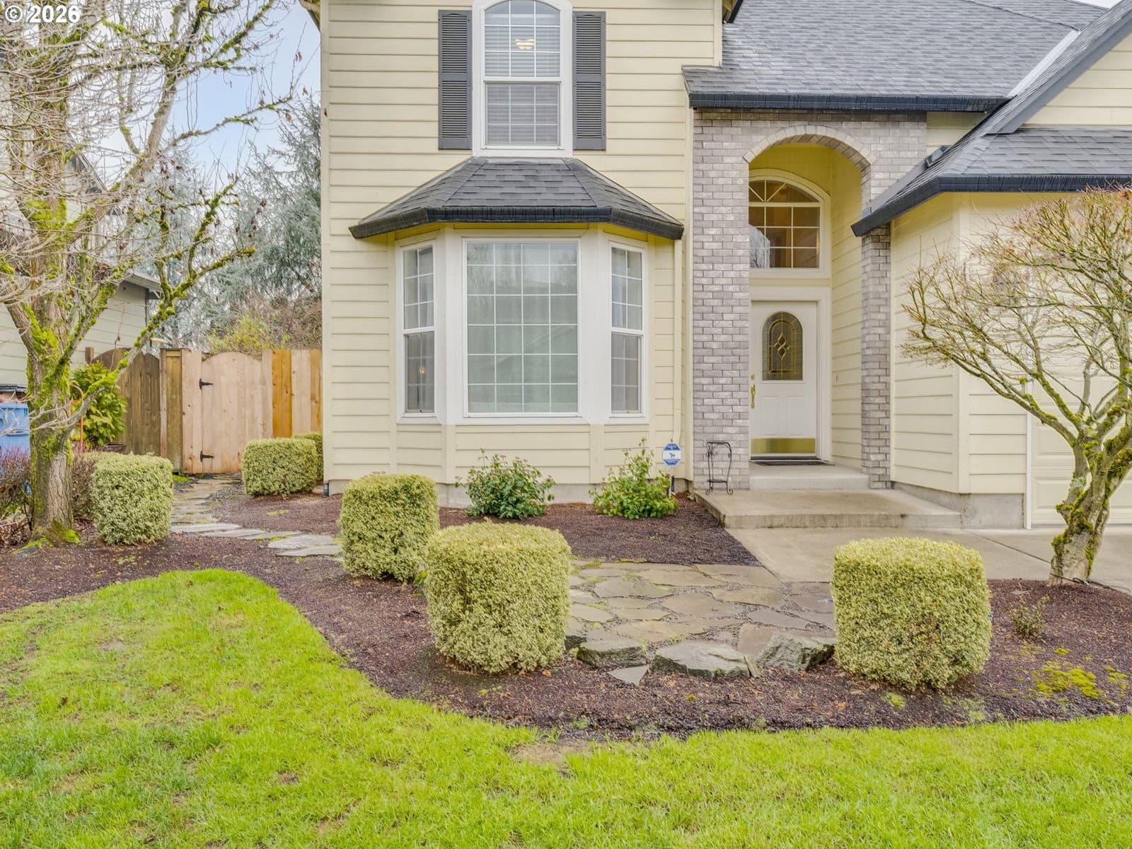 Do you want a possible 5 bedroom, or 4 with a den? This classic & traditional home might check a lot of boxes, so many extras! It features a landscaped front yard w/ a flagstone garden path to a fenced backyard. Feel good on the flat & level driveway, adjacent to a wide sidewalk, covered front porch w/minimal steps, a stately brick archway, and an elegant front door w/transom windows. Step into a grand entryway w/a formal living room & bay windows, wide baseboards & a formal dining room off the hallway entry. There's a huge gourmet kitchen, stand alone island & new countertops, recently remodeled. Enjoy a sunny dining nook w/French doors. The great room/family room has a cozy gas fireplace & is filled with light & a wall of windows to enjoy the loving landscaping in the backyard. Enormous stamped concrete patio, covered pergola, garden beds, manicured side yards, lush lawn & all the plants/flowers ready to bloom soon. A finished 3 car garage w/1 bay separated for a workshop/tool/woodshop/car/hobby room or studio? In the main level there is a half bathroom, a full utility room & a 5th bedroom w/out closet & is currently used as a den/music room w/built in cherry bookcases, storage cabinets, drawers & a desk. Upstairs a majestic staircase leads to a loft area overlooking the entryway. You'll find a double door owners suite w/ an extra sitting area, walk in closet & ensuite bathroom with a jetted tub, double sinks & a walk-in shower. 3 more upstairs bedrooms besides the primary, one is oversized w/a built-in desk inside the closet. Recent upgrades include Renewal by Anderson French doors, refinished hardwoods, new paint, carpeting, microwave, dishwasher, garbage disposal, & double oven. (Gas top, electric ovens) 2023 HVAC replaced included gas furnace & new air conditioner. 2025 manufacturer assessed window replacement of needed windows. Well maintained? Yes! Location to freeways, ride share, schools, shopping, library, banking, casino & hospital. Check! Move in ready!