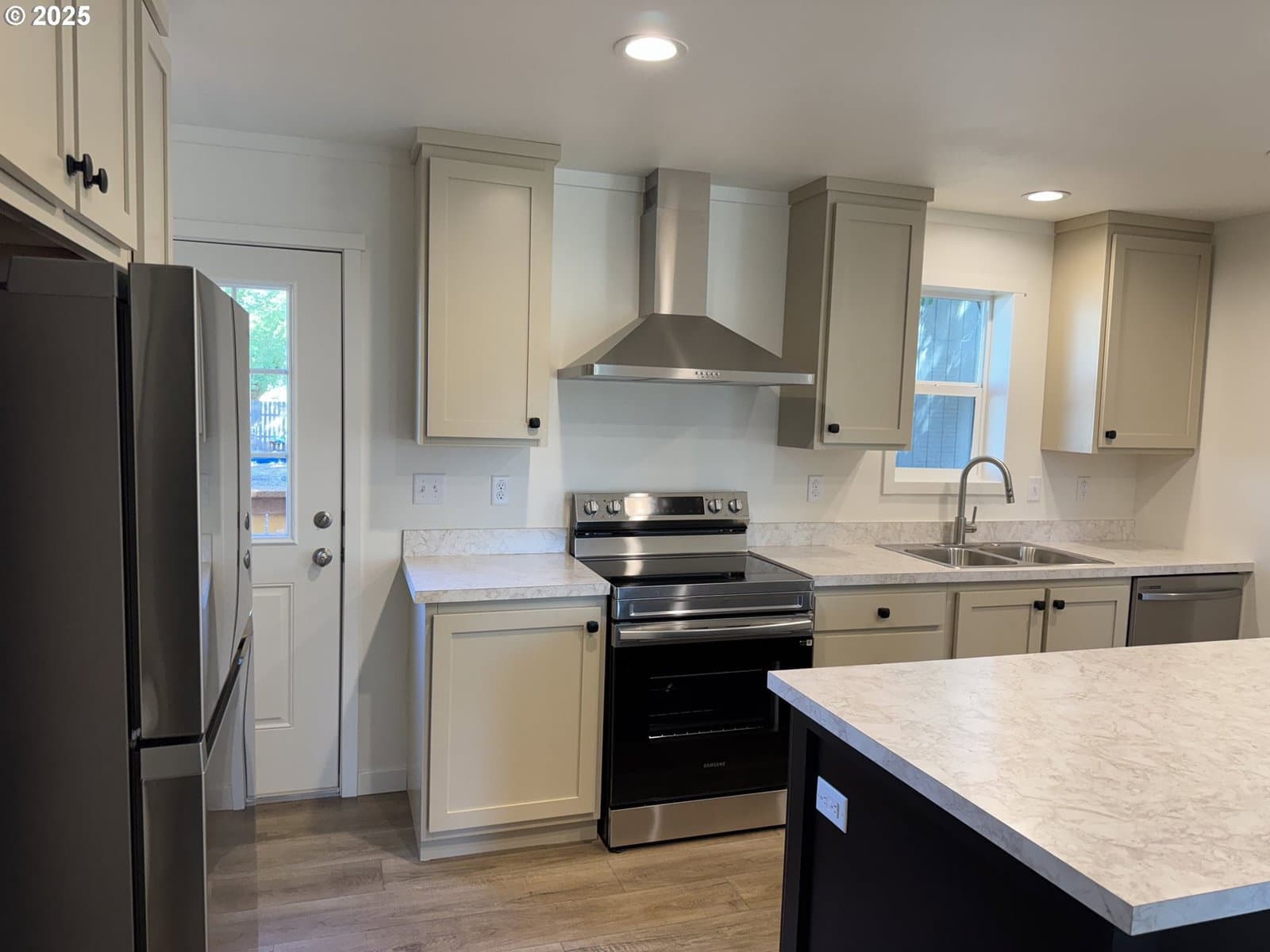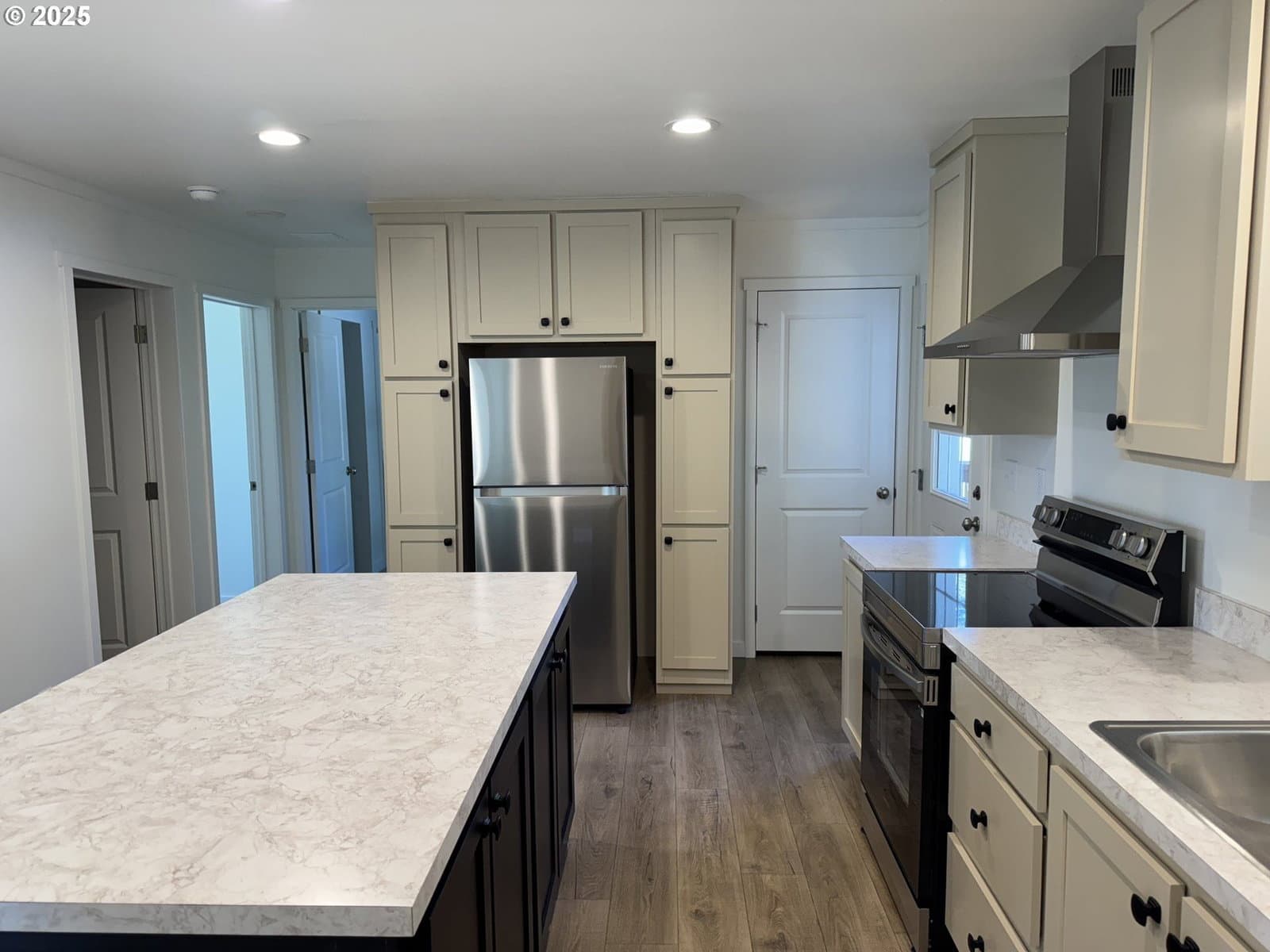 Dishwasher, Free-Standing Range, Free-Standing Refrigerator, Range Hood