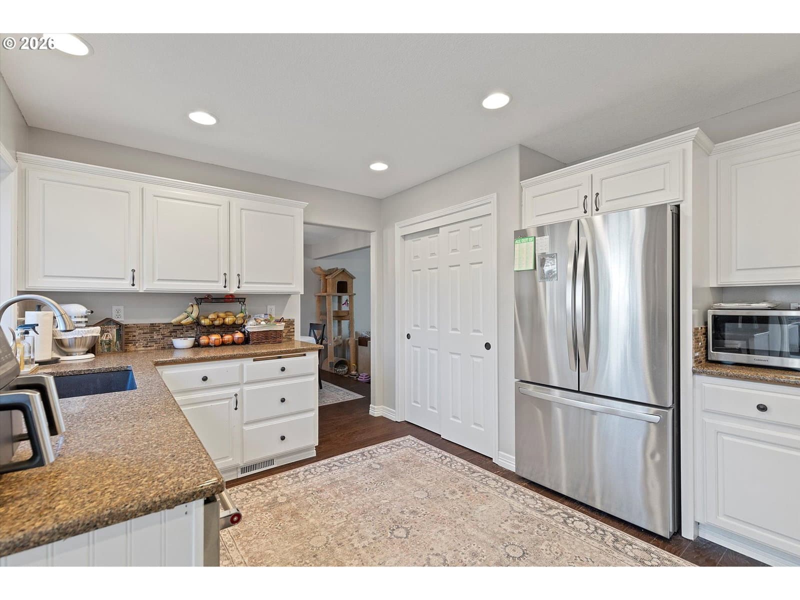 PRICE REDUCTION!! OPEN SATURDAY 1/31 AND SUNDAY 2/1 12PM-2PM! Have you been searching for a perfect blend of comfort, style, and location? You have found it! The sellers have invested in major upgrades including a NEW ROOF, NEW HVAC SYSTEM, NEW WATER HEATER, NEW PAINT, NEW APPLIANCES, and NEW FENCE, ensuring peace of mind for many years to come. Situated in one of Newberg’s most desirable neighborhoods, this recently updated home has it all. Located just minutes from downtown Newberg, local schools, Tom Gail Park, and the heart of Oregon wine country, enjoy premier living with NO HOA! As you arrive, the manicured front yard sets the tone. A charming covered porch invites you inside, where a spacious entry with tall ceilings opens to a step-down living room and formal dining area, perfect for entertaining guests or having additional space to relax. The layout flows seamlessly into a beautifully updated kitchen featuring granite countertops, tile backsplash, stainless steel appliances (all included), a converted island, pantry, and large bay windows that flood the space with natural light. This space is for your culinary dreams to take shape. A cozy coffee nook and abundant cabinetry make this kitchen both stylish and functional. Engineered hardwood floors flow throughout the main level, connecting the kitchen to a cozy family room completed with a gas fireplace. Sliding glass doors open to a new expansive covered deck overlooking a lush backyard with mature trees, ideal for year round relaxation and gatherings. To top it off, a conveniently located half bathroom and a spacious two-car garage with extra depth provide extra amenities. Upstairs, you’ll find four generously sized bedrooms, including a luxurious primary suite with wall-to-wall carpet, walk-in shower, and soaking tub. A second full bath ensures comfort and convenience for everyone. It's not just design and cosmetics though! Rarely does the complete package present itself, but when it does, look no further!