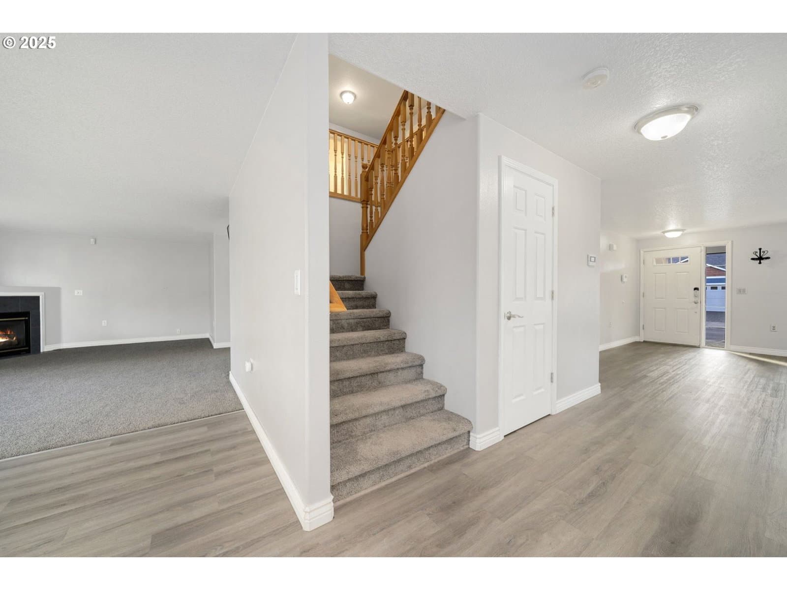 Welcome to a well-cared-for Battle Ground home that delivers practical upgrades where they matter. The 3-bedroom layout features a large bonus room upstairs, set up for media, play, or hobby space, and is supported by two ceiling fans and wiring for a sound system. Durable pet-resistant flooring covers the entire main level and a cozy gas fireplace. The kitchen offers a walk-in pantry, stainless steel appliances that stay, and upgraded brushed nickel hardware throughout the home. Long-term improvements include a BRAND NEW ROOF with a 50 year warranty, full home water filtration, water softener, taller baseboards, updated lighting, and solid-core doors on the main level. Both sinks in the primary bath were recently replaced. New carpet covers the upstairs bedrooms, stairs, and hallway. Washer, dryer, the family room TV with Bose speakers, and the primary suite TV all stay. The backyard patio benefits from a mature shade tree that actually keeps summer afternoons comfortable. Security system already installed. Walking trails run throughout this community along with a well maintained park. Minutes to Lewisville Park, shopping, dining, schools, and other daily amenities.