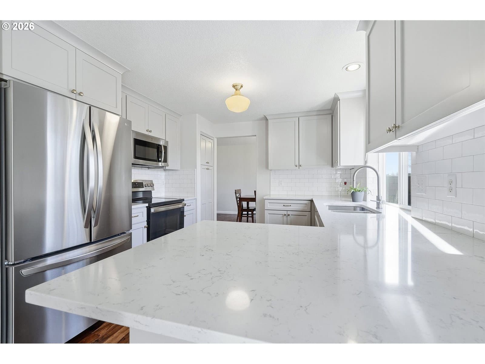 Meticulously cared for traditional style 2-story in the heart of Beaverton. Walk into the main floor adorned with stunning hardwood floors (2021), vaulted ceilings, and two living spaces for flexible family living. Freshly renovated kitchen with no expense spared including new appliances, farmhouse sink and gorgeous quartz countertops. Find 2 spacious bedrooms upstairs as well as a primary suite equipped with a walk-in closet and full bath. Step outside to find a sun soaked deck surrounded by low maintenance backyard with blooming rose bushes, rosemary, and daffodils. Summertime plantings bring raspberries, blueberries, strawberries, and 3 variations of apples in the private courtyard. Access Reedville Trail greenbelt through custom fence dutch door for miles of walking, running, cycling or park access. No systems untouched : New 50yr Roof w/transferrable warranty (2016), Furnace / AC (2021), hot water tank (2017). Homes with this level of care and investment rarely become available, don't miss your chance to call it yours!