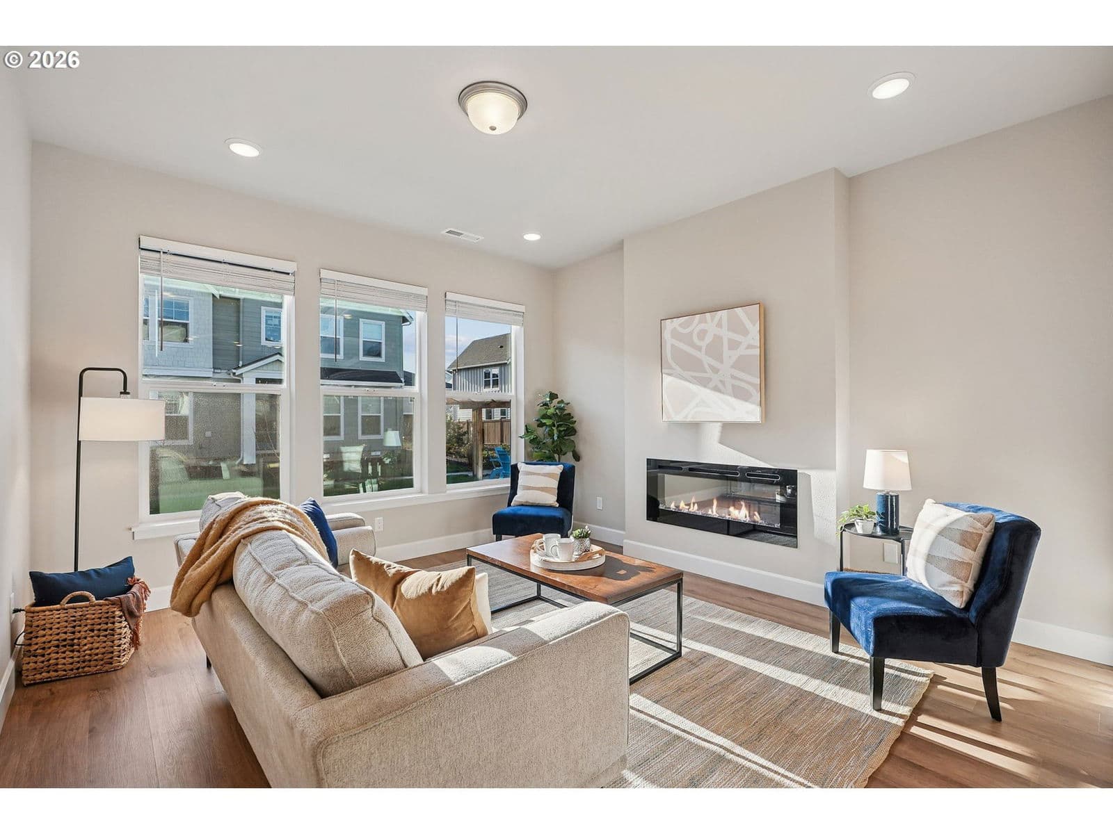 Why wait for new construction when you can have your like-new dream home now? Why pay more for builder basic when you can have a thoroughly updated model for less? This is the one-year old Reed’s Crossing townhome for the savvy buyer! A well-appointed Rivergrove floor plan from David Weekley, this one performs and presents like new! The generous sunlight streaming into the first-floor great room casts itself on the luxury vinyl plank floors, high end cabinets, quarts counters, and stainless steel appliances. Upstairs, luxurious wall to wall carpet creates the coziest of atmospheres and a distinct space for quiet bedrooms. A two car garage and two full parking spots in the driveway give above average parking options right at your door. No detail has been overlooked! Don’t miss the built in efficiency features: pre-wiring for solar panels, pre-wiring for EV charging inside the garage, 97% efficient furnace, and hybrid heat-pump water heater! Plus, air conditioning for hot summer days! This really is the right Reed’s Crossing choice! [Home Energy Score = 10. HES Report at https://rpt.greenbuildingregistry.com/hes/OR10229699]