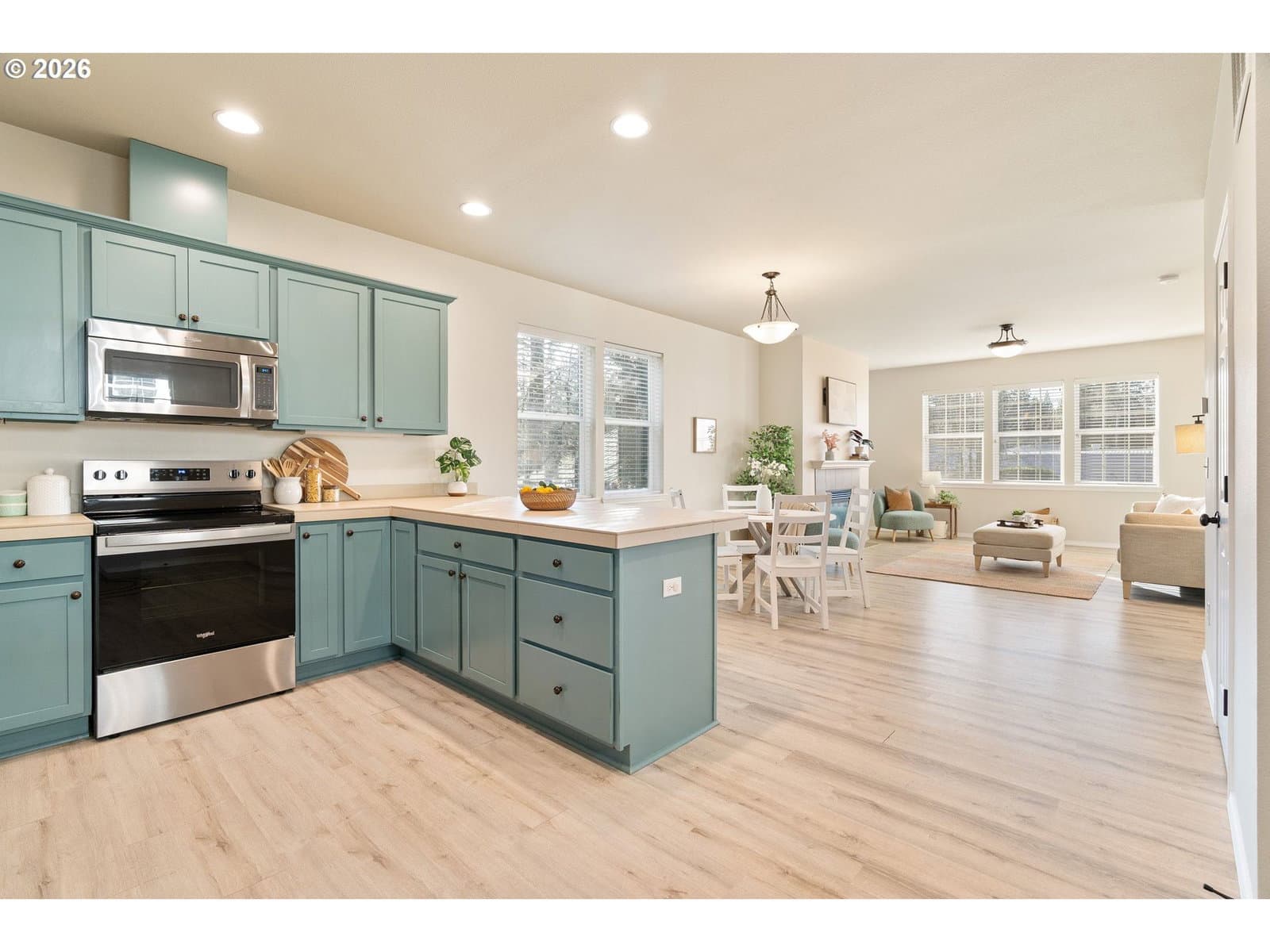 Experience the convenience of living just blocks from the heart of Multnomah Village, where you’ll find a lively mix of food carts, restaurants, bars, coffee shops, the public library, local boutiques, and Portland’s oldest toy store. Quick access to I-5—less than two minutes away—makes commuting simple and efficient. This three-level, three-bedroom, two-and-a-half-bath home offers the ease of low-maintenance living with no HOA and minimal exterior upkeep. While there is no traditional backyard, a green space out front provides a pleasant outdoor setting. The home is also walkable to nearby parks, offering access to trails, open lawn areas, and a variety of outdoor amenities. The main level features luxury vinyl flooring throughout the living room and kitchen, an upgraded smart refrigerator, and a comfortable breakfast nook. Upstairs, the spacious primary suite includes a walk-in closet and double-vanity bath, with two additional bedrooms offering flexibility for a variety of needs. The oversized tandem garage accommodates two vehicles with potential room for a third small car and provides generous storage. In addition to the garage, there is ample off-street parking—an added convenience in this desirable location. Central air conditioning ensures year-round comfort. A rare opportunity to enjoy low-maintenance living in a vibrant Southwest Portland location. [Home Energy Score = 6. HES Report at https://rpt.greenbuildingregistry.com/hes/OR10245127]