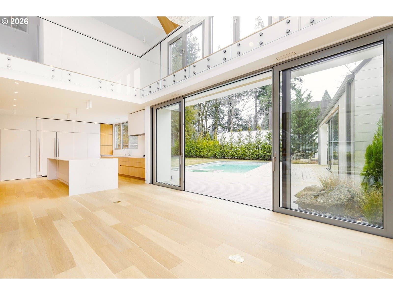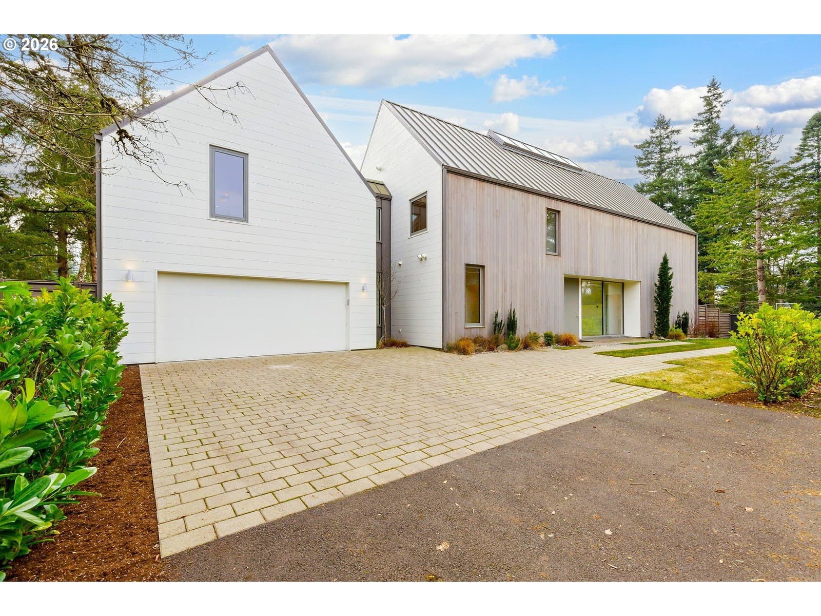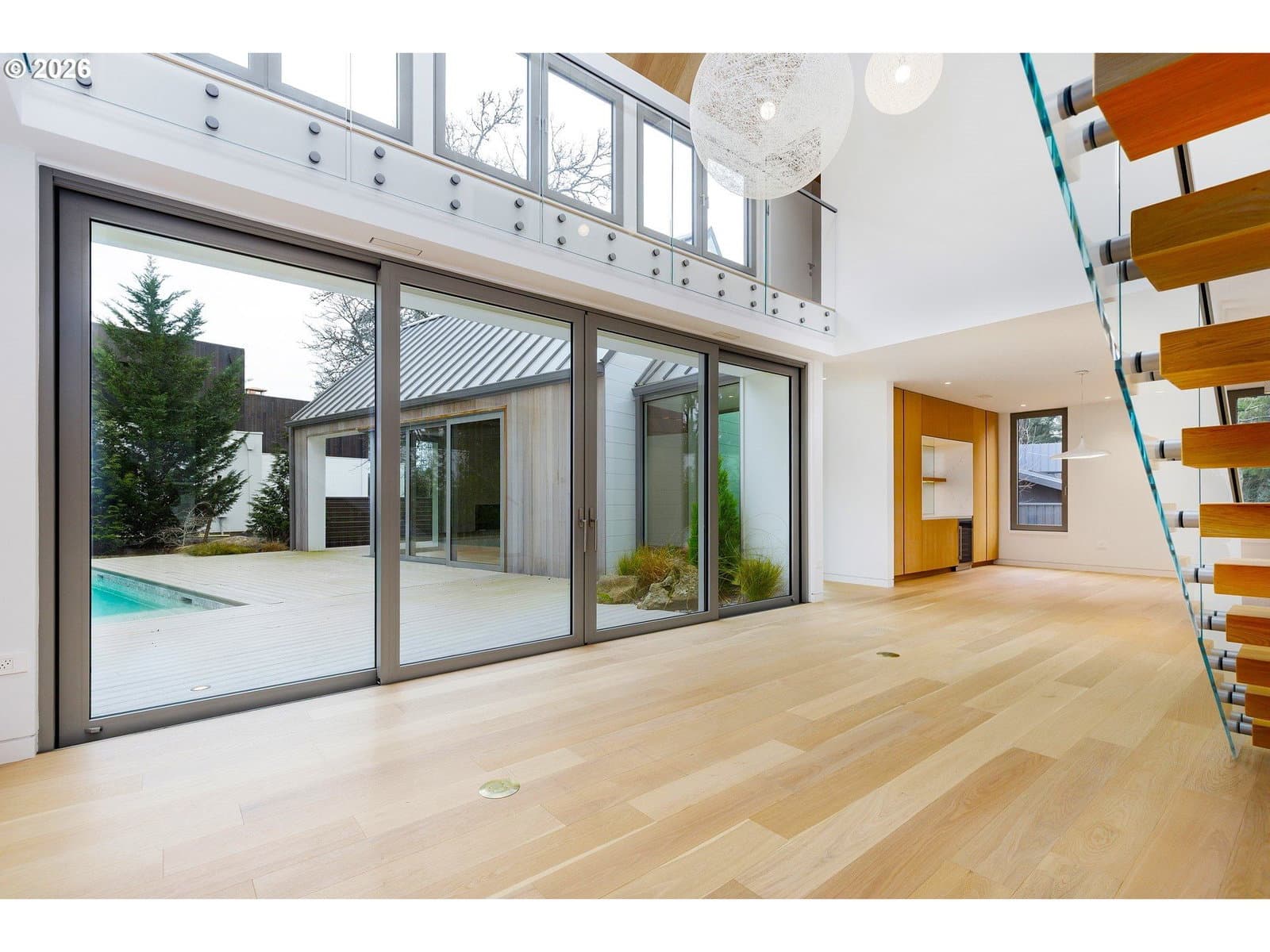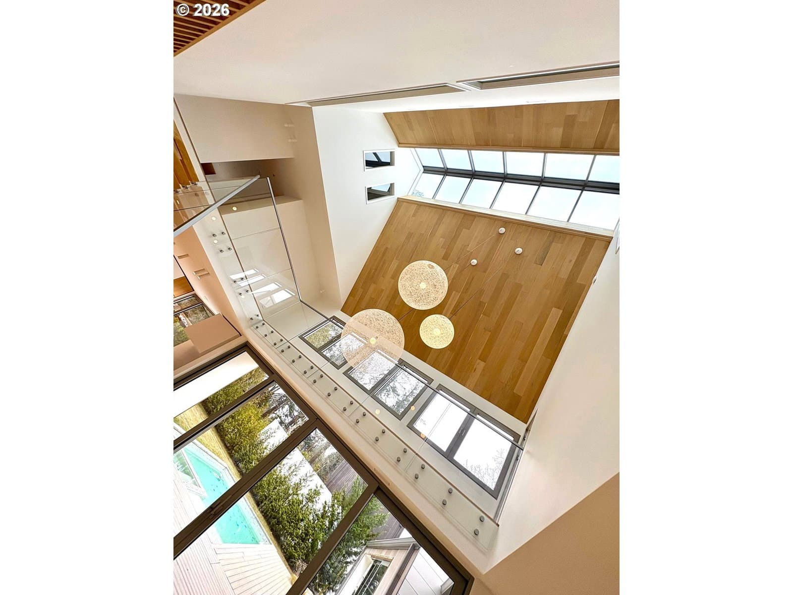 Presenting “Villa M”. Experience the warmth and charm of a Scandinavian Mountain retreat nestled in the heart of Dunthorpe. With towering ceilings, walls of windows, and a breathtakingly bright and open floor plan, this unique custom home is a true showcase of European design and construction. Perfect for year-round entertaining with expansive living areas, cozy fireplace, and plenty of room / ceiling height to accommodate large Christmas tree celebrations and/or your wintertime holiday parties. For summertime gatherings, the 2 separate walls of sliding doors open up the home’s living areas that integrate seamlessly into the backyard space providing a perfect venue for pool parties, family BBQs, and summertime entertaining. Pool+Spa with fountains, lighting, & automatic pool cover. The home’s unique design is the result of an artistic collaborative between Patricia Nossen, founder of Metta Architecture and Sean Grummer of Grummer Architecture. Inspired by a desire to blend a classic Pacific Northwest home vibe with a traditionally Scandinavian archetype, the vision was to create “A living space that is organized around strong connections between interior and exterior spaces. Open across all three levels, with the atrium crowned by a ridge-line skylight that draws natural light deep into the home, illuminating adjacent spaces and the main living level. The layout thoughtfully balances public and private realms: communal areas that are open, airy, and filled with light, while private spaces are enriched with tucked-away nooks that create moments of retreat and discovery.”This two-story home features 5 bedrooms (or 4 upper-level bedrooms / 1 main-level office) and 4 full baths. Primary suite with expansive built-in closet system, walk-in shower/tub, and a secret hideaway loft; perfect for your own private library or cozy listening room. Also features a secondary au pair suite w/vaulted ceilings, built-in oak cabinetry, full bath, and private laundry room.