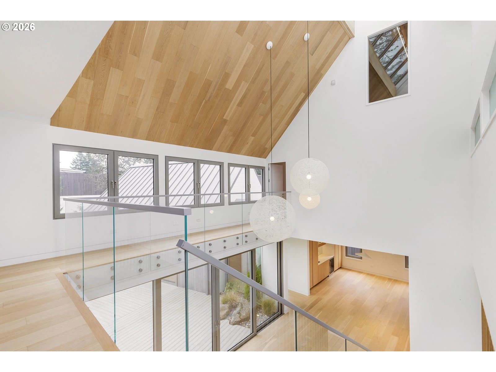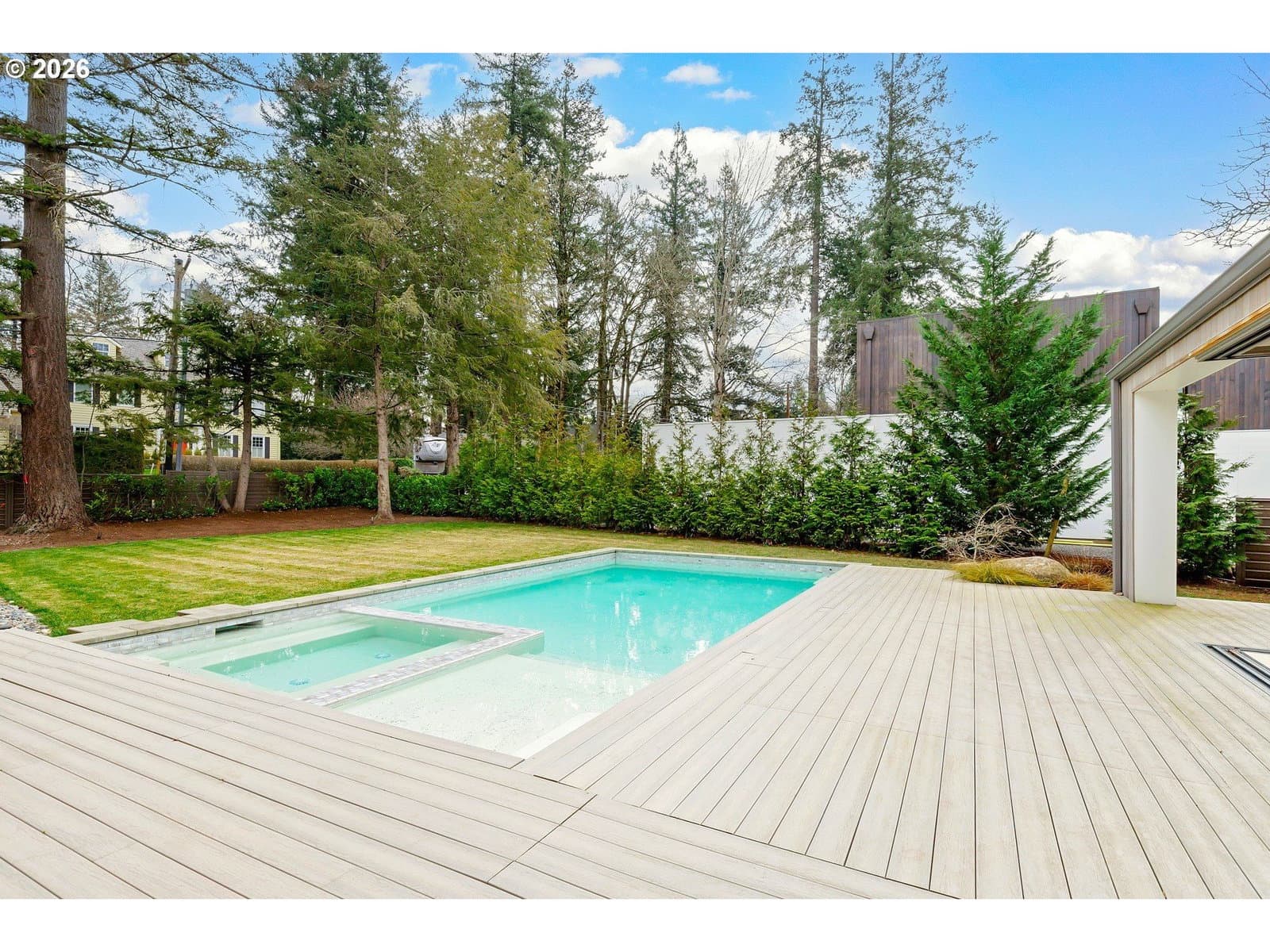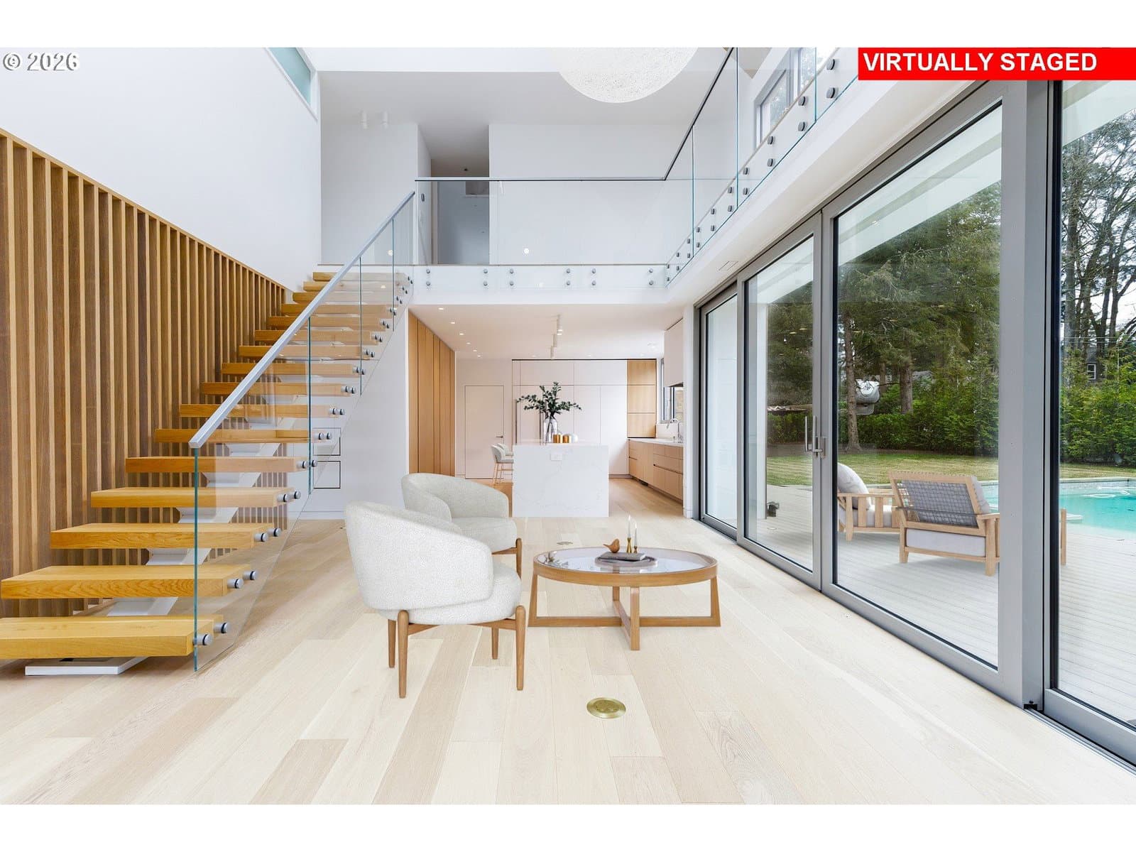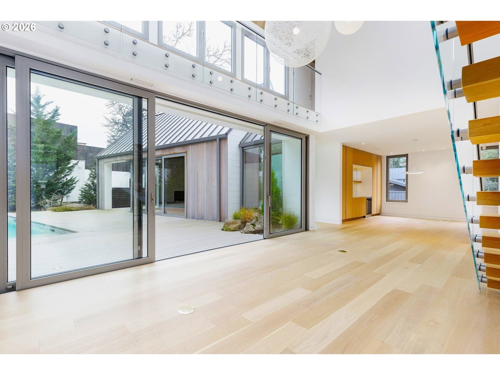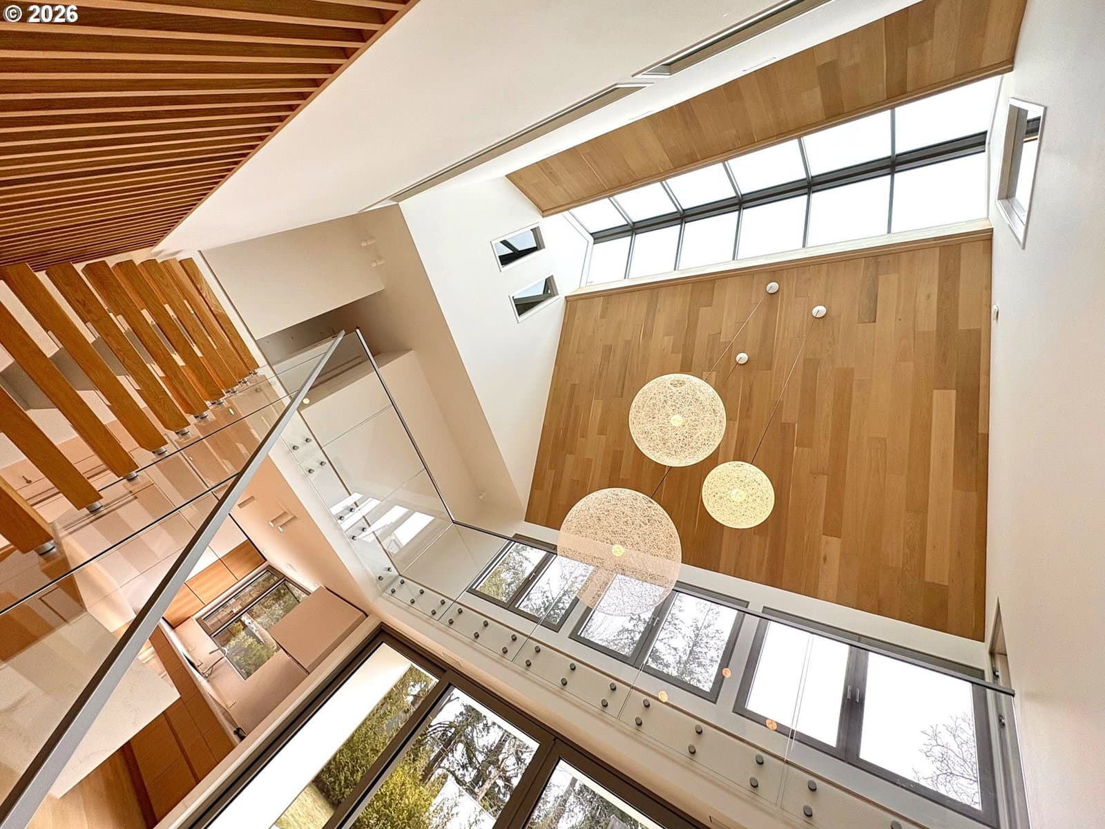 Presenting “Villa M”. Experience the warmth and charm of a Scandinavian Mountain retreat nestled in the heart of Dunthorpe. With towering ceilings, walls of windows, and a breathtakingly bright and open floor plan, this unique custom home is a true showcase of European design and construction. Perfect for year-round entertaining with expansive living areas, cozy fireplace, and plenty of room / ceiling height to accommodate large Christmas tree celebrations and/or your wintertime holiday parties. For summertime gatherings, the 2 separate walls of sliding doors open up the home’s living areas that integrate seamlessly into the backyard space providing a perfect venue for pool parties, family BBQs, and summertime entertaining. Pool+Spa with fountains, lighting, & automatic pool cover. The home’s unique design is the result of an artistic collaborative between Patricia Nossen, founder of Metta Architecture and Sean Grummer of Grummer Architecture. Inspired by a desire to blend a classic Pacific Northwest home vibe with a traditionally Scandinavian archetype, the vision was to create “A living space that is organized around strong connections between interior and exterior spaces. Open across all three levels, with the atrium crowned by a ridge-line skylight that draws natural light deep into the home, illuminating adjacent spaces and the main living level. The layout thoughtfully balances public and private realms: communal areas that are open, airy, and filled with light, while private spaces are enriched with tucked-away nooks that create moments of retreat and discovery.”This two-story home features 5 bedrooms (or 4 upper-level bedrooms / 1 main-level office) and 4 full baths. Primary suite with expansive built-in closet system, walk-in shower/tub, and a secret hideaway loft; perfect for your own private library or cozy listening room. Also features a secondary au pair suite w/vaulted ceilings, built-in oak cabinetry, full bath, and private laundry room.