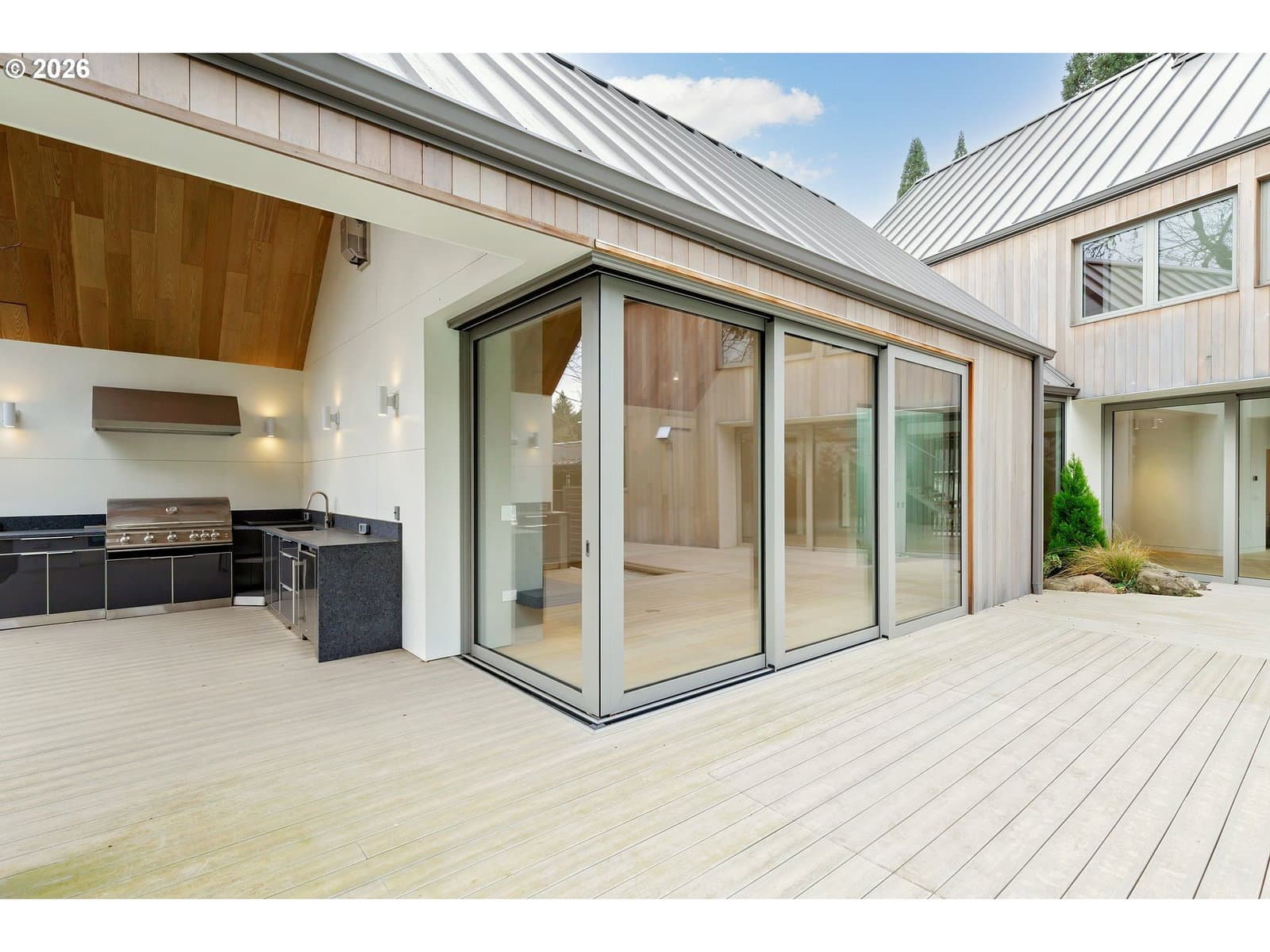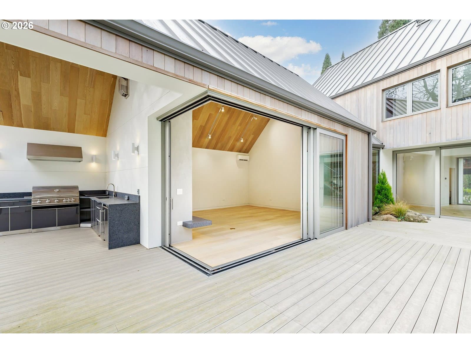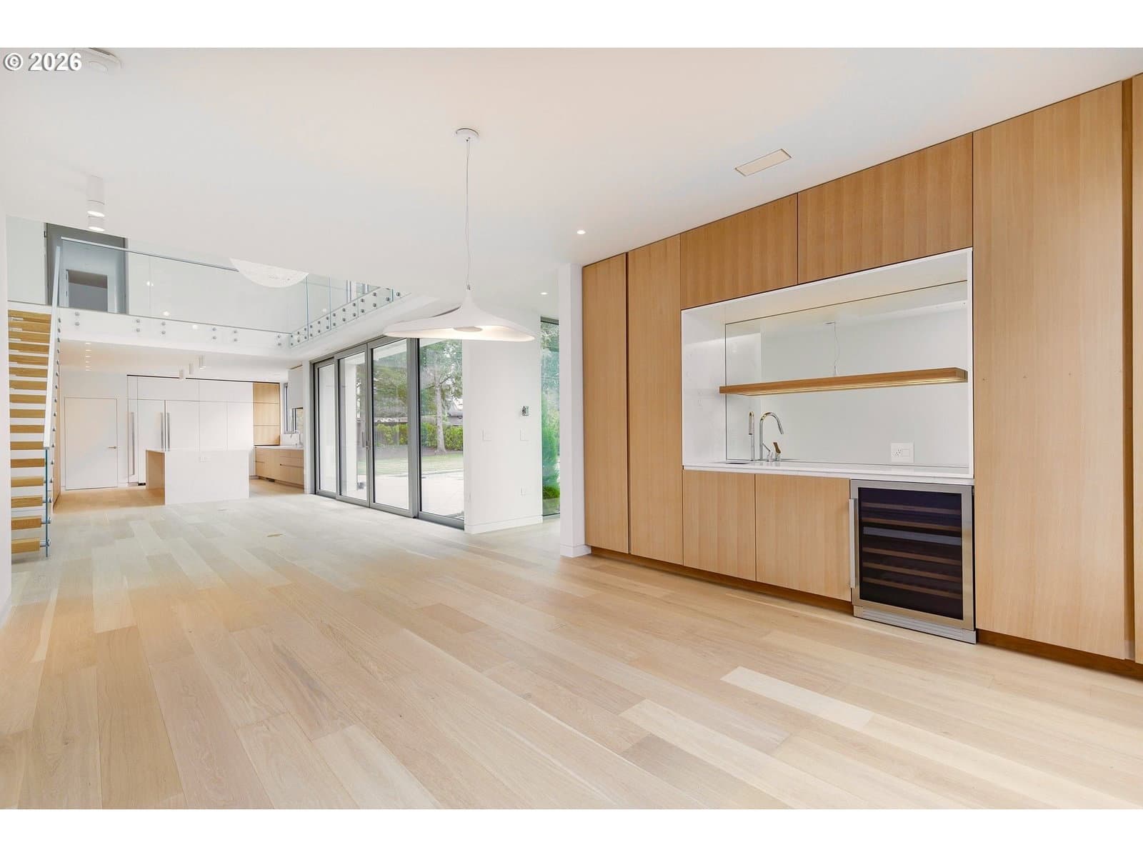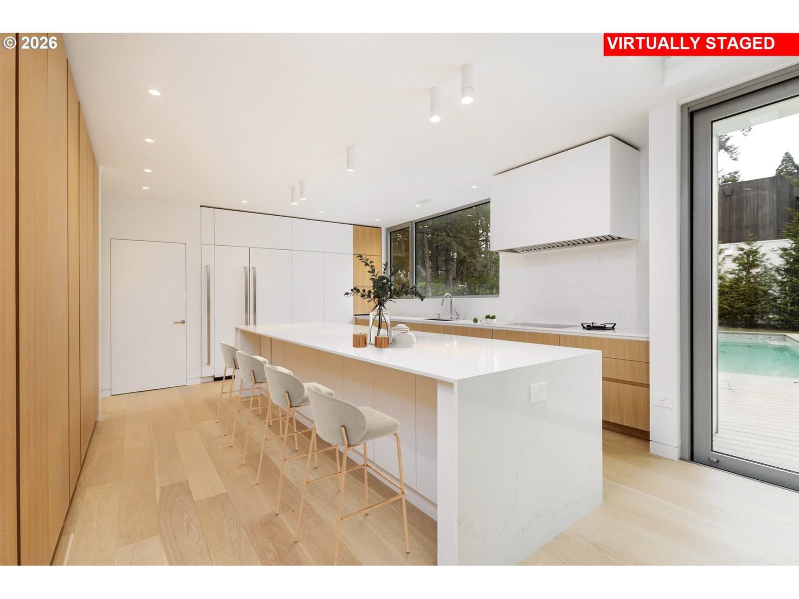 Presenting “Villa M”. Experience the warmth and charm of a Scandinavian Mountain retreat nestled in the heart of Dunthorpe. With towering ceilings, walls of windows, and a breathtakingly bright and open floor plan, this unique custom home is a true showcase of European design and construction. Perfect for year-round entertaining with expansive living areas, cozy fireplace, and plenty of room / ceiling height to accommodate large Christmas tree celebrations and/or your wintertime holiday parties. For summertime gatherings, the 2 separate walls of sliding doors open up the home’s living areas that integrate seamlessly into the backyard space providing a perfect venue for pool parties, family BBQs, and summertime entertaining. Pool+Spa with fountains, lighting, & automatic pool cover. The home’s unique design is the result of an artistic collaborative between Patricia Nossen, founder of Metta Architecture and Sean Grummer of Grummer Architecture. Inspired by a desire to blend a classic Pacific Northwest home vibe with a traditionally Scandinavian archetype, the vision was to create “A living space that is organized around strong connections between interior and exterior spaces. Open across all three levels, with the atrium crowned by a ridge-line skylight that draws natural light deep into the home, illuminating adjacent spaces and the main living level. The layout thoughtfully balances public and private realms: communal areas that are open, airy, and filled with light, while private spaces are enriched with tucked-away nooks that create moments of retreat and discovery.”This two-story home features 5 bedrooms (or 4 upper-level bedrooms / 1 main-level office) and 4 full baths. Primary suite with expansive built-in closet system, walk-in shower/tub, and a secret hideaway loft; perfect for your own private library or cozy listening room. Also features a secondary au pair suite w/vaulted ceilings, built-in oak cabinetry, full bath, and private laundry room.