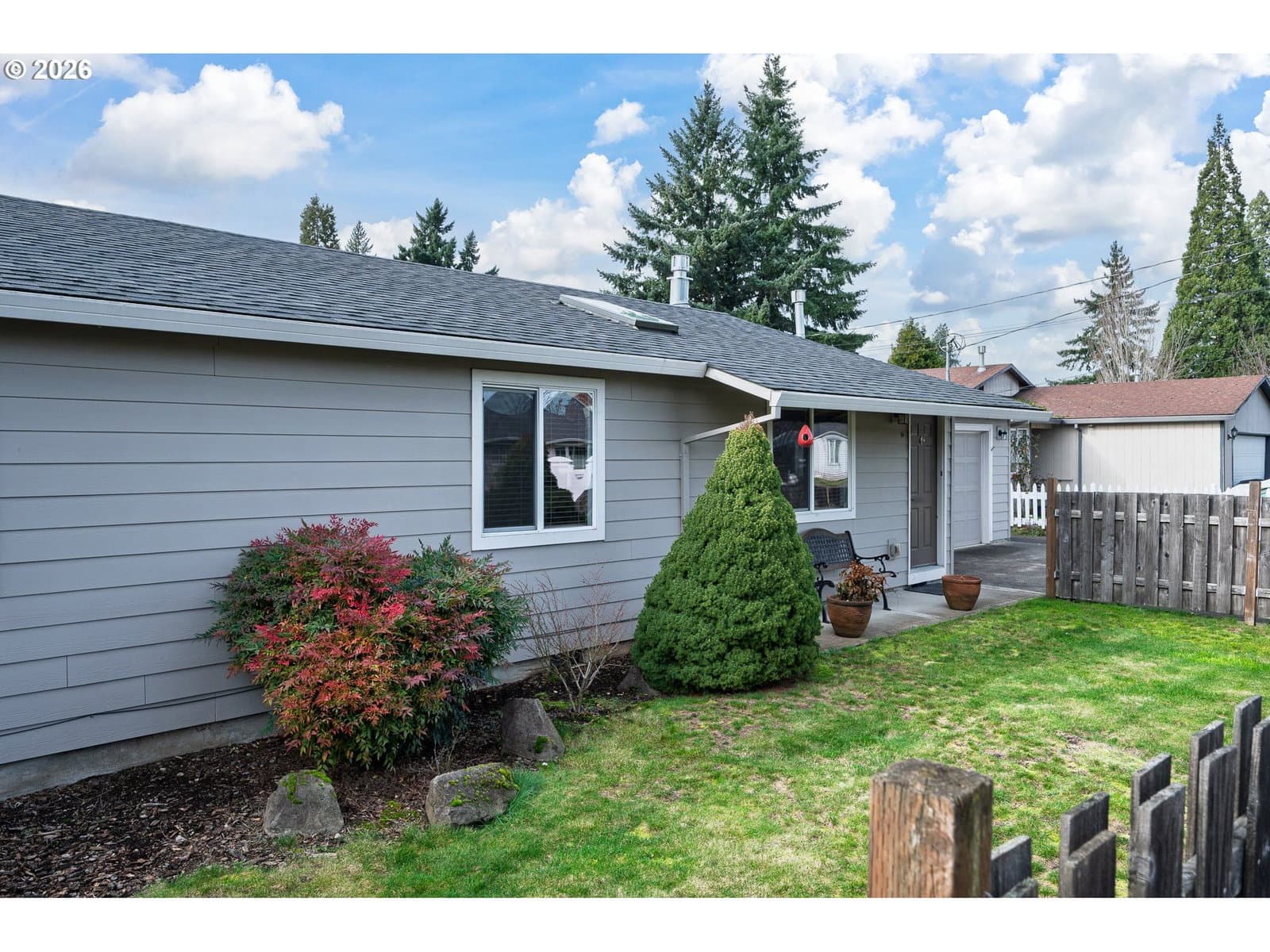 Enjoy this clean well maintained ready to move in single level home in the quiet low traffic neighborhood nearby many amenities. Easy commuting right off HW99. Close to Bunnell Park, Max stop, Fred Meyer, coffee shops, and Oakgrove Center. Features beautiful laminate floors in a spacious kitchen and dining area and front door entry. Brand new wall to wall premium carpet with water barrier padding in living room and all 3 bedrooms. Master bedroom features walk-in closet, sliding glass door to private backyard patio, and second full bathroom. Two additional large bedrooms with closets. Updated vinyl windows and shades throughout. Living room features skylight and newer gas fireplace as additional heat source as well as back up heat during a power outage. Home has gas HVAC system with newer AC unit and gas water heater. Kitchen and dining area with access to sliding glass door out to backyard patio. Finished 2 car garage with premium storage shelves and garage door opener out to a flat double driveway. Fenced backyard with large storage shed with siding and roof that matches the house. Fenced front yard with landscaping. Located in unincorporated Clackamas County with lower property taxes but still close to the city center. The seller is a licensed broker in Oregon. Property has an assumable 2.25% VA Loan. Home Warranty Included for peace of mind.