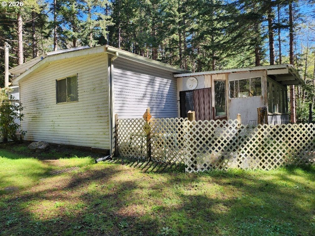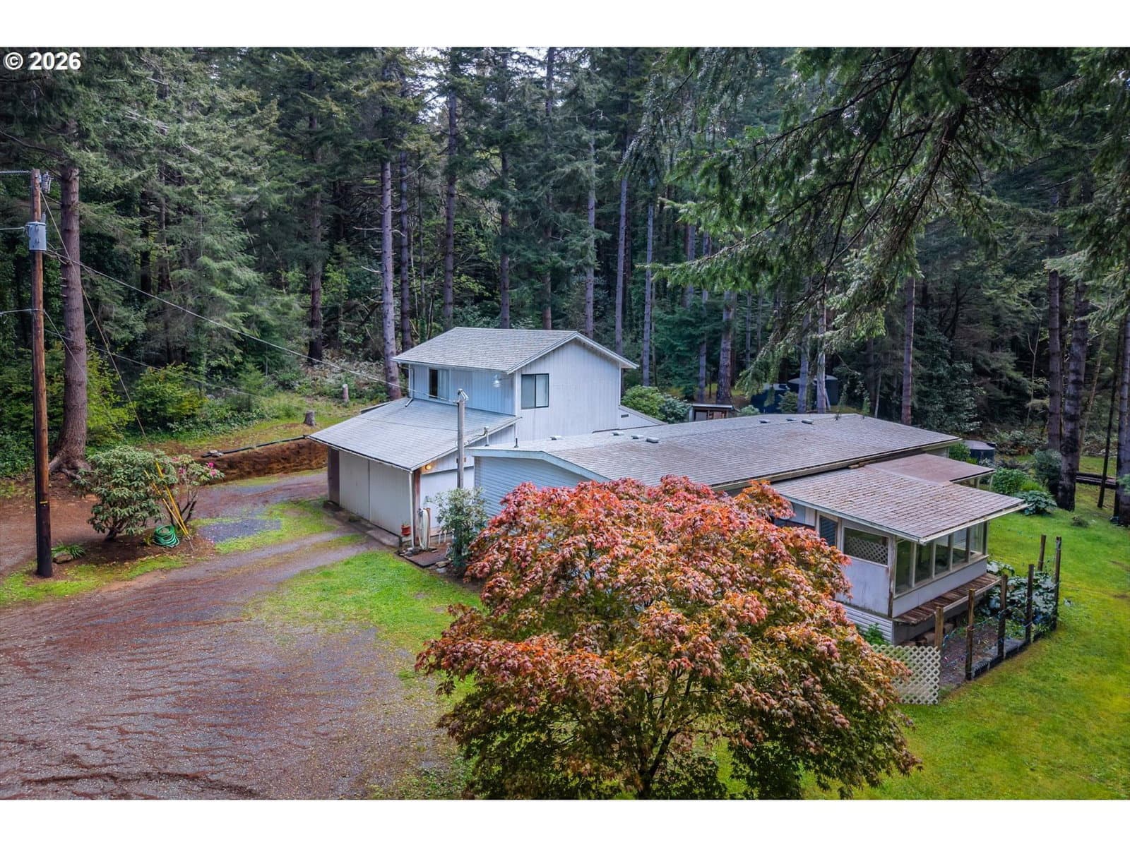 Tucked away on a private road in a charming coastal Oregon town, this beautifully manicured 1-acre property offers the perfect blend of privacy, functionality, and thoughtful upgrades. The 1976 manufactured home has been tastefully remodeled, featuring elegant quartz countertops, custom-crafted maple cabinetry,new heating system and a new electrical panel for peace of mind. The property is well-equipped for both everyday living and hobbies, with a spacious shop offering 110 power, plus a two-car garage complete with a bonus bedroom above—ideal for guests, a home office, or additional living space. Enjoy year-round relaxation in the enclosed patio just off the living room, creating a cozy indoor-outdoor retreat. Additional highlights include a convenient utility room off the garage, four holding tanks, and a fenced backyard area with a firepit—perfect for gatherings under the Coastal sky. This unique property delivers space, privacy, and versatility in a serene setting.