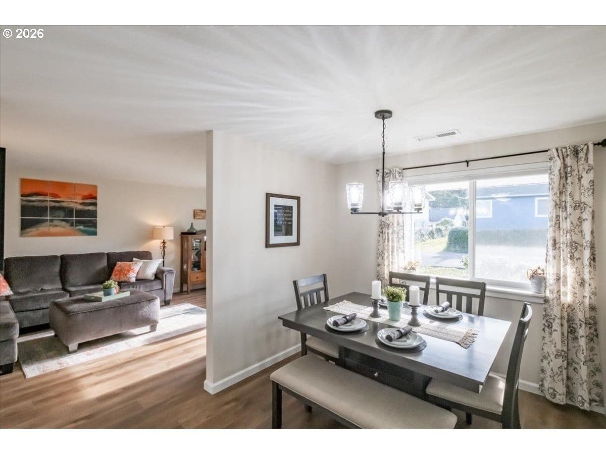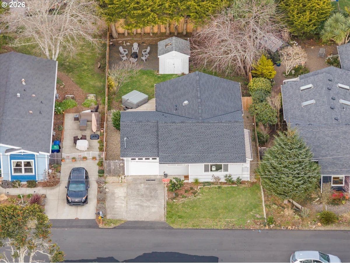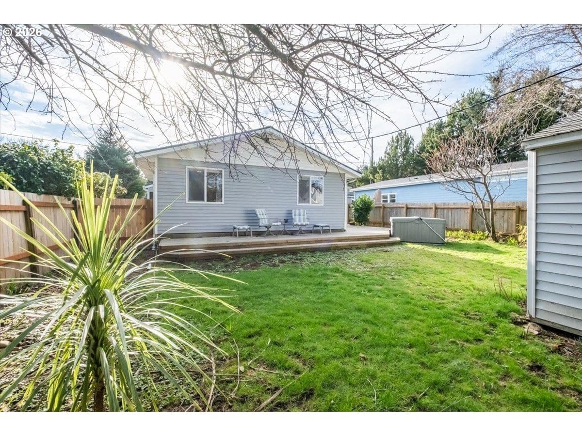 Completely remodeled three-bedroom beach house—welcome to your dream retreat on the stunning Oregon Coast. Ideal as a primary residence, second home, or long-term rental, this beautifully updated single-level home is located just blocks from the sandy shores and offers the perfect blend of modern comfort and coastal charm.Step inside to a bright, open-concept living space featuring a brand-new kitchen with sleek stainless-steel appliances, a profile microwave, elegant quartz countertops, and contemporary lighting creating a warm and inviting atmosphere. The stylishly updated bathroom showcases a new tub, designer tile surround, and modern vanity. Stay comfortable year-round with a newer forced-air electric furnace. Outside, relax and entertain in the fully fenced backyard with an expansive deck and brand-new hot tub. A dedicated fire-pit area offers the perfect setting to gather with friends and family while listening to the ocean roar. Additional features include a storage shed ideal for hobbies or beach gear, and an attached garage with laundry hookups, fresh paint, and new flooring. Walking distance to beach access! Opportunity to enjoy modern coastal living at an attractive price, your beach lifestyle awaits.