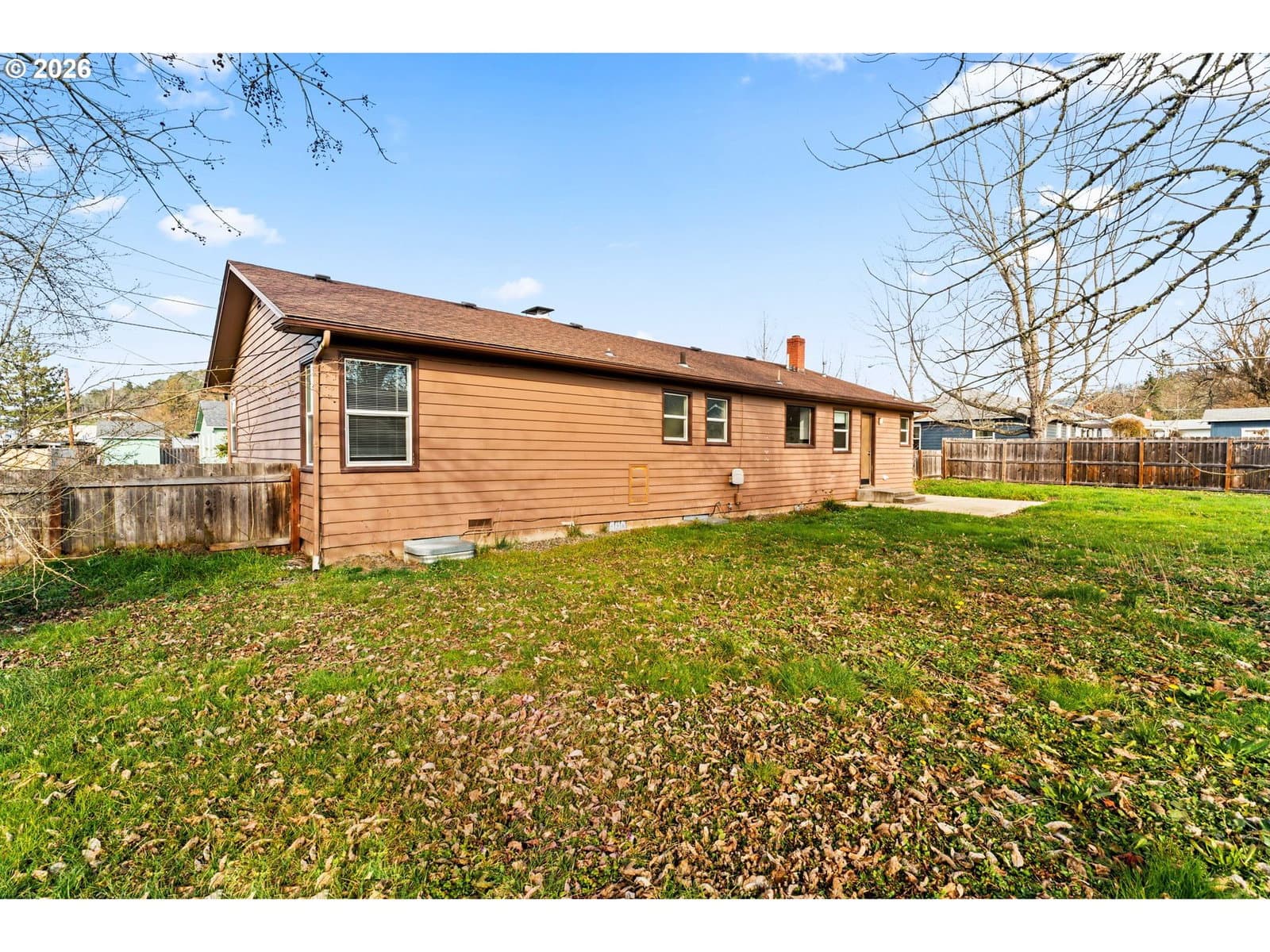 Discover this well-situated 3-bedroom, 2-bath home located in the heart of Roseburg, minutes from the airport and local amenities. The practical layout includes a walk-in shower in one bathroom and a tub/shower combination in the other. The fireplace adds a cozy touch to the family room. Outside, enjoy a back porch and fenced yard that provide privacy and usable outdoor space. A great location paired with a comfortable, functional floor plan makes this home a solid choice for everyday living.