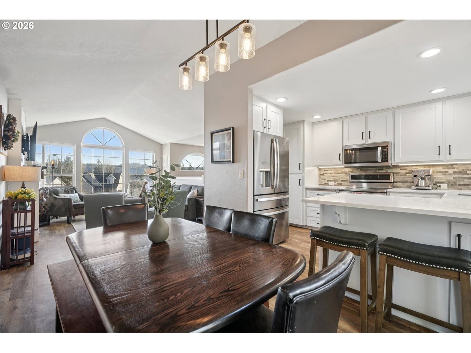 A must-see in person, this beautiful 4-bedroom, 3-bath home offers ideal flexibility for multi-generational living, set on an expansive fenced lot with breathtaking Mt. Hood sunrises and sunsets. And that’s just the beginning. Over the years, this home has seen many thoughtful updates and improvements, including new insulated garage doors, a stainless steel GE Profile four-door refrigerator, Ring doorbell with solar charger in 2025, along with a Ring floodlight camera added in 2024. The main suite was refreshed with a spa inspired shower in 2023, followed by a new cedar gazebo roof in 2022. In 2021, major upgrades included a Bryant 96% efficiency gas furnace, a new AC unit, a Nest smart thermostat, Gutter Helmet, insulated Jeld-Wen French doors with interior blinds, quartz countertops in the kitchen, and a custom primary closet by Portland Closet Co. Earlier updates in 2020 featured refaced kitchen cabinets, stainless steel KitchenAid induction range and dishwasher, motorized living room blinds, composite deck and railing, paver patio with retaining wall and fire pit, expanded in-ground sprinklers and drip irrigation. Additional improvements include a Sunsetter motorized awning with wind sensor in 2019, a new roof in 2017, LVP flooring, solid red oak stair treads, and the original in-ground sprinkler system installed in 2016.WOW so much to list and so much to miss if you don't get here soon!