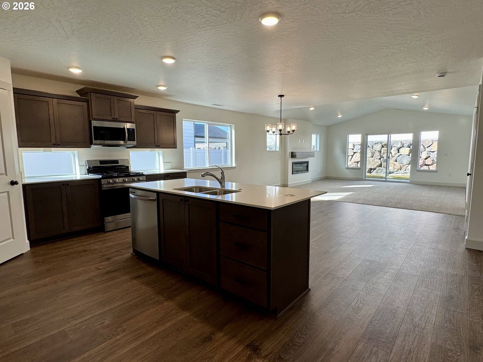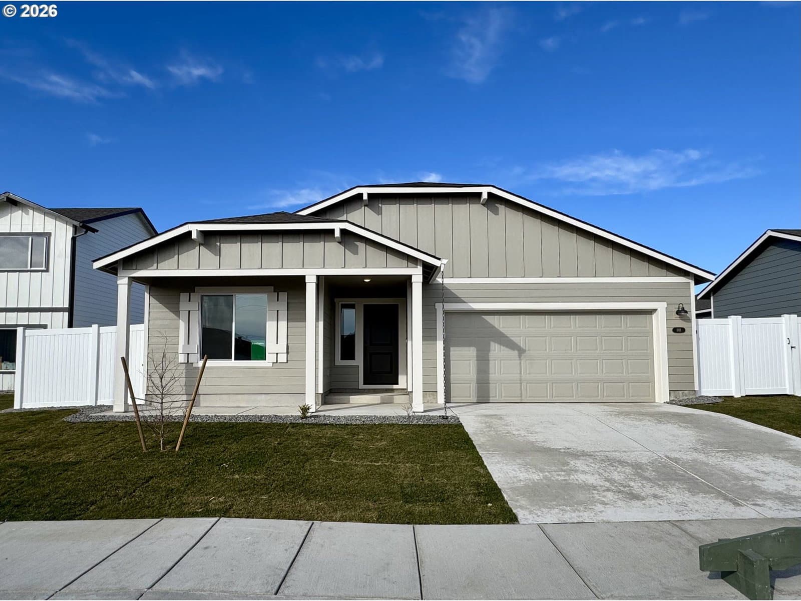 LOT:UM16 - Under construction - Estimated completion date February 2026 - This exquisite brand new 1892 SQFT one level home offers the perfect blend of contemporary design and comfortable living. 3 bedroom 2 baths with luxurious primary suite with double sinks, shower, freestanding soaking tub, and large walk-in closet. Deluxe chef's kitchen with quartz counters, walk-in corner pantry, island, and stainless steel appliances including gas range and dishwasher. The Charity plan in the new Upland Meadows neighborhood in Hermiston OR. Built by award winning builder MonteVista Homes. Open concept living, vaulted ceilings, great room, 95% high efficiency forced air heating, air conditioning, laundry/mud room, electric fireplace, RV parking, and covered patio. Upland Meadows is a new home community by MonteVista Homes. On site model home for sales information. Builder warranty direct with MonteVista Homes warranty department.