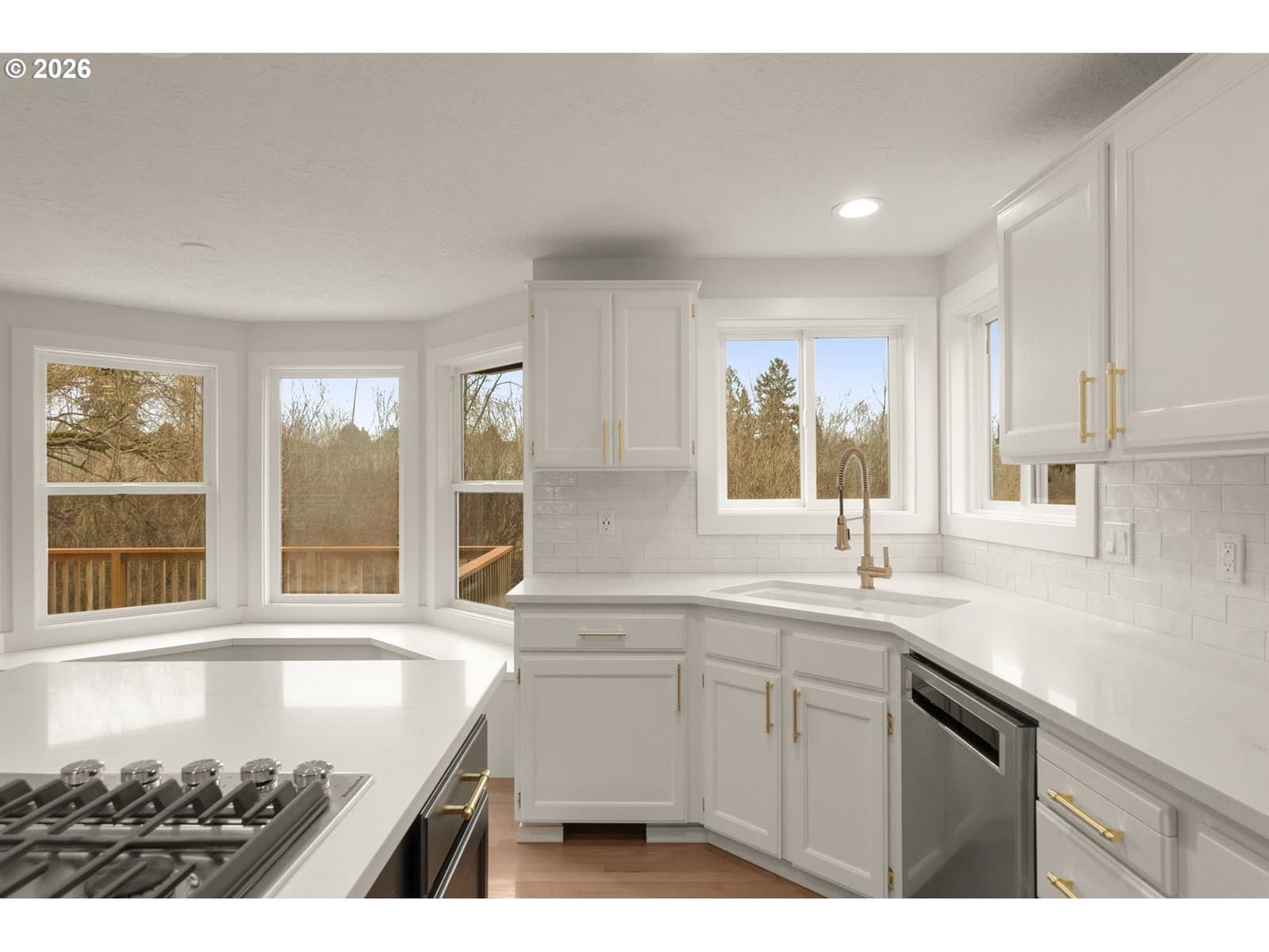 Beautifully updated Bronson Creek retreat. Sought after floorplan with an abundance of natural light. With a remodeled kitchen and primary bathroom this thoughtfully updated and truly move-in ready home blends timeless style with meaningful modern improvements. The recently updated kitchen is a standout, featuring quartz countertops, modern finishes, stainless steel appliances and a layout designed for both entertaining and everyday living. Upstairs, the spacious primary suite offers a peaceful retreat, complete with an updated spa like bathroom showcasing quartz countertops, jetted tub and stylish finishes. Three additional bedrooms provide flexibility for guests, home office space, or hobbies. Major system upgrades add long-term confidence, including a newer furnace and air conditioning system installed in 2023. The architectural composition 50-year roof is approximately 10 years old. In 2023, crawl space improvements included a vapor barrier replacement and ventilation upgrades for enhanced efficiency and durability. Step outside to enjoy the brand-new rear deck completed in 2025—perfect for summer evenings, entertaining, or simply relaxing in your private outdoor oasis that overlooks Bronson Creek and all the wildlife. Located near miles of walking trails & parks. With quality updates throughout and the big-ticket items already addressed, this home delivers comfort, functionality, and lasting value.