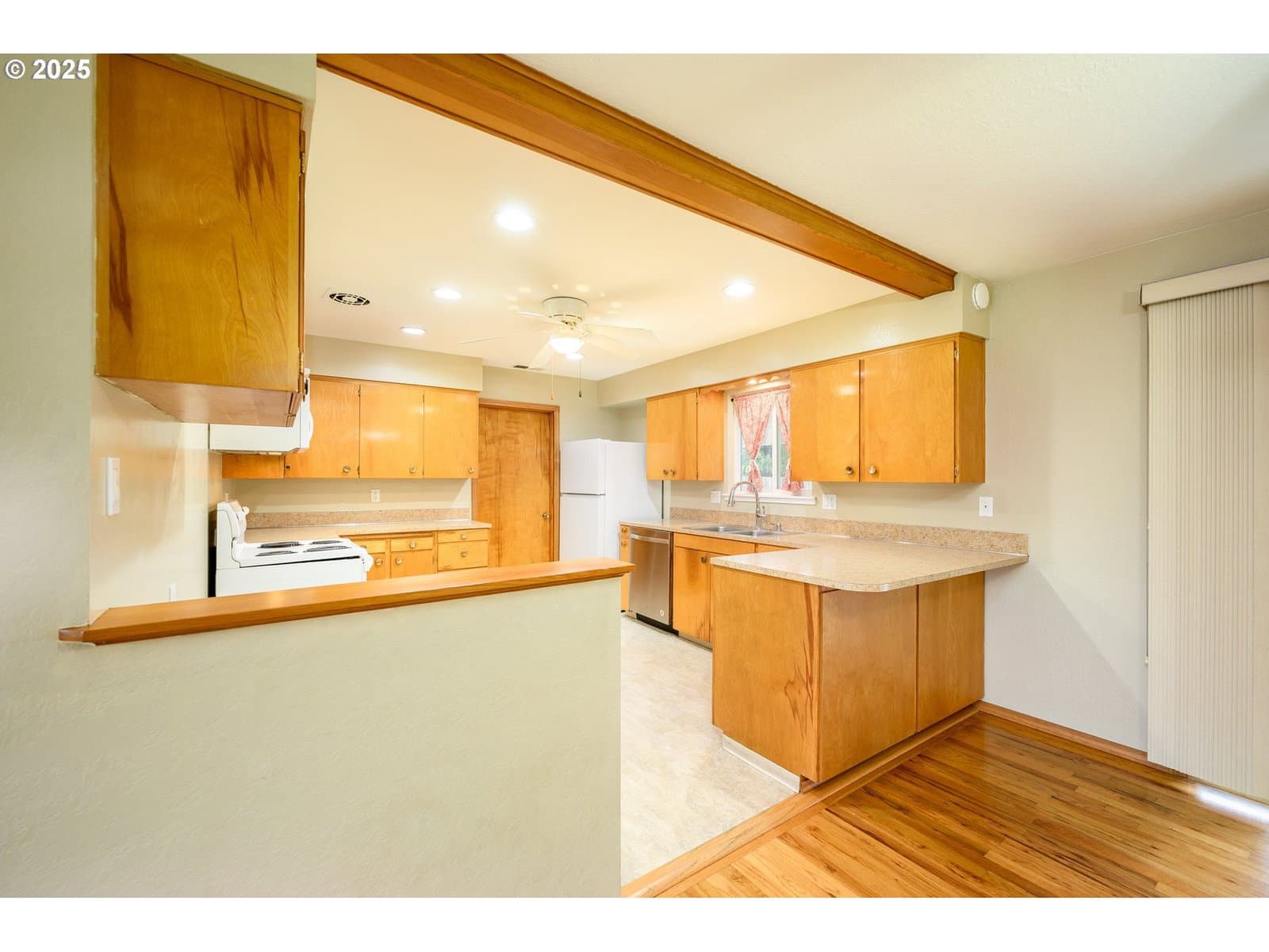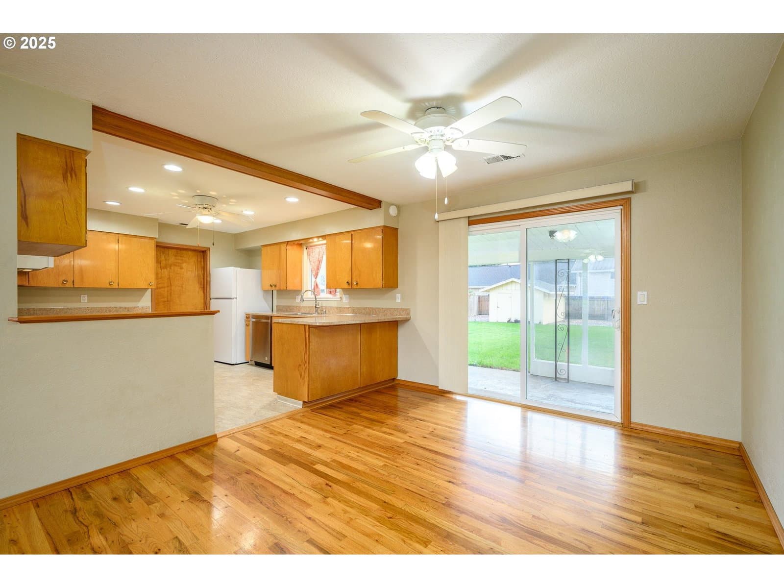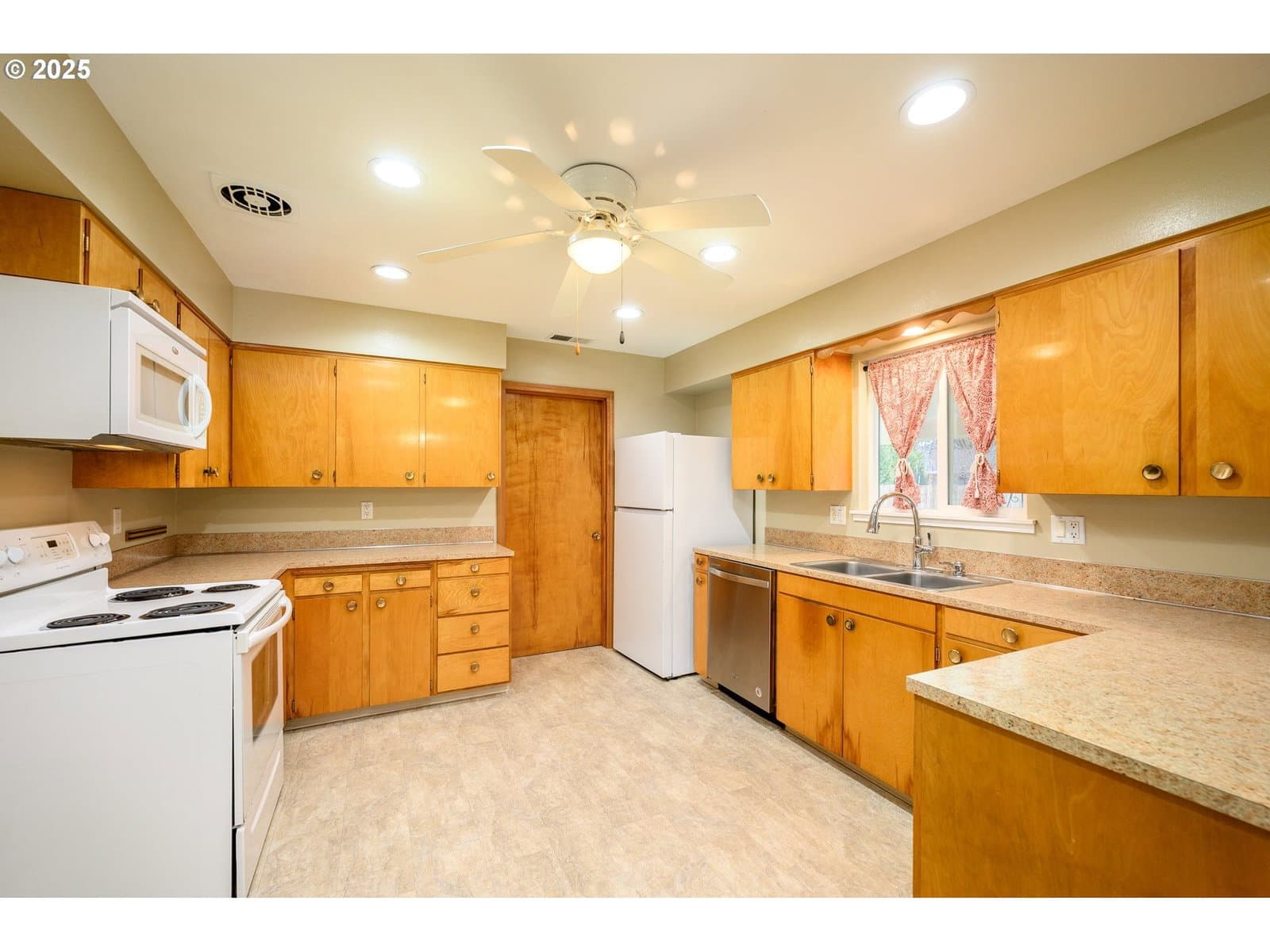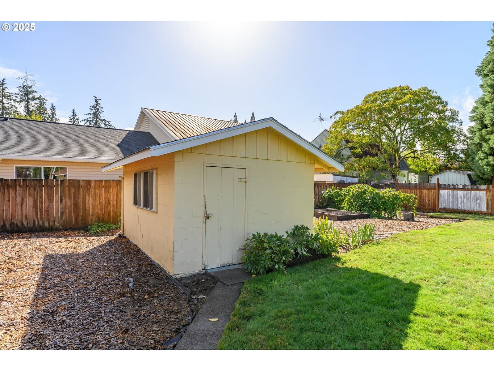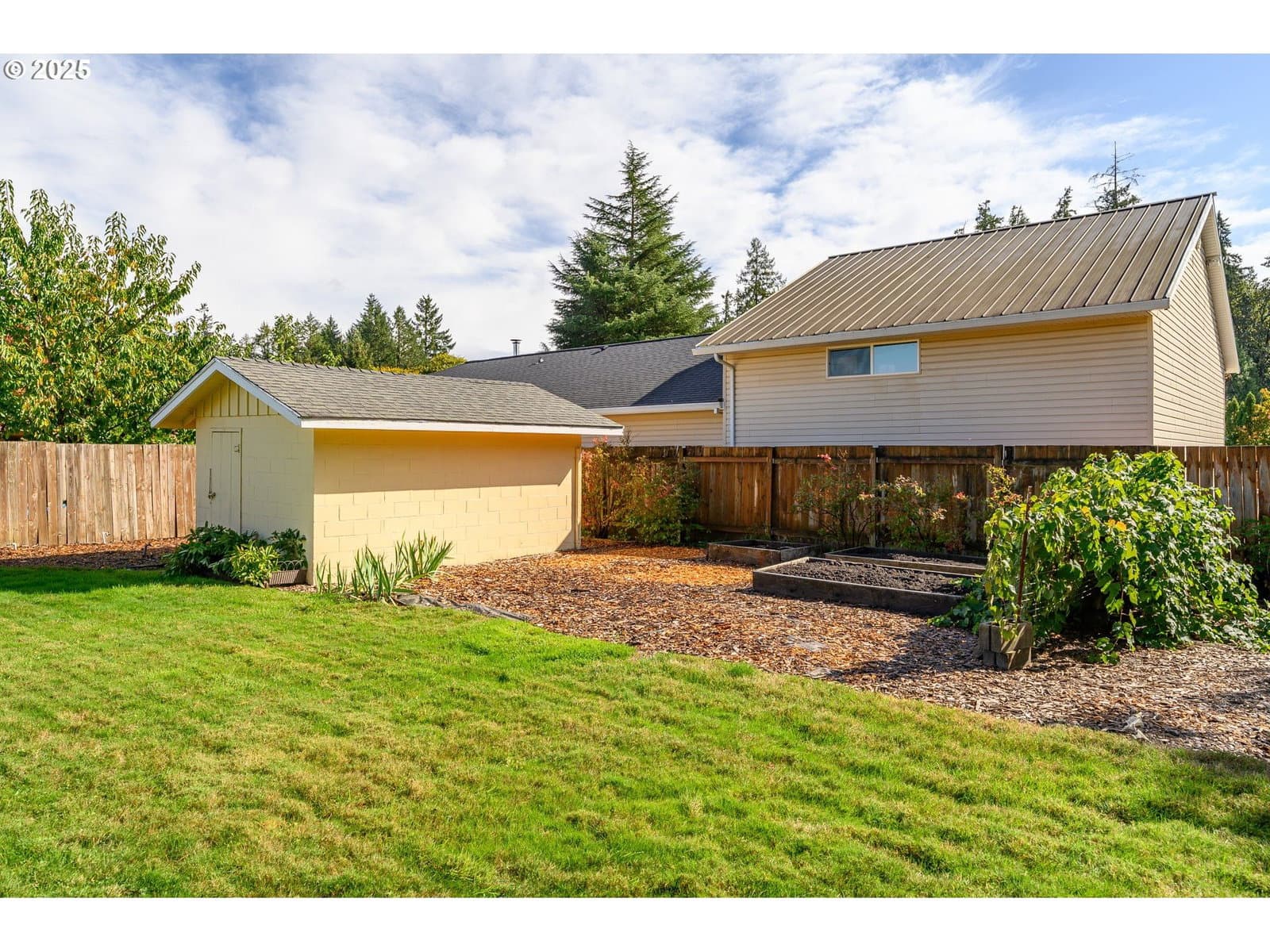 Enjoy easy living in this beautifully maintained single-level home in southwest McMinnville, ideally located close to town conveniences. Featuring 2 bedrooms and 1.5 remodeled baths, this home offers thoughtful updates throughout—refinished wood floors, new windows, laminate counters, and a new garage door. Smart home systems, including thermostat and sprinkler controls, add modern efficiency. Outdoor living shines with a covered patio, raised garden beds, and a variety of plantings—boysenberries, blueberries, grapes, and kiwi—all on nearly a ¼-acre lot. A handy tool shed provides extra storage for your gardening and hobby needs.