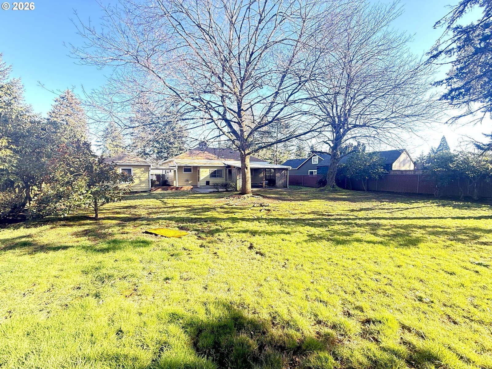 Light and bright bungalow on .25 acre lot. (Zoned R2.5! Zoning allows a variety of uses; listing agent can provide details.) Home features white oak hardwood floors, built-ins, remodeled kitchen with new gas range and dishwasher, remodeled bathroom with new tile shower and vanity. Newer roof, high-efficiency gas furnace and water heater. Single-car attached garage with electricity and breezeway, and a backyard patio with a covered area. You basically have your own park with this very large backyard both with trees, and sunny areas with raised beds. The neighbor across the street has lived there for 40 years. Great neighborhood vibe.