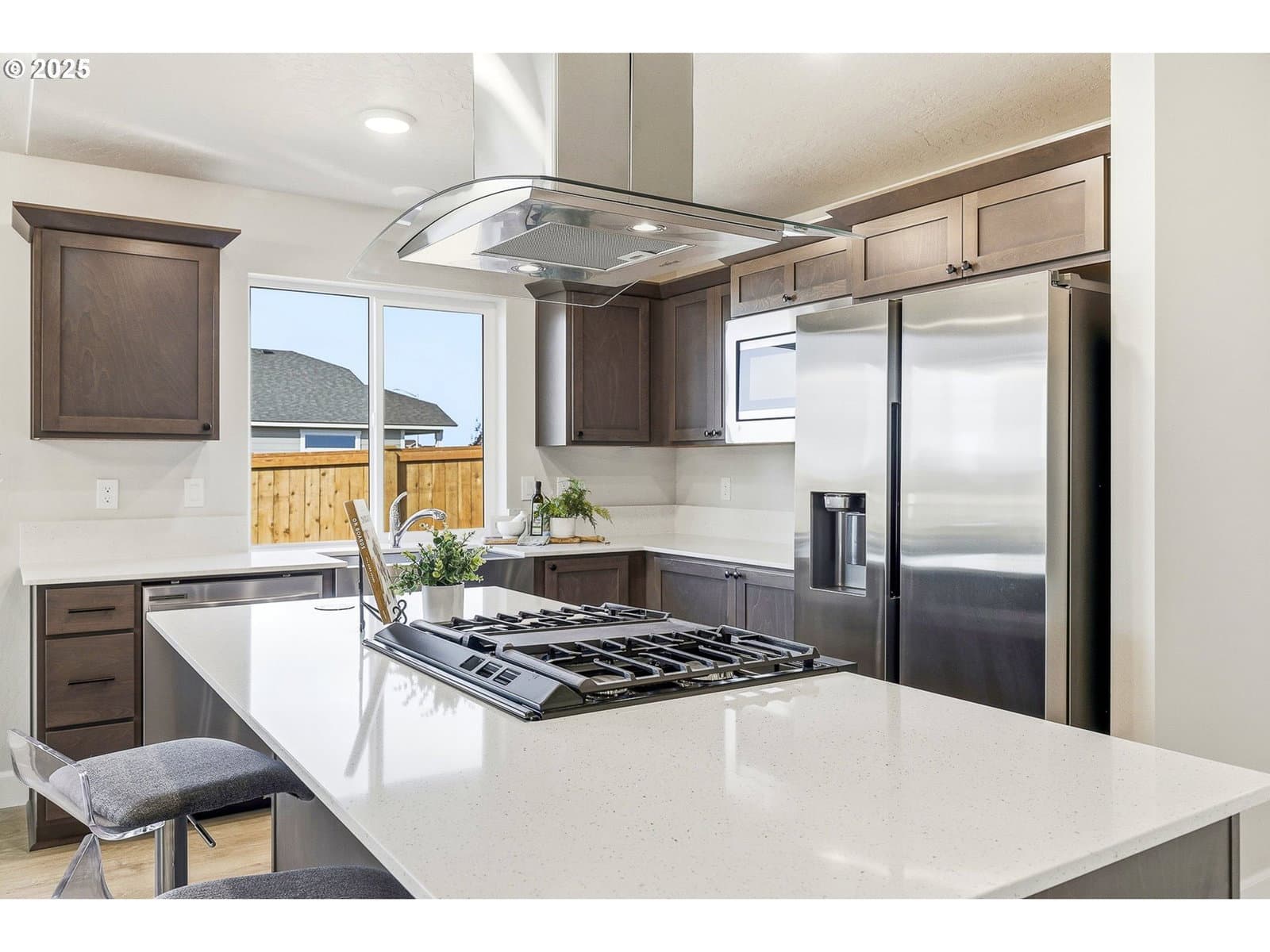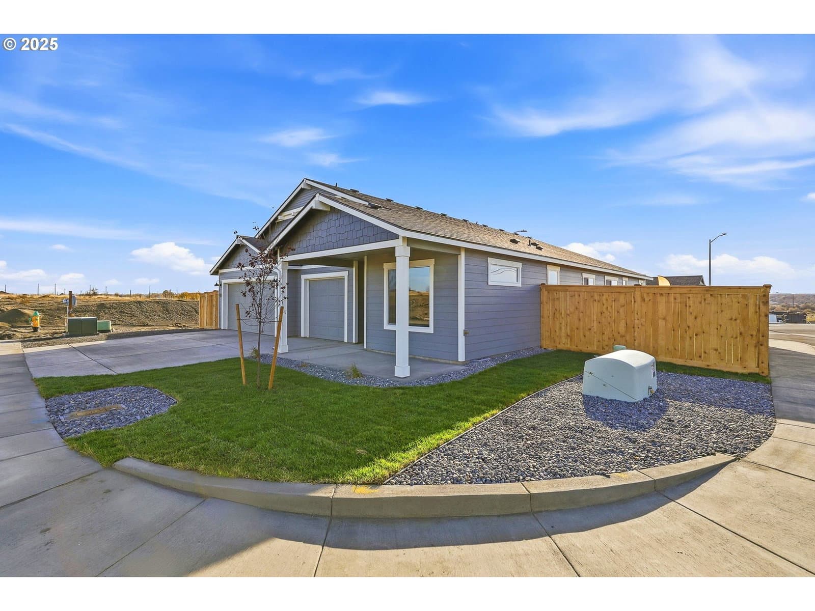 LOT:UM01 - MOVE-IN READY!!! This exquisite brand new 1906 SQFT one level home offers the perfect blend of contemporary design and comfortable living situated on a spacious corner lot. 4 bedroom 2 bath with luxurious primary suite with double sinks, shower, freestanding soaking tub, and spacious walk-in closet. Deluxe chef's kitchen with quartz counters, large pantry, island, farm sink, and stainless steel appliances including built-in gas range and dishwasher. The Hope plan in the new Upland Meadows neighborhood in Hermiston OR. Built by award winning builder MonteVista Homes. Open concept living, vaulted ceilings, great room, 95% high efficiency gas forced air heating, air conditioning, dedicated laundry room, whole house blinds, washer/dryer, electric fireplace with shiplap accents, 3 car garage, and covered patio. Upland Meadows is a new home community by MonteVista Homes. On site model home for sales information. Builder warranty direct with MonteVista Homes warranty department.