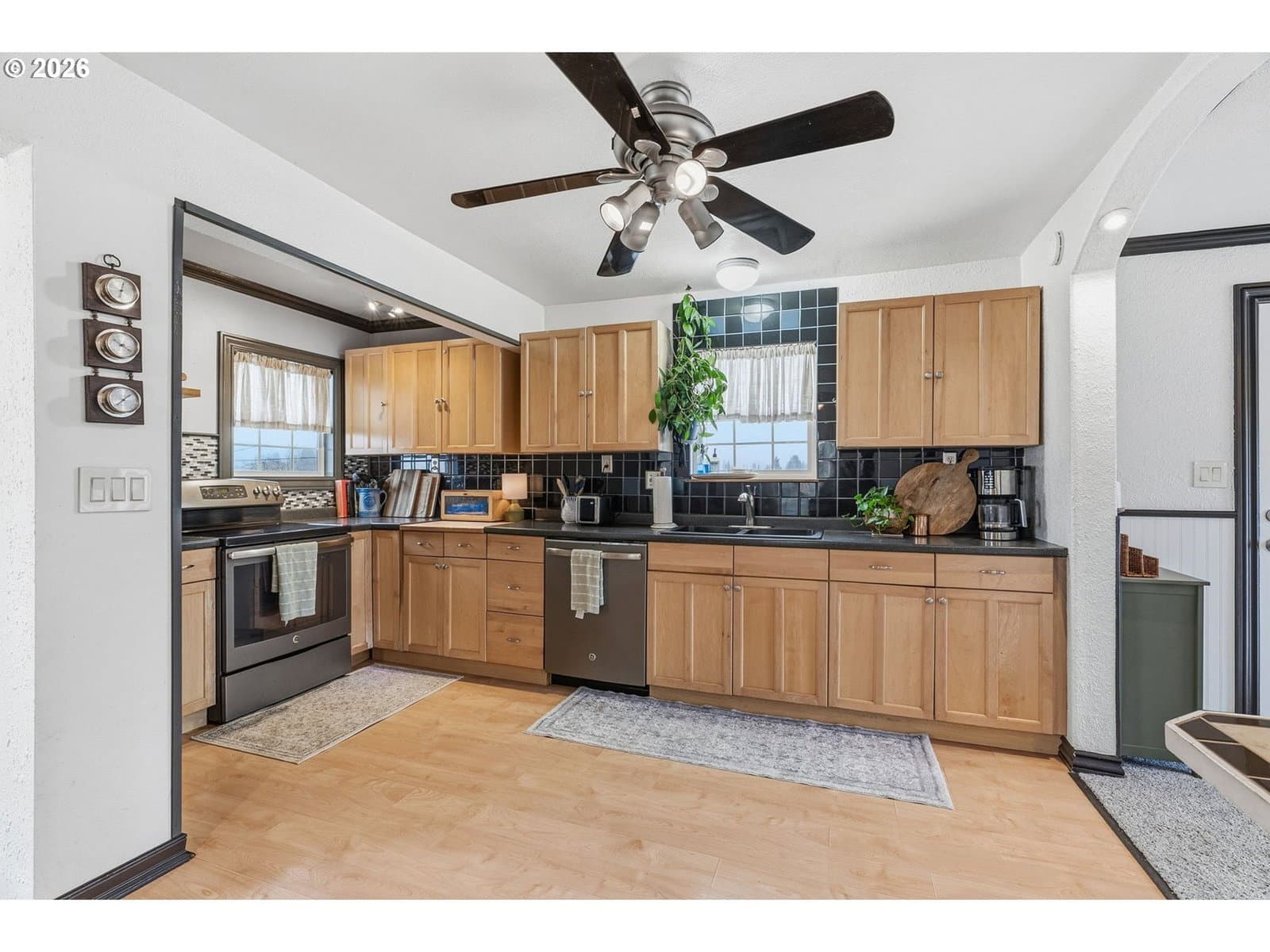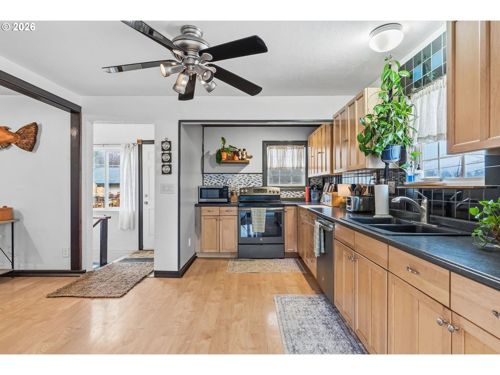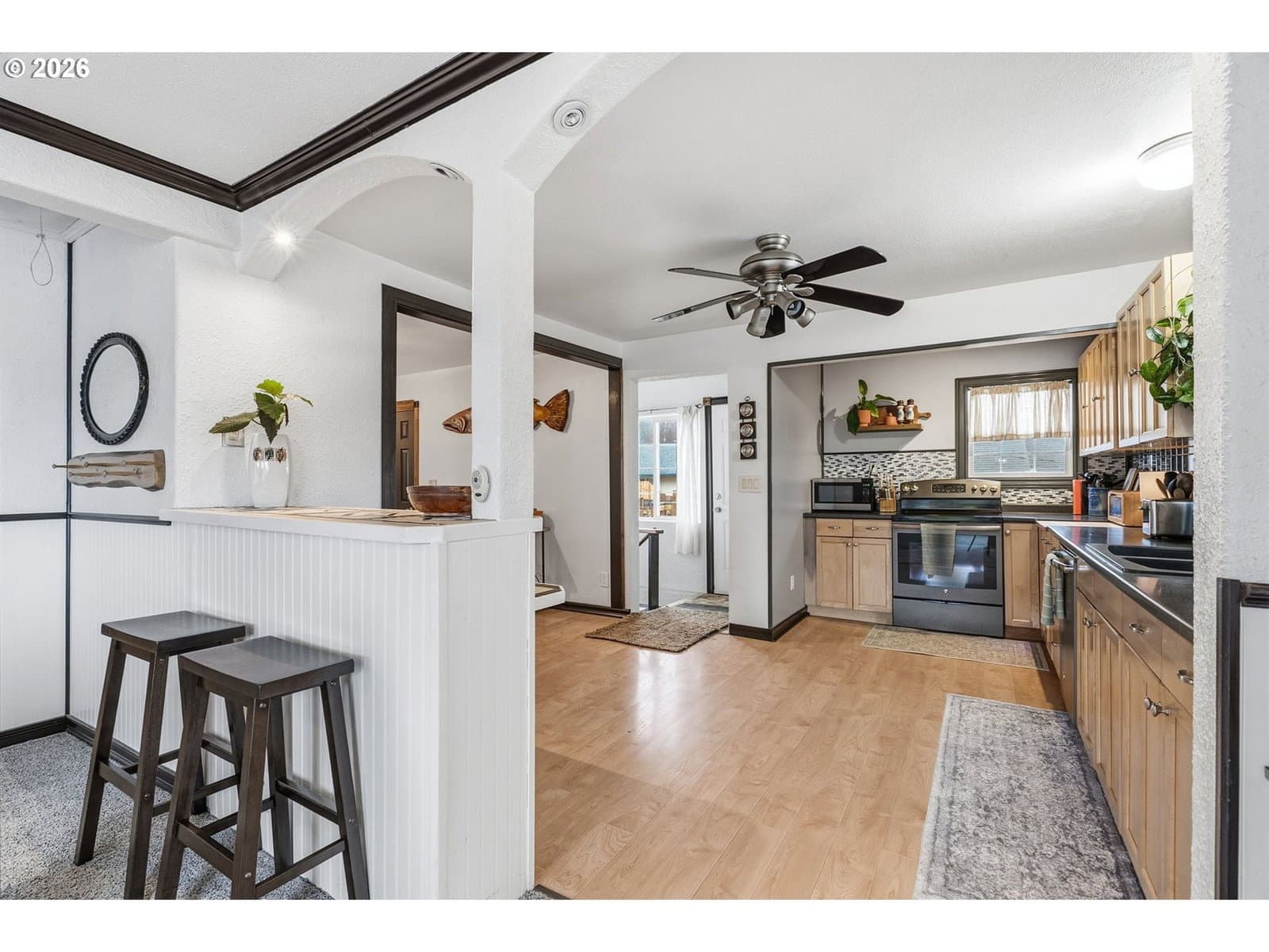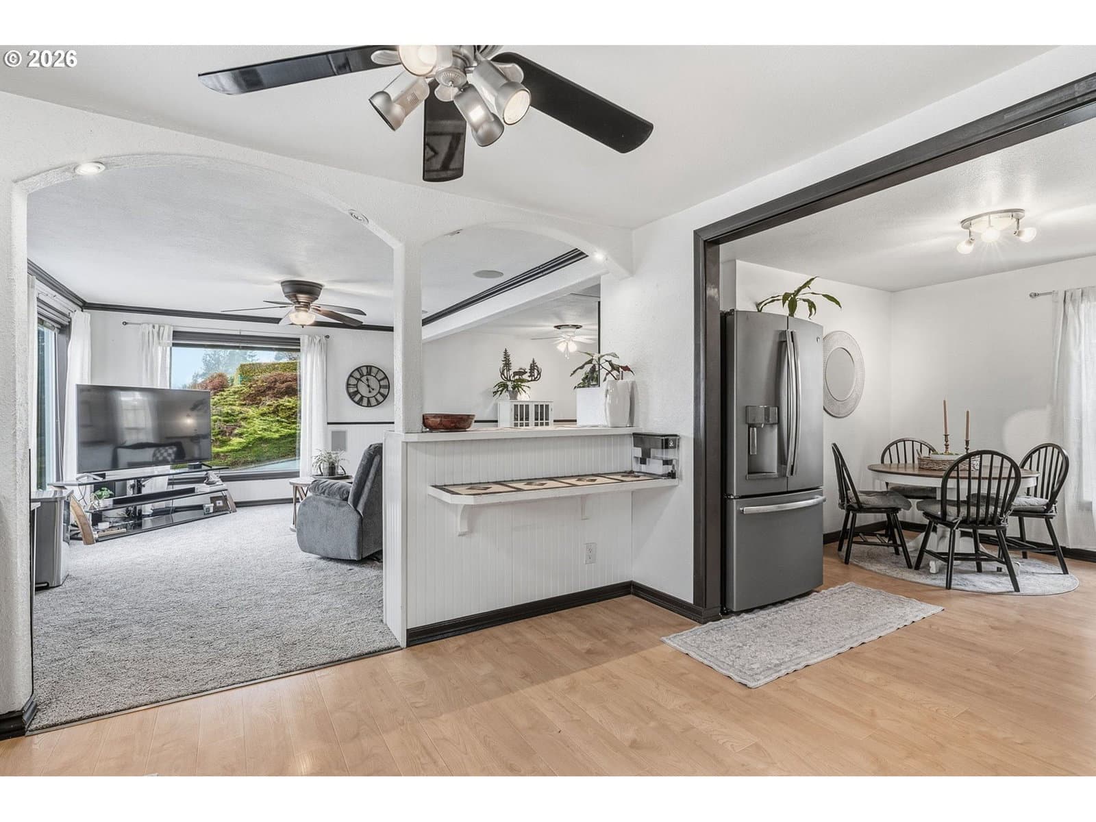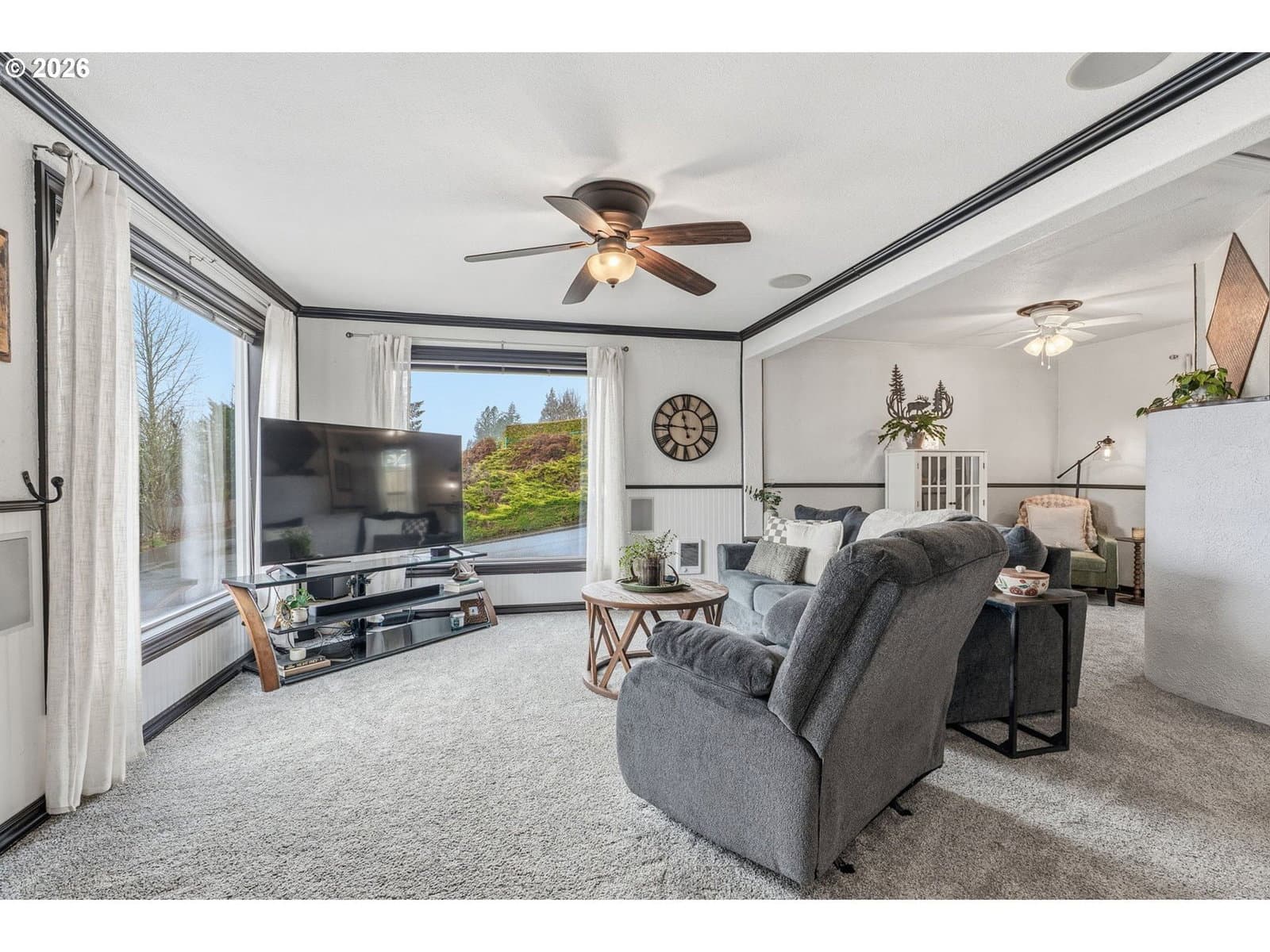 Perched on a corner lot in Clatskanie, 2bed+den, big Views, bay living-room windows framing valley, trees, and territorial/city views, plus unforgettable sunrises and sunsets. Brand-new composition roof + gutters (approx. 2 months old), fresh exterior paint, new porch railings, fresh landscaping + newly graveled driveway.Inside updates include new carpet, refreshed interior paint, and comfortable everyday features like wainscoting, ceiling fans, double-pane + storm windows, and high-speed cable internet. The finished basement with exterior entry adds flexibility for storage, hobbies, or extra living space.Enjoy an oversized detached garage/shop with 220Amp (a rare find in town), fenced yard, covered patio/deck/porch, plus RV/boat parking and storage. All this just blocks from local favorites—community pool, courts, playgrounds, and river/boat launch access.