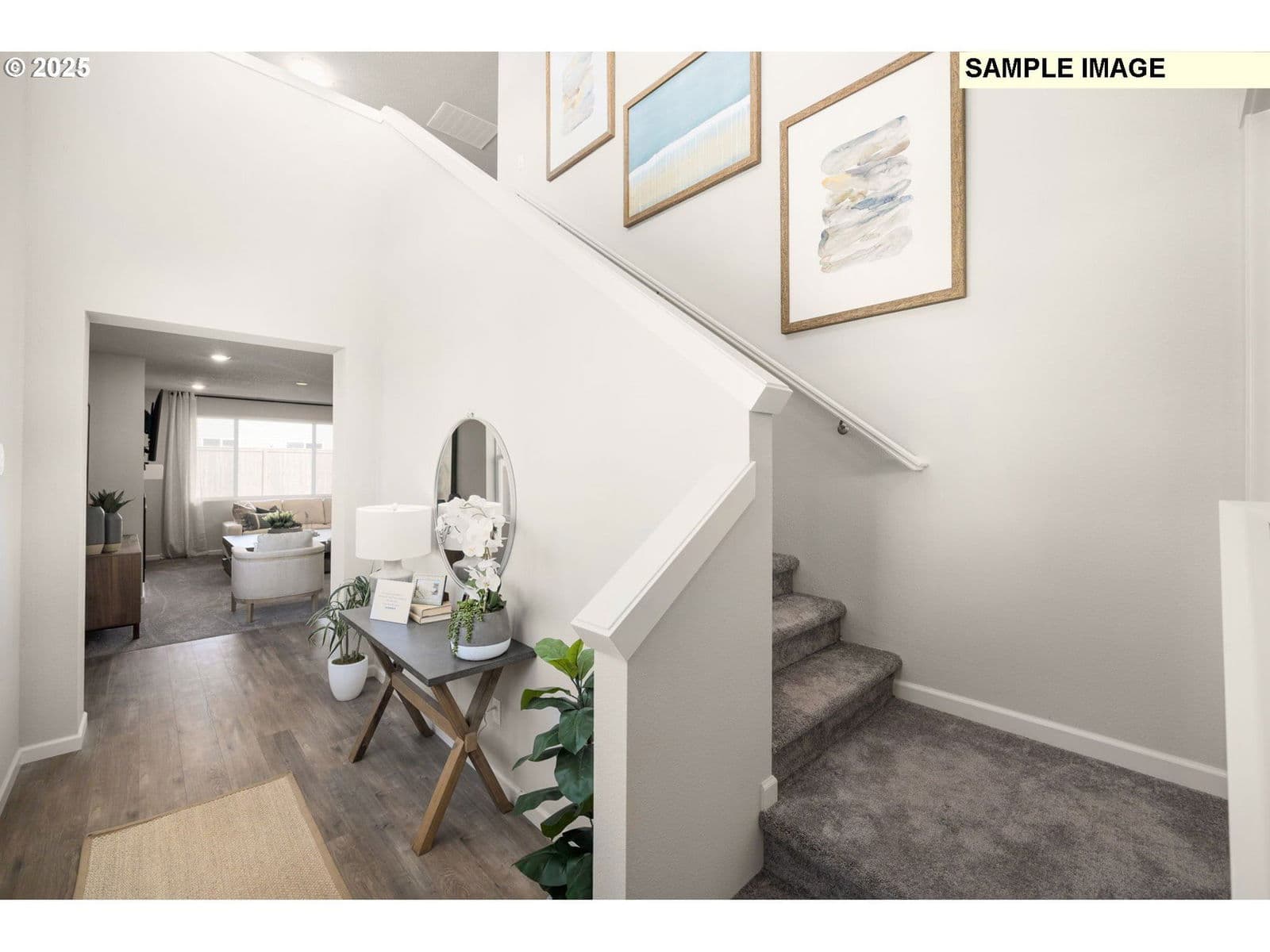This new construction home in Autumn Sunrise is part of a vibrant community with a playground, fire pit, a basketball court, close to I-5, shopping, and dining. The Magnolia plan features an open concept main floor with a great room, kitchen, and dining room that connect to a covered patio. Upstairs, a loft provides flexibility along with four bedrooms, including a primary suite with an en-suite bath and walk-in closet. Interior highlights include quartz countertops, shaker-style cabinets, a fireplace with floating mantle, two-tone paint, and other luxury details. This home also includes landscaping, fencing, and central air conditioning, plus a refrigerator, washer and dryer, and blinds—all at no extra cost! Located on homesite 339, this home is expected to be complete in March 2026. Rendering is artist conception only. Photos are of a similar home, features and finishes will vary.