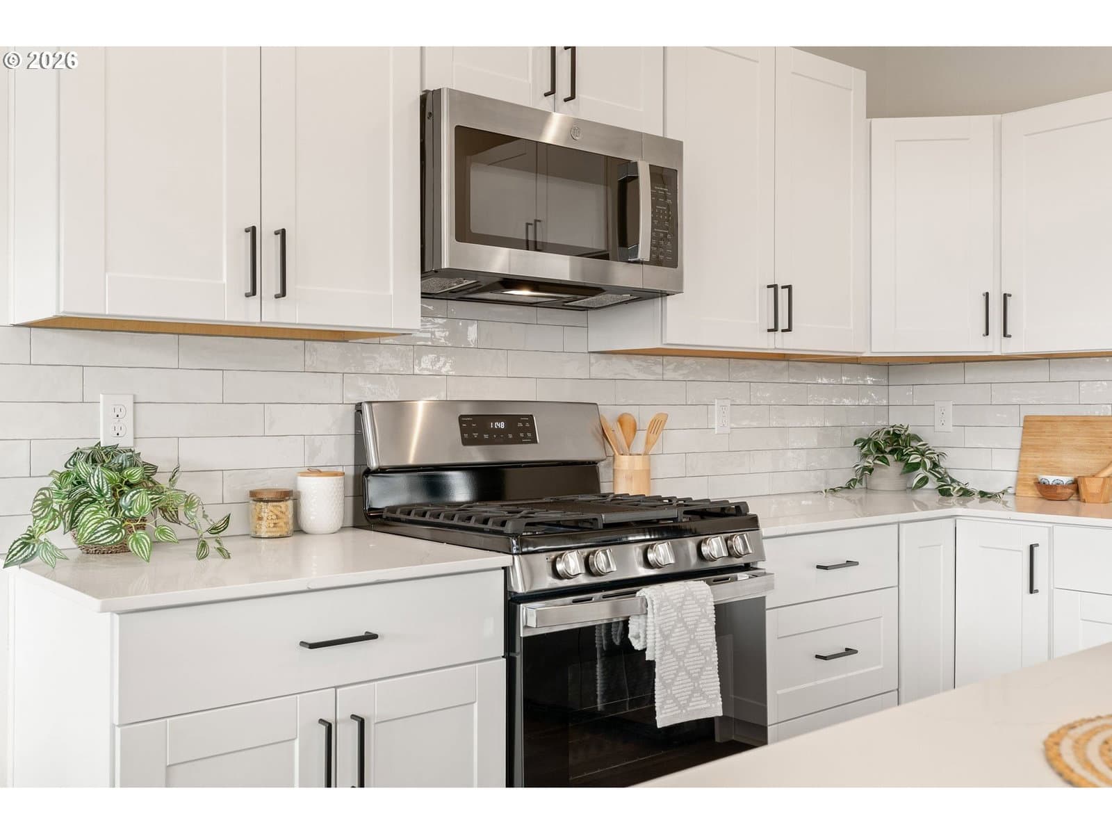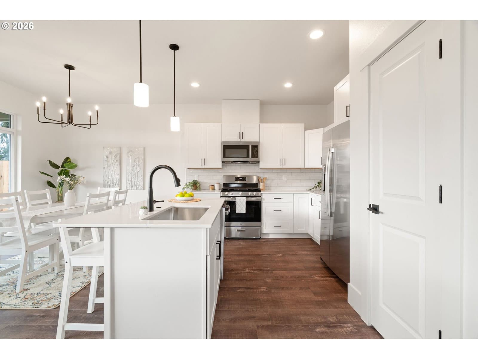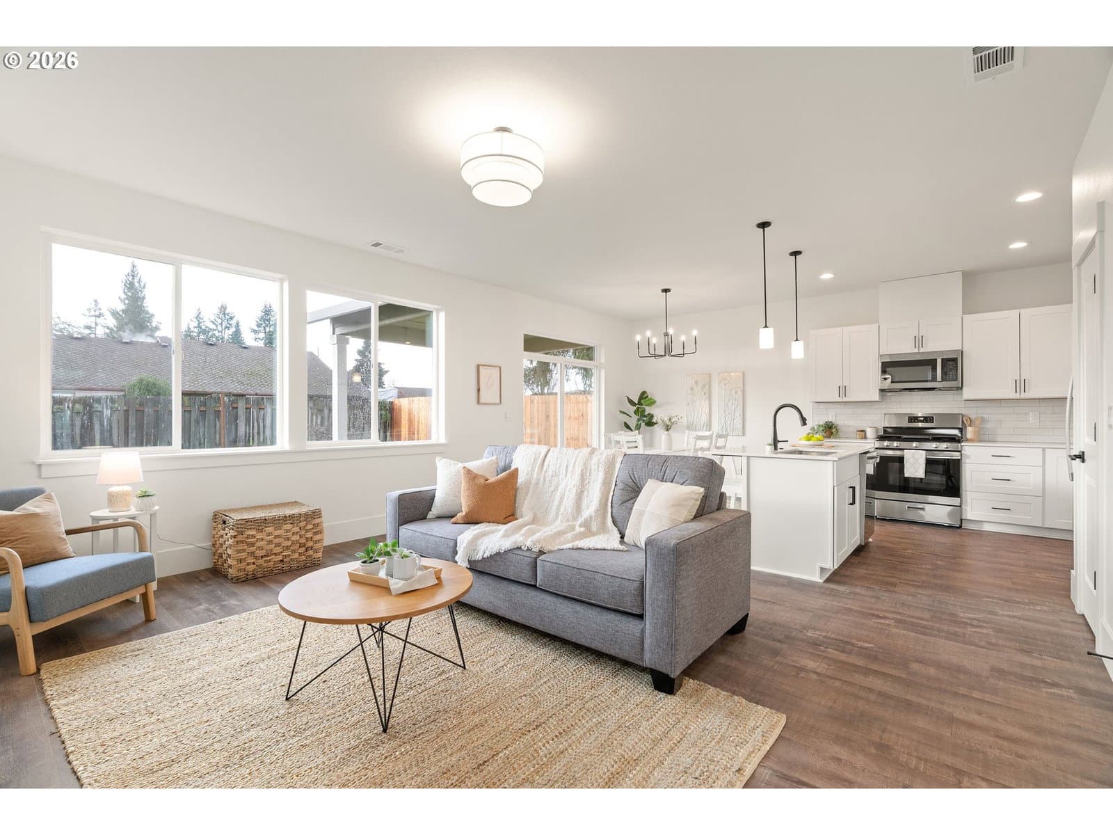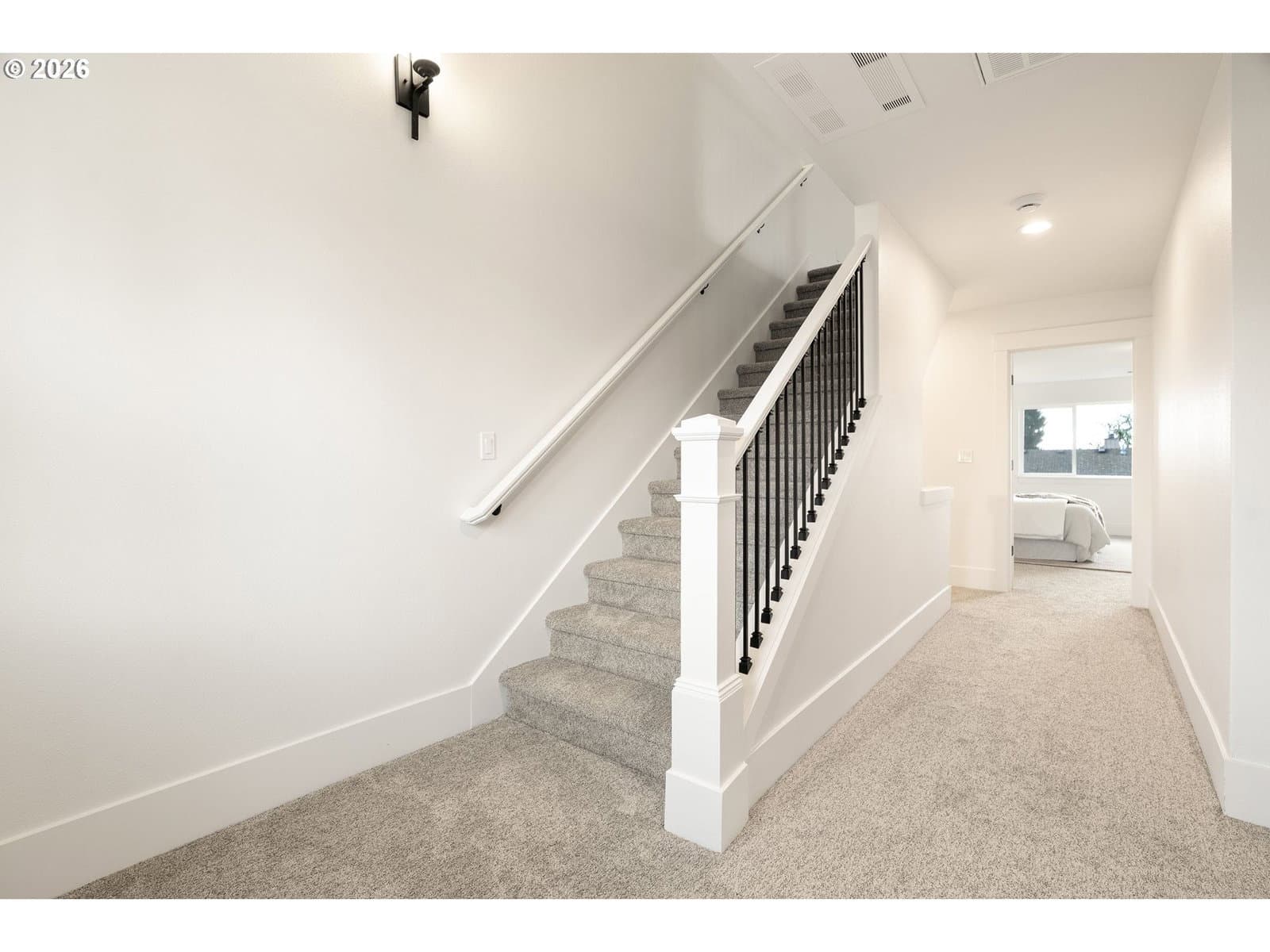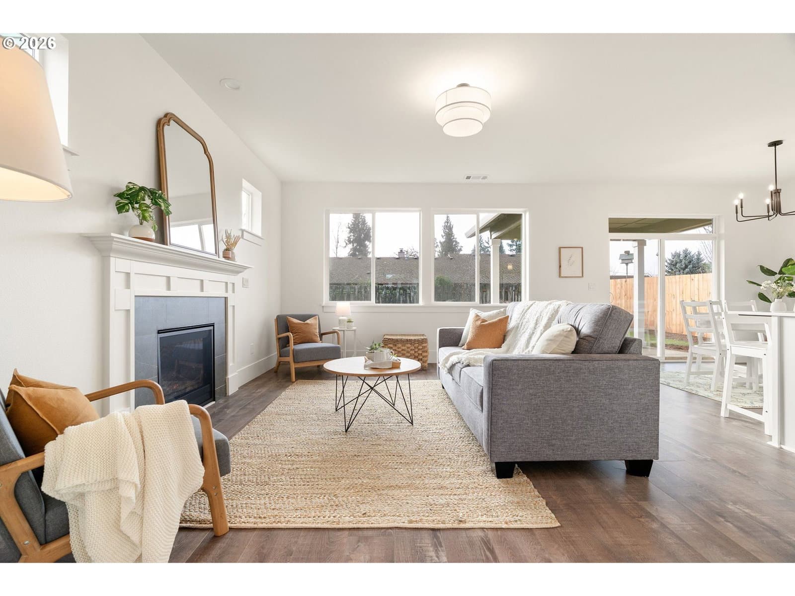 Tucked into an established North Plains neighborhood, this beautifully built home blends modern style with the rare bonus of a larger lot, more elbow room, and added privacy. The open-concept main level features a bright great room with gas fireplace, quartz countertops, tile backsplash, kitchen island, pantry, and great natural light with easy flow to the backyard.All three bedrooms sit on the second floor, including a spacious primary suite with a tiled walk-in shower, tile countertops, and a generous walk-in closet. Bathrooms feature tile floors, and the comfortable carpet carries through the bedrooms and the third-level bonus/loft — perfect for office, media, or play space.Mini-split heating/cooling, 2.5 baths, garage door opener, a two-car garage, and a fully fenced yard add convenience and livability. With larger lots, neighborhood charm, and quick freeway access, this home offers privacy, functionality, and modern style all in one.