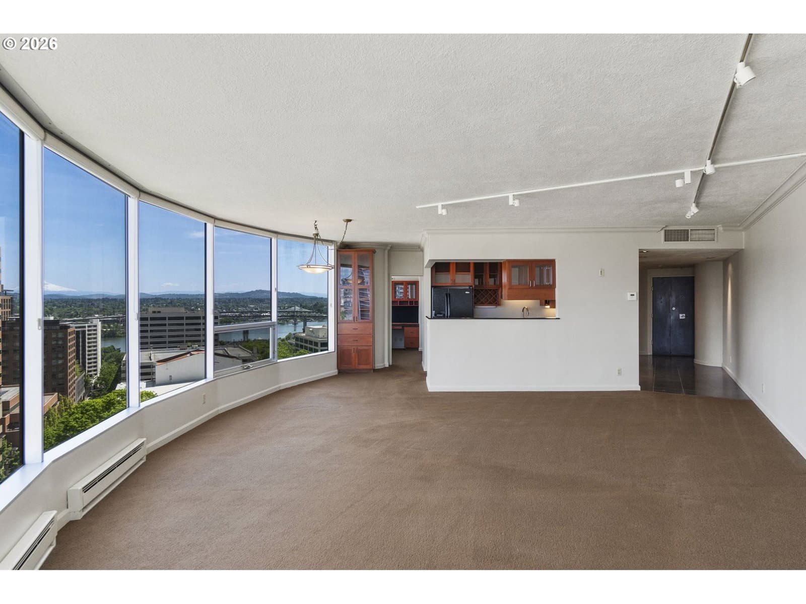 Prepare to fall in love with this truly rare, fully remodeled three bedroom residence perched high above the city in Portland’s iconic 1970s retro modern high rise, Portland Plaza.Unobstructed 270-degree panoramic mountain and river views create a dramatic backdrop from nearly every room, sunrise to sunset, the scenery is nothing short of breathtaking.This turn key home pairs timeless design with modern comfort, featuring tandem two-car parking, abundant storage, and an effortless lock-and-leave lifestyle. Surrounded by Portland’s most beloved parks and lush landscaping, you’ll enjoy a tranquil setting while remaining perfectly positioned in the heart of the city.Portland Plaza occupies an entire city block and offers one of the most comprehensive full service living experiences in the region. Amenities include 24-hour concierge service, pool, fire pits, BBQ areas, herb gardens, fitness center, library, and a newly reimagined lobby and common spaces designed by renowned Portland architect Fritz Junker.The professionally managed association is exceptionally strong, with ample reserves and over $10M in recent modernization, offering long-term confidence and peace of mind. With low taxes, an unbeatable location, and world-class views, this residence delivers the very best of elevated urban living.Rare. Refined. Ready to enjoy.