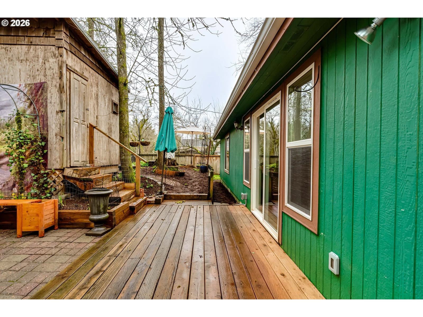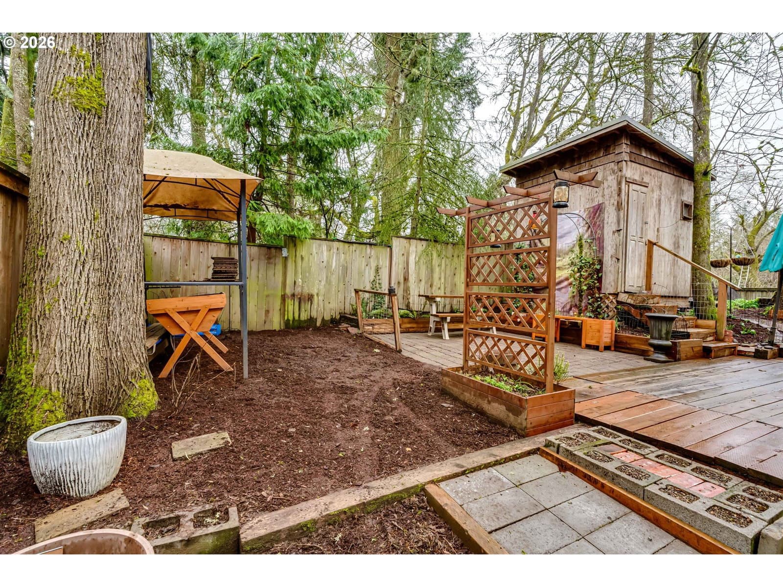 From the moment you step inside, this home wraps you in comfort. The heart of the house is an inviting, open-concept kitchen and living area, centered around a cozy wood-burning stove—perfect for staying warm on crisp winter nights. Natural light pours in through skylights and sun tunnels, creating a bright, airy atmosphere throughout the day.Step outside to your private backyard, with mature landscaping and trees. Gardeners will love the established front beds featuring a variety of roses, herbs, and an apple tree. Newer roof. Two outdoor storage areas, complete with electricity and ready for a workshop or hobby space, this home is as practical as it is charming. Come feel the vibe for yourself! The garage has been converted, which allows an extra 550 sq ft, and is partially finished. Seller uses garage area for an office, studio, and separate laundry area.