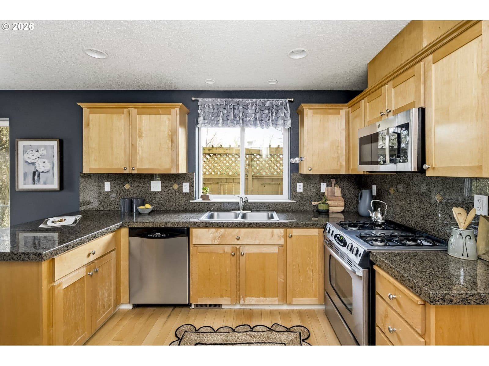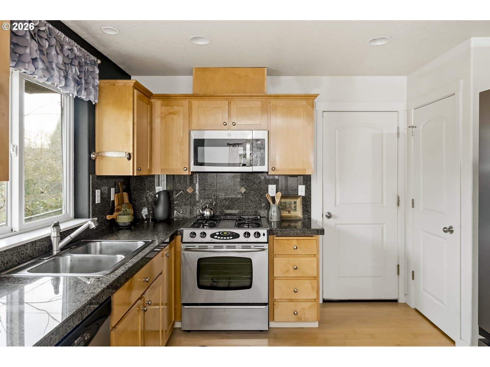 This well-maintained 3-bedroom, 2-1/2-bath home is tucked into a friendly cul-de-sac where neighbors know one another and community gatherings are part of life. Well insulated with a HES score of 10, newer solar panels, and excellent storage throughout, the home feels both spacious and cozy. Brand-new carpet, a gas fireplace, and magical natural light that shifts beautifully with the seasons add to its warmth and comfort. The kitchen is designed for ease and enjoyment, featuring generous counter space, ample storage, a brand-new refrigerator, and a natural flow into the living areas—ideal for both daily living and entertaining. Upstairs laundry adds everyday convenience, while the bedrooms are comfortable and spacious. The primary suite serves as a true retreat, complete with excellent storage and a gracious walk-in closet. Outside, a low-maintenance yard showcases thoughtfully planned perennials that bloom in sequence, bringing fresh color throughout the growing season. Lilies, dahlias, daffodils, roses, and more create a vibrant garden, complemented by a Canadice grapevine that produces red, seedless grapes perfect for eating or juicing. A large, private patio provides the perfect setting for morning coffee or time spent with friends. Conveniently located near schools, parks, downtown St. Johns, and everyday errands, this home is as practical as it is welcoming. [Home Energy Score = 10. HES Report at https://rpt.greenbuildingregistry.com/hes/OR10187484]