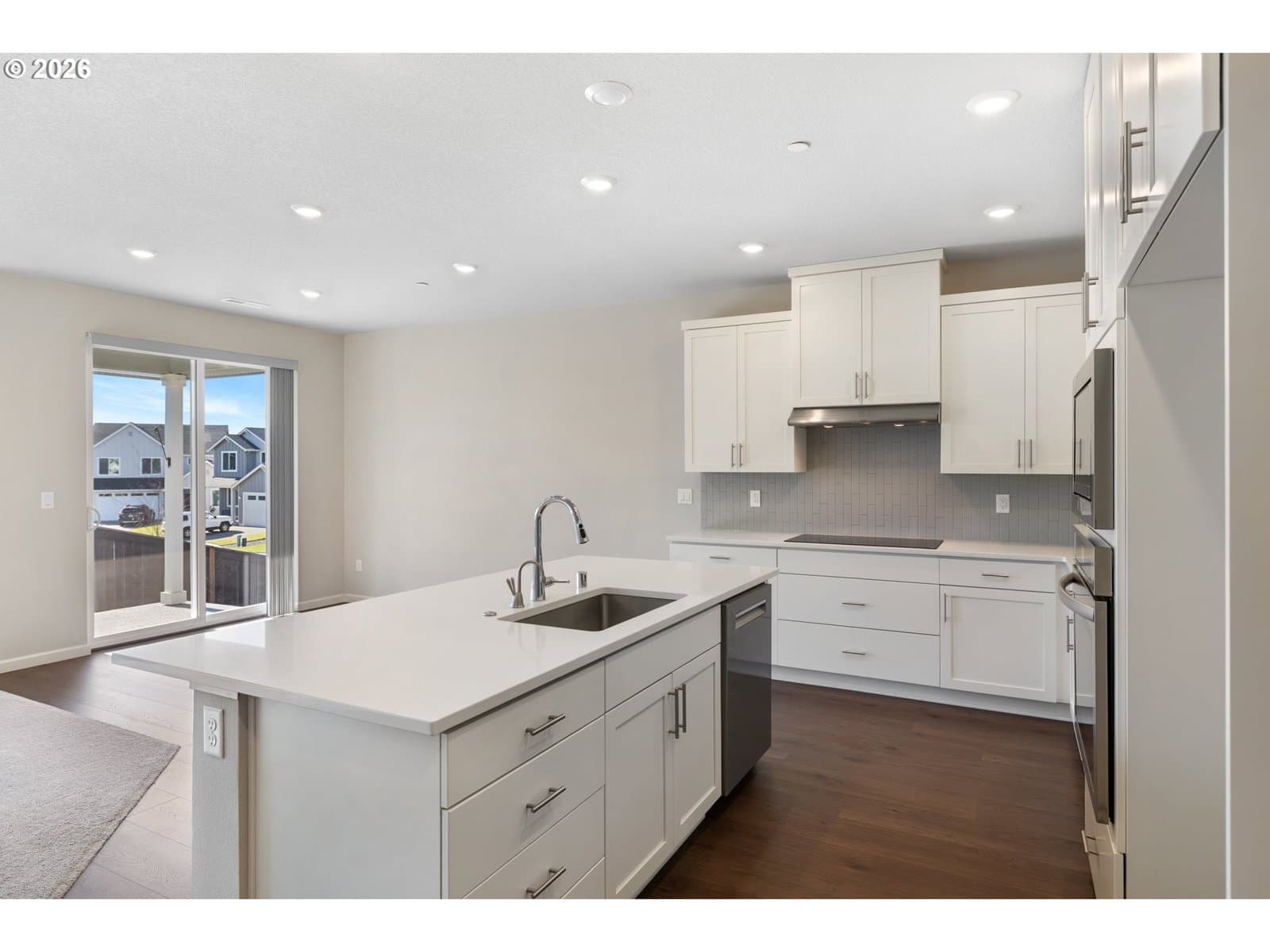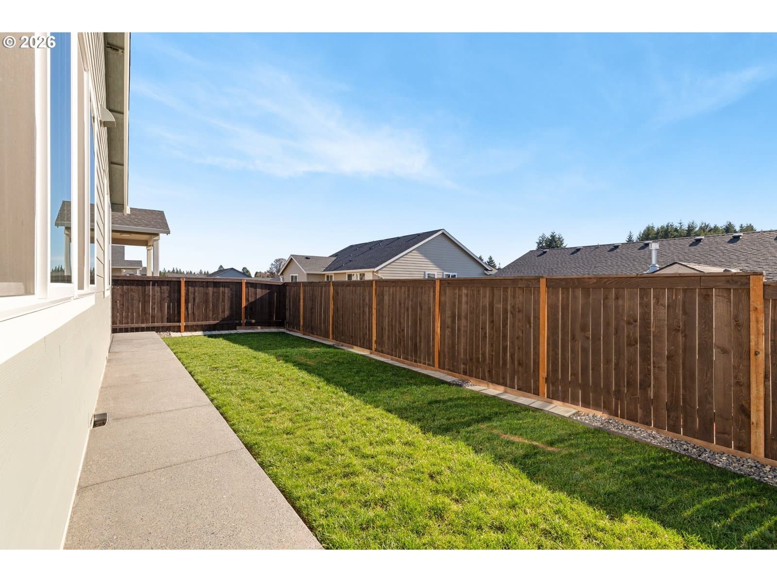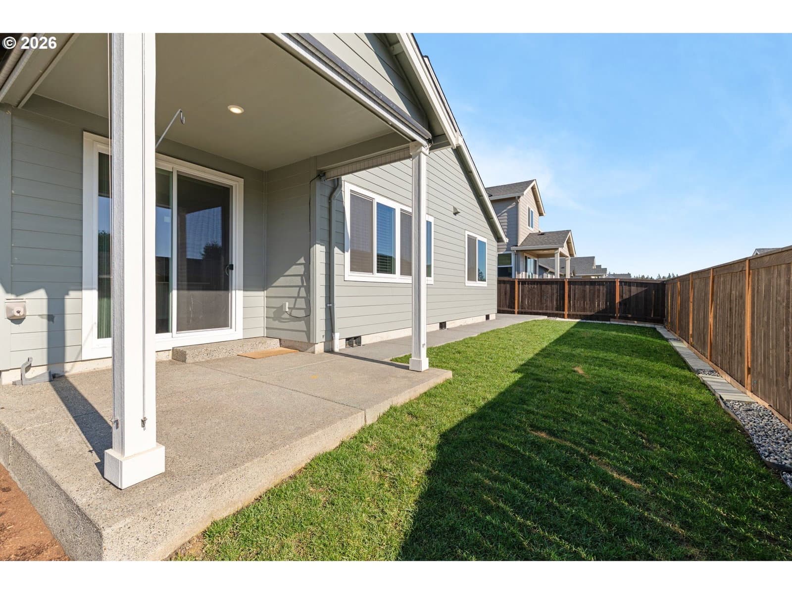 Almost new and built in 2024, this beautifully designed single-level home offers 4 bedrooms and a 3-car garage in a desirable Ridgefield neighborhood. The spacious great room features a cozy gas fireplace and flows seamlessly into the kitchen and dining area, creating an ideal space for everyday living and entertaining. The kitchen is thoughtfully appointed with quartz countertops, a large island, induction cooktop, stainless steel appliances, and a pantry. The private primary suite boasts a spa-inspired bathroom complete with a soaking tub, walk-in shower, double sinks, and an expansive walk-in closet. Step outside to a fully fenced backyard featuring a covered patio with extended concrete—perfect for relaxing or hosting gatherings. Nestled in a quiet community with walking trails, a park, and basketball court, this home is just minutes from shopping, dining, and convenient freeway access. Modern comfort, style, and location all in one exceptional property.