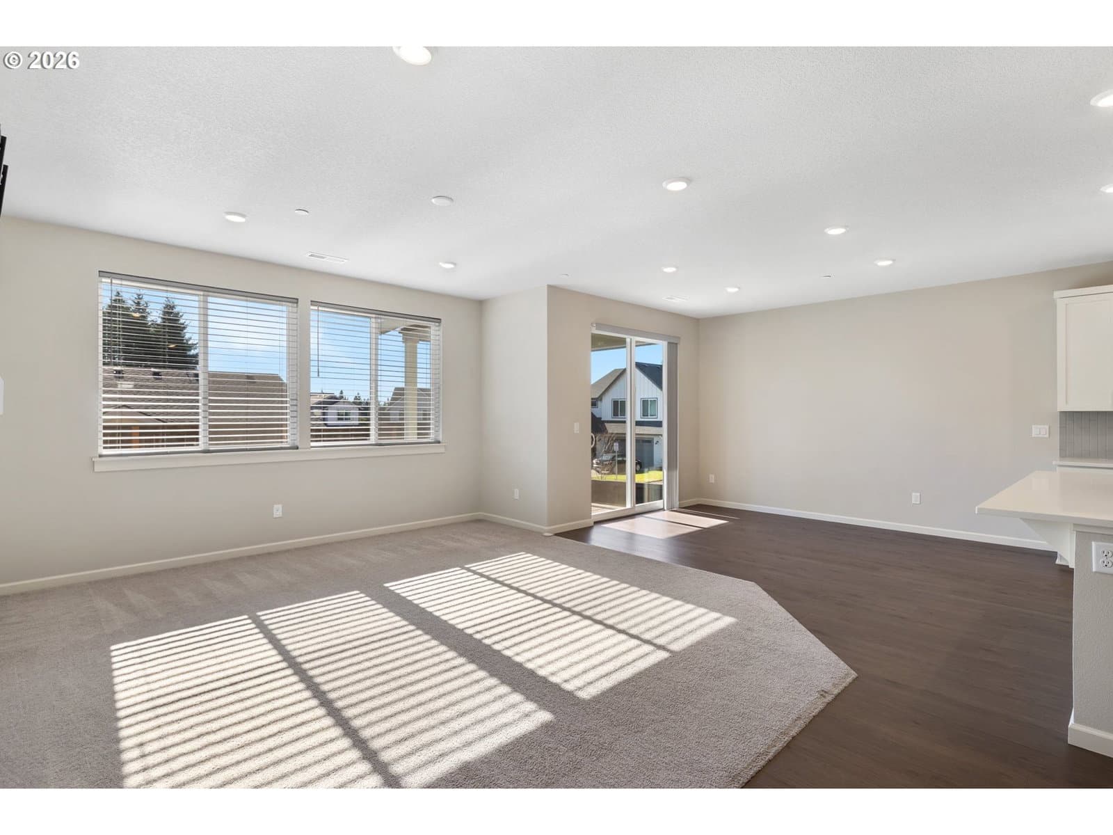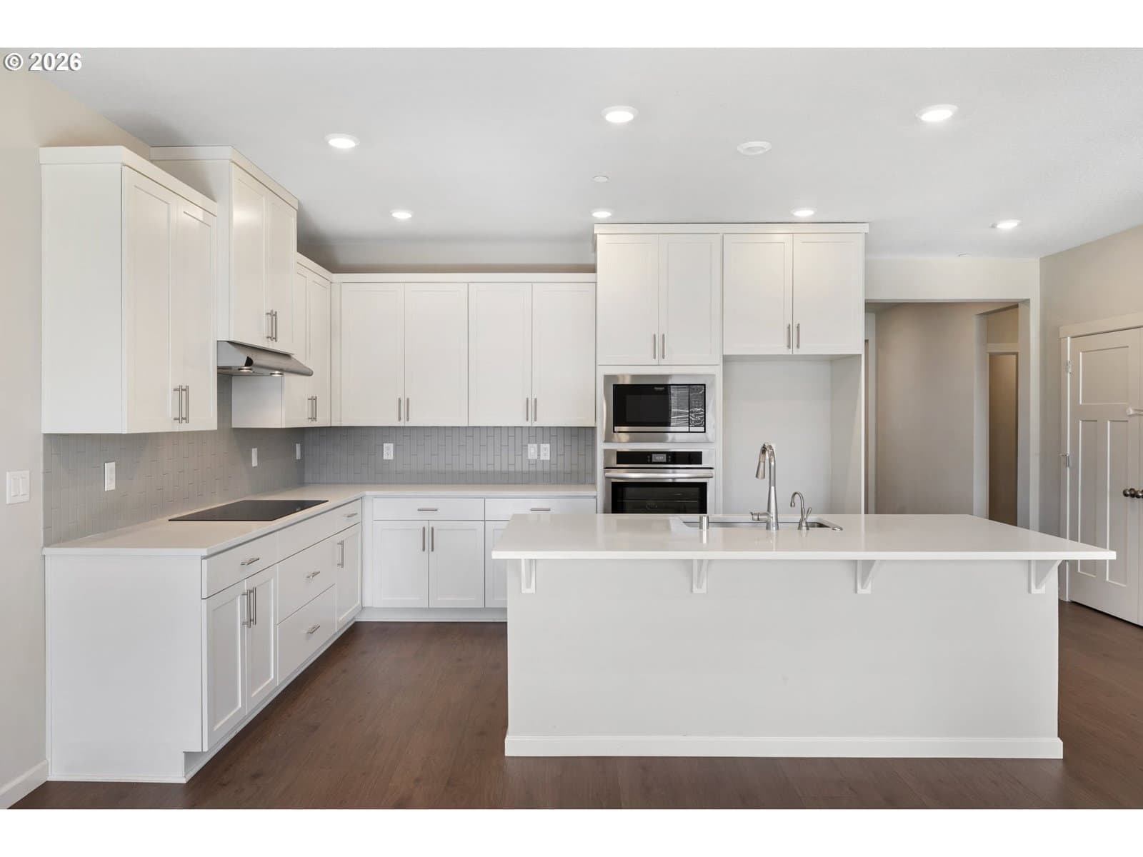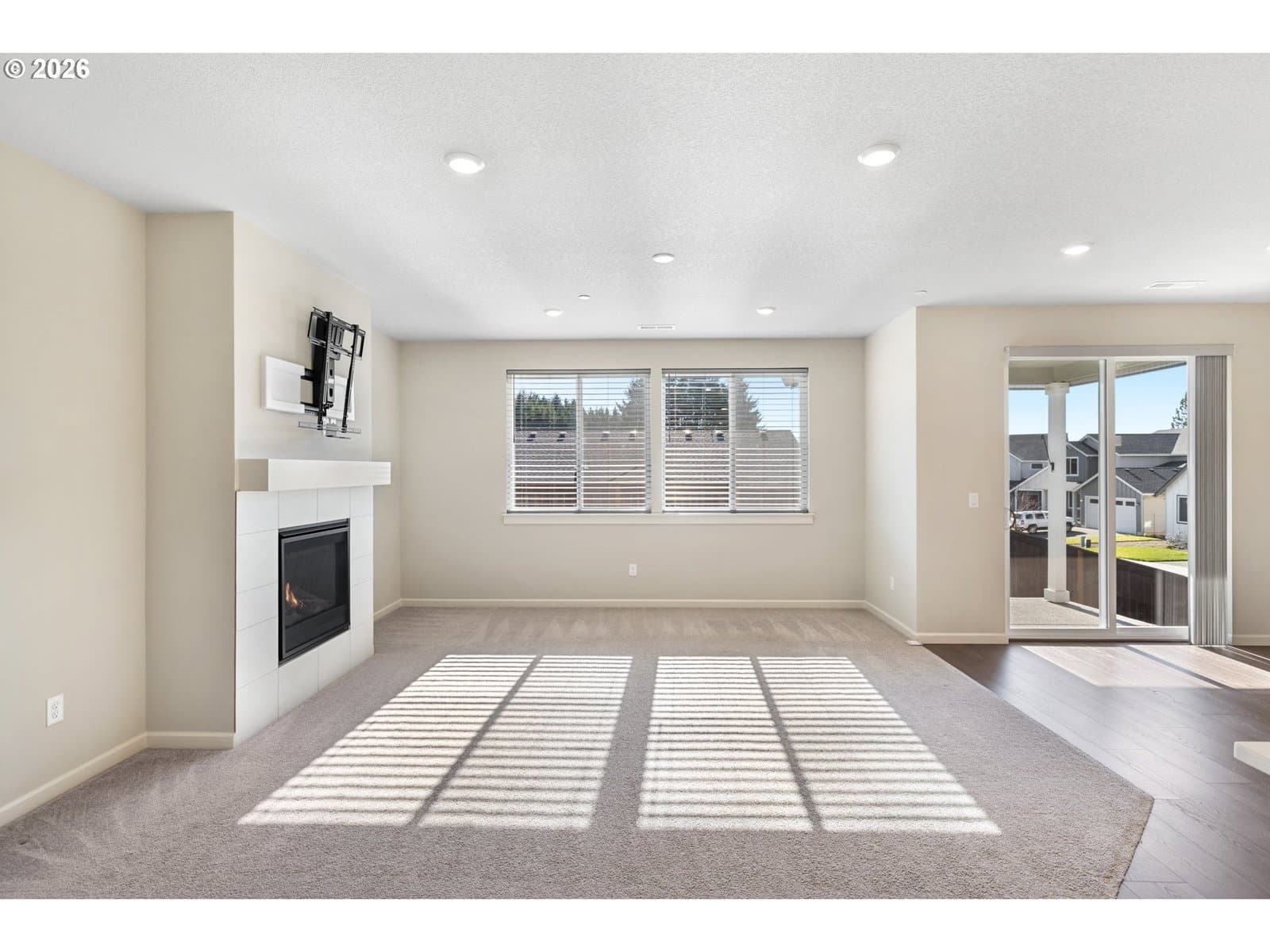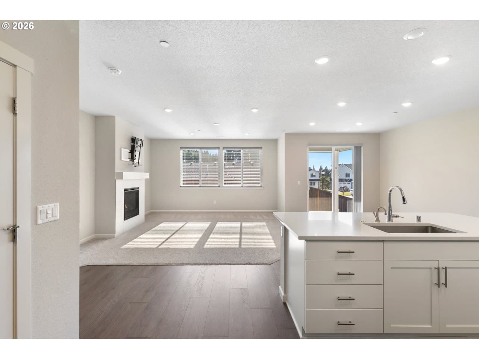 Almost new and built in 2024, this beautifully designed single-level home offers 4 bedrooms and a 3-car garage in a desirable Ridgefield neighborhood. The spacious great room features a cozy gas fireplace and flows seamlessly into the kitchen and dining area, creating an ideal space for everyday living and entertaining. The kitchen is thoughtfully appointed with quartz countertops, a large island, induction cooktop, stainless steel appliances, and a pantry. The private primary suite boasts a spa-inspired bathroom complete with a soaking tub, walk-in shower, double sinks, and an expansive walk-in closet. Step outside to a fully fenced backyard featuring a covered patio with extended concrete—perfect for relaxing or hosting gatherings. Nestled in a quiet community with walking trails, a park, and basketball court, this home is just minutes from shopping, dining, and convenient freeway access. Modern comfort, style, and location all in one exceptional property.