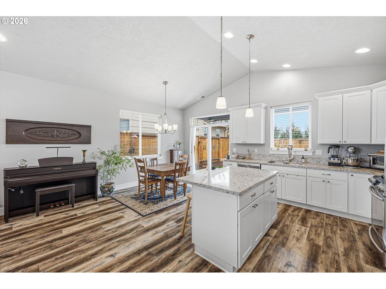 A perfect single story plan! Just the right size with luxury throughout! Gorgeous, well thought out kitchen complete with upscale counters, stainless appliances with an upgraded gas stove, wall pantry & LVP flooring. Vaulted greatroom provides wonderful light and is accented with charming gas fireplace! Lovely primary suite with double sinks & a tray ceiling. No steps and 3' doorways, perfect to age in place. Step out to the large covered patio and enjoy the extra large lot that provides ample room with raised beds for all your gardening joy. Tucked into a corner and backing up to farmland!