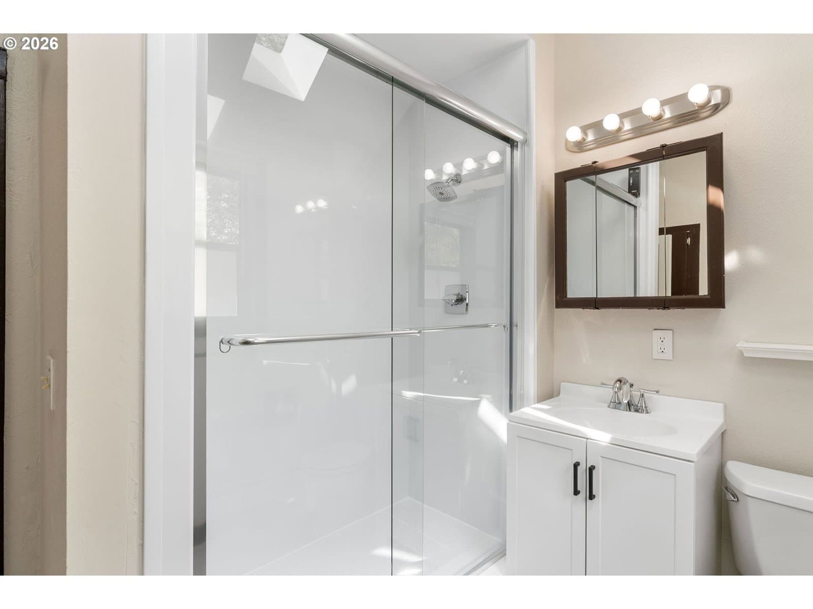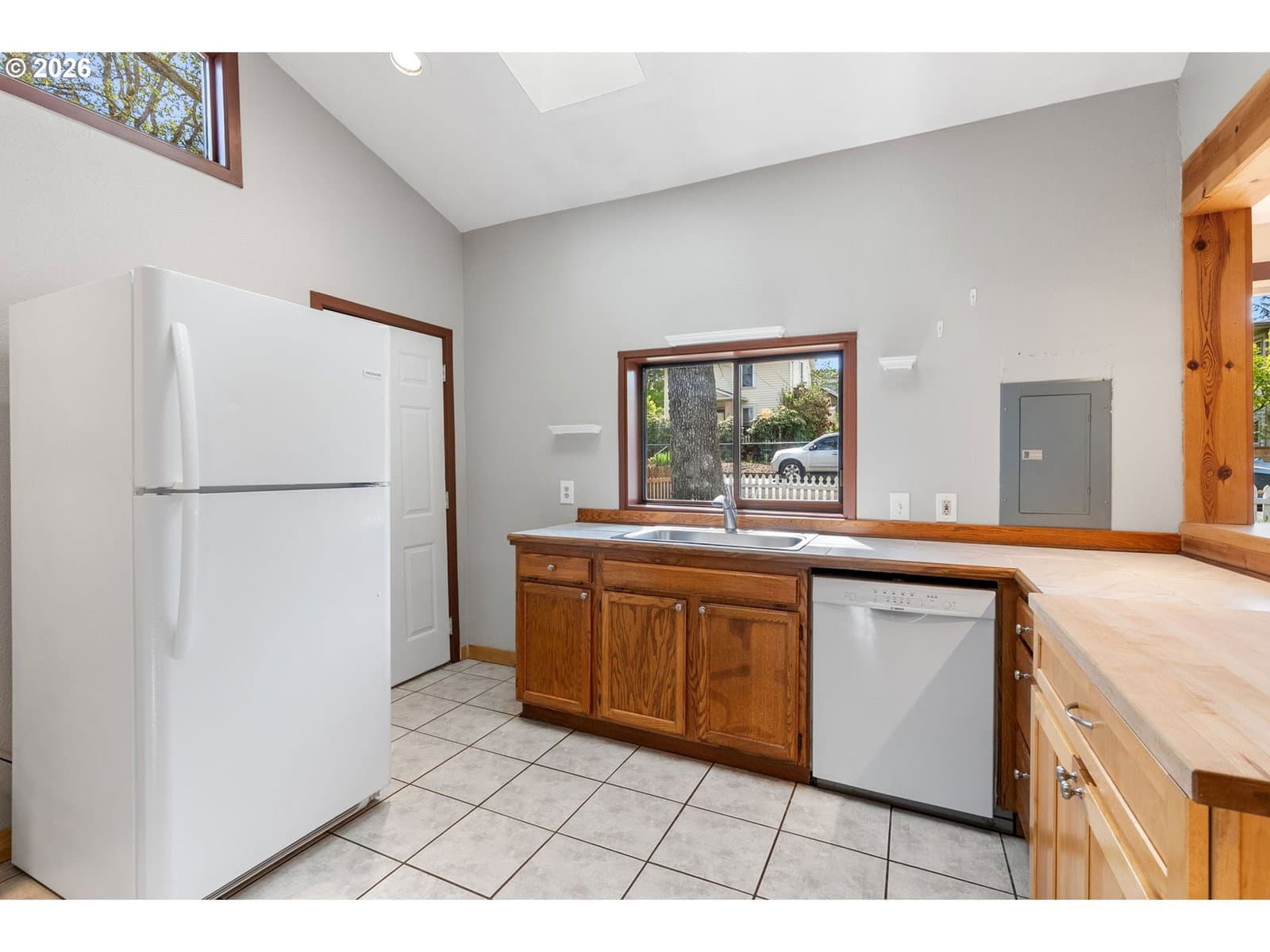 Picture-perfect 1912 home with classic charm and a white picket fence! This inviting property features a spacious great room with laminate flooring and a well-equipped kitchen with all appliances included. The main level offers convenient living with a bedroom, full bathroom, and laundry. Upstairs, you’ll find two additional bedrooms and a full bath with a new walk-in fiberglass shower enclosure.Step outside to enjoy the expansive rooftop deck—accessible from both the yard and upper level—perfect for entertaining or relaxing while taking in filtered views of the Columbia River and Mt. Adams. Additional highlights include central forced air heating and a prime location just a short walk to downtown Hood River’s shops, dining, and amenities. The oversized attached 2-car garage provides ample parking and extra storage space. A rare blend of character, comfort, and location!